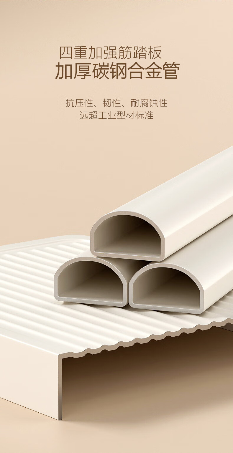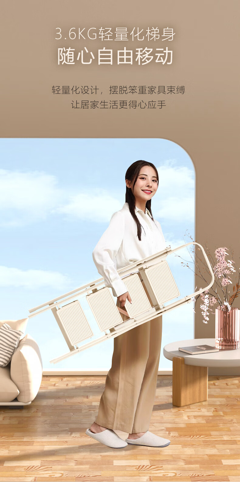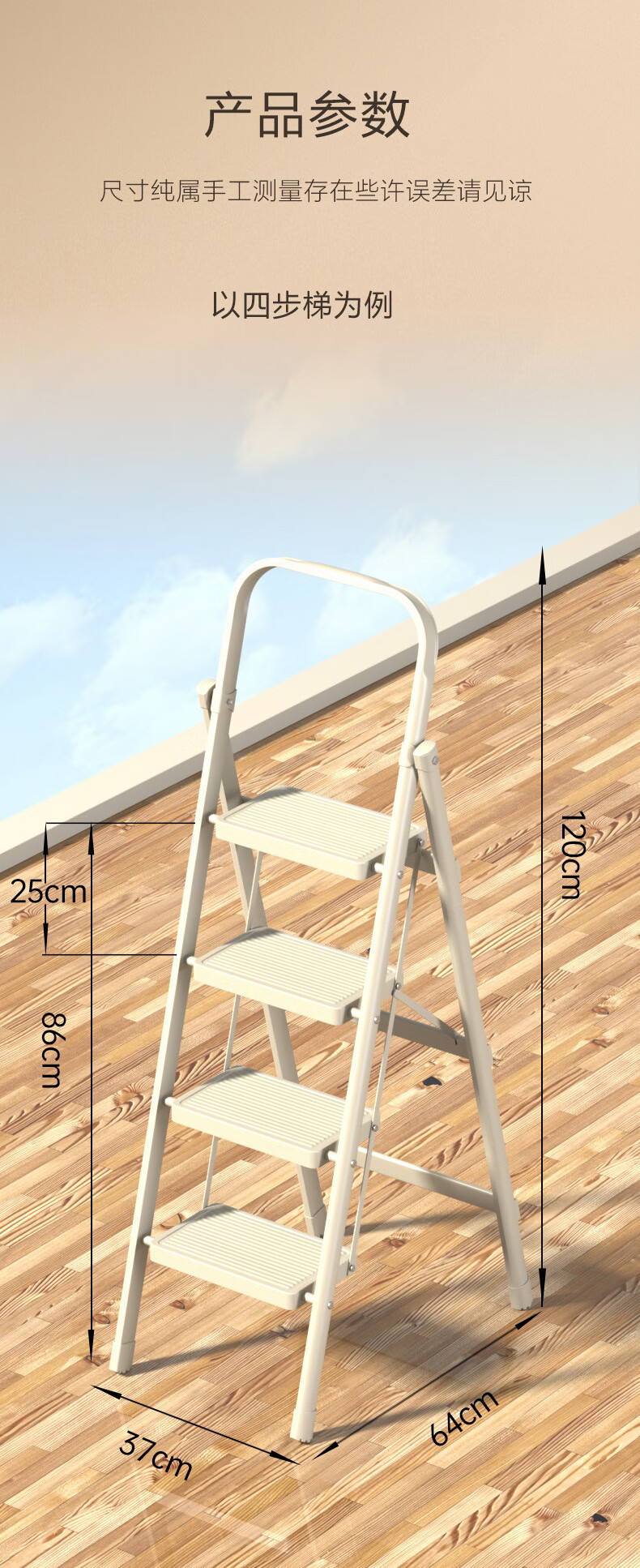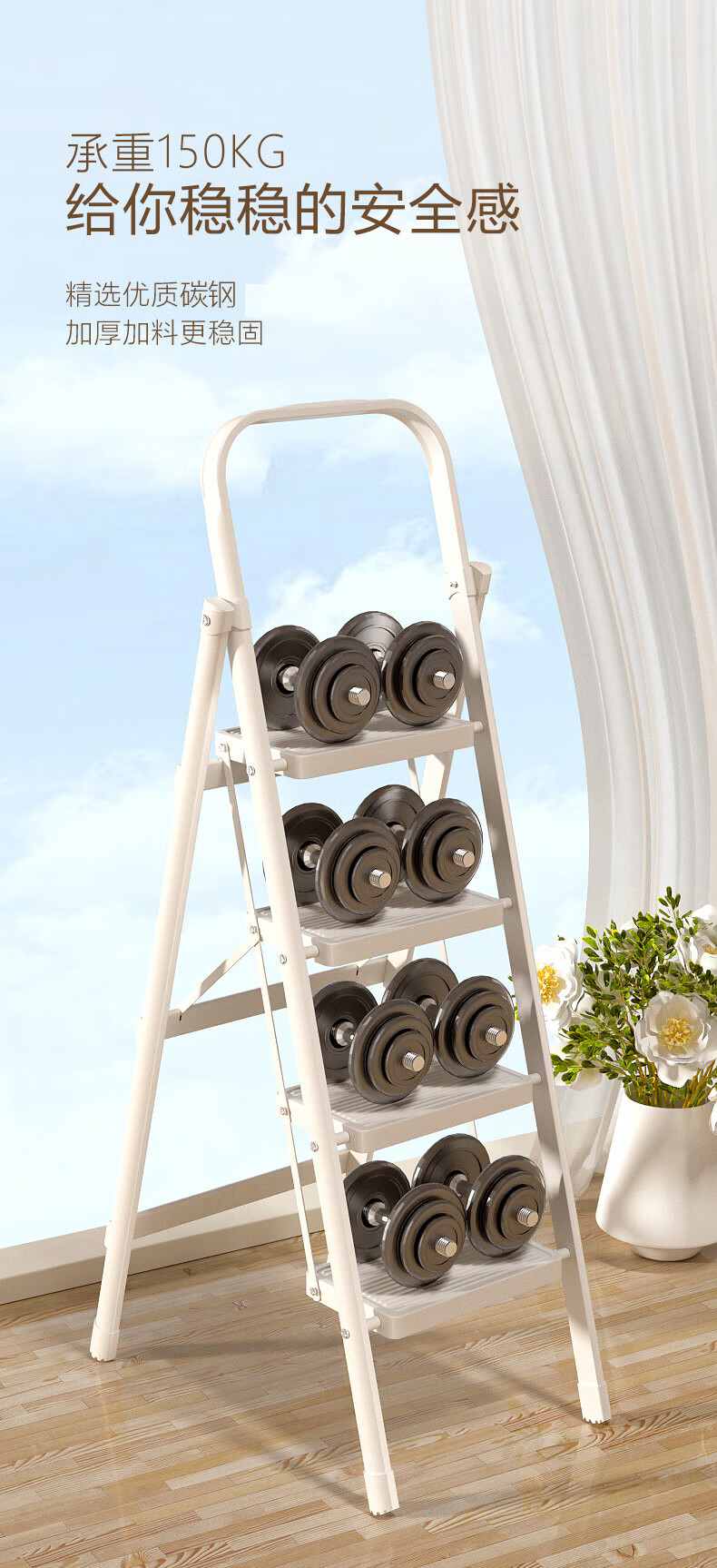 WCZ德国梯子家用折叠伸缩多功能便携梯人字梯加厚室内小型轻便乔 奶油白3步 加厚升级 单侧梯