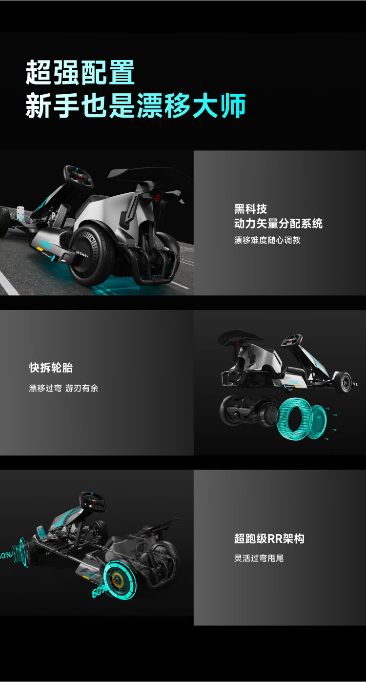 九号(Ninebot)电动卡丁车成人四轮电动车儿童6-12岁玩具车成年男孩F1越野漂移赛车Pro2代