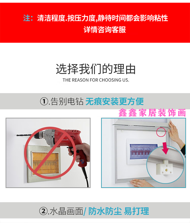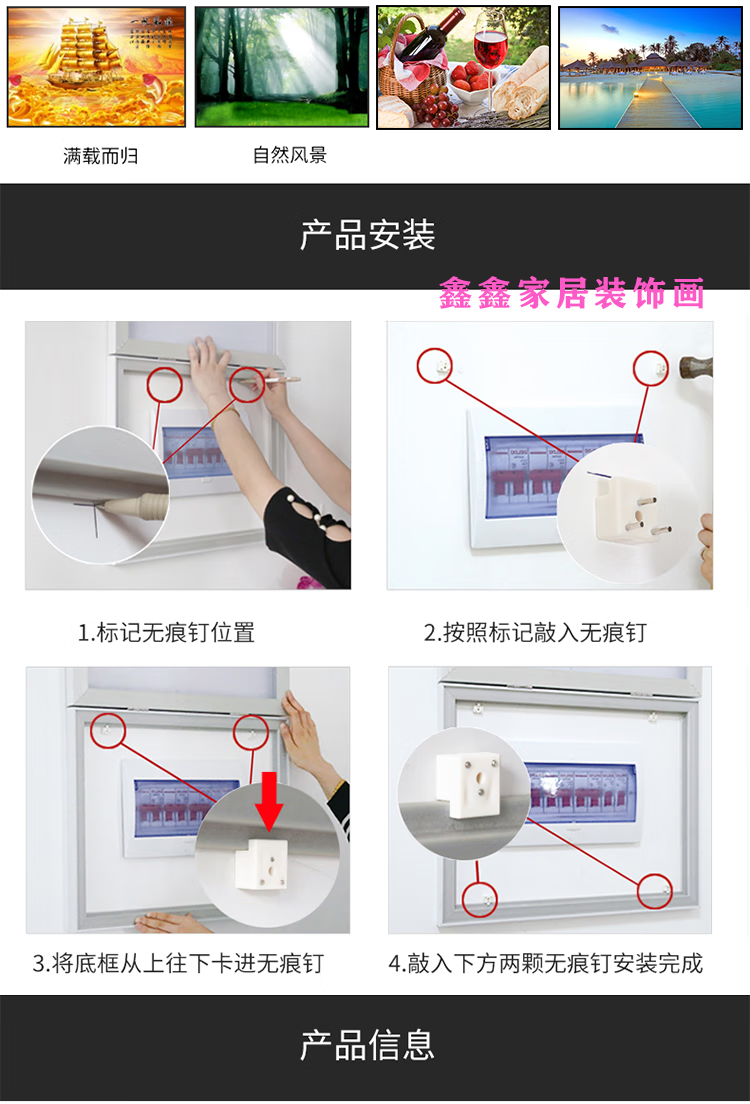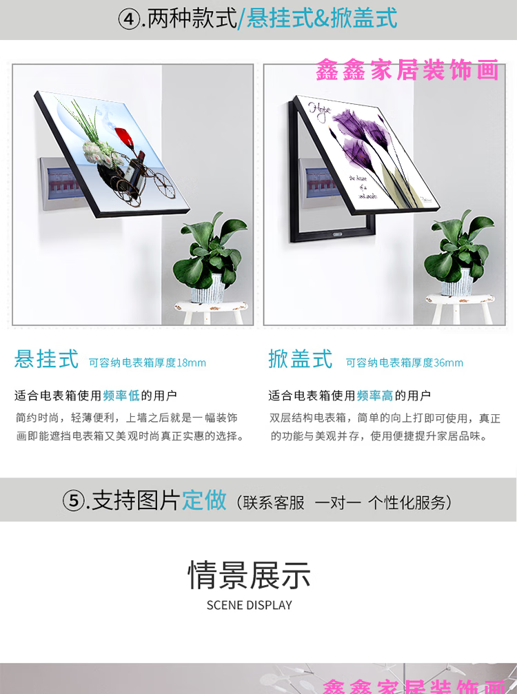 OYKTN电表箱装饰画免打孔艺术简约客厅豪华挂画遮挡总开关配电箱电闸盒 家和万事兴 C款 40X30 可容纳32X22-掀盖式