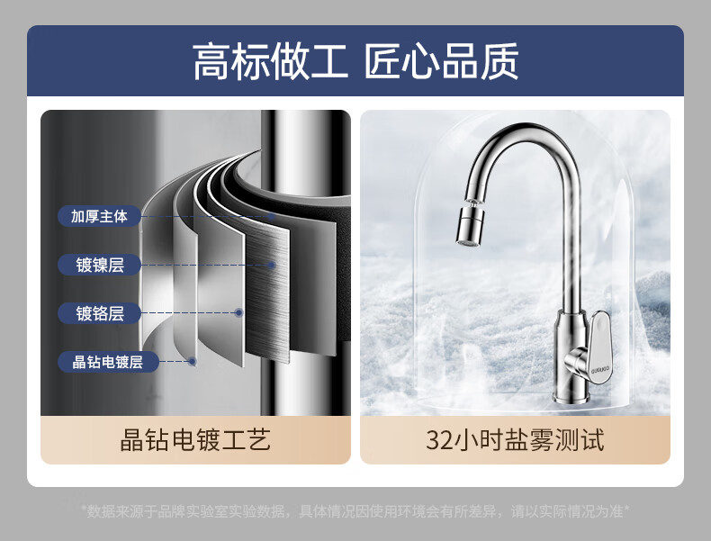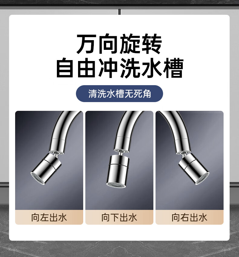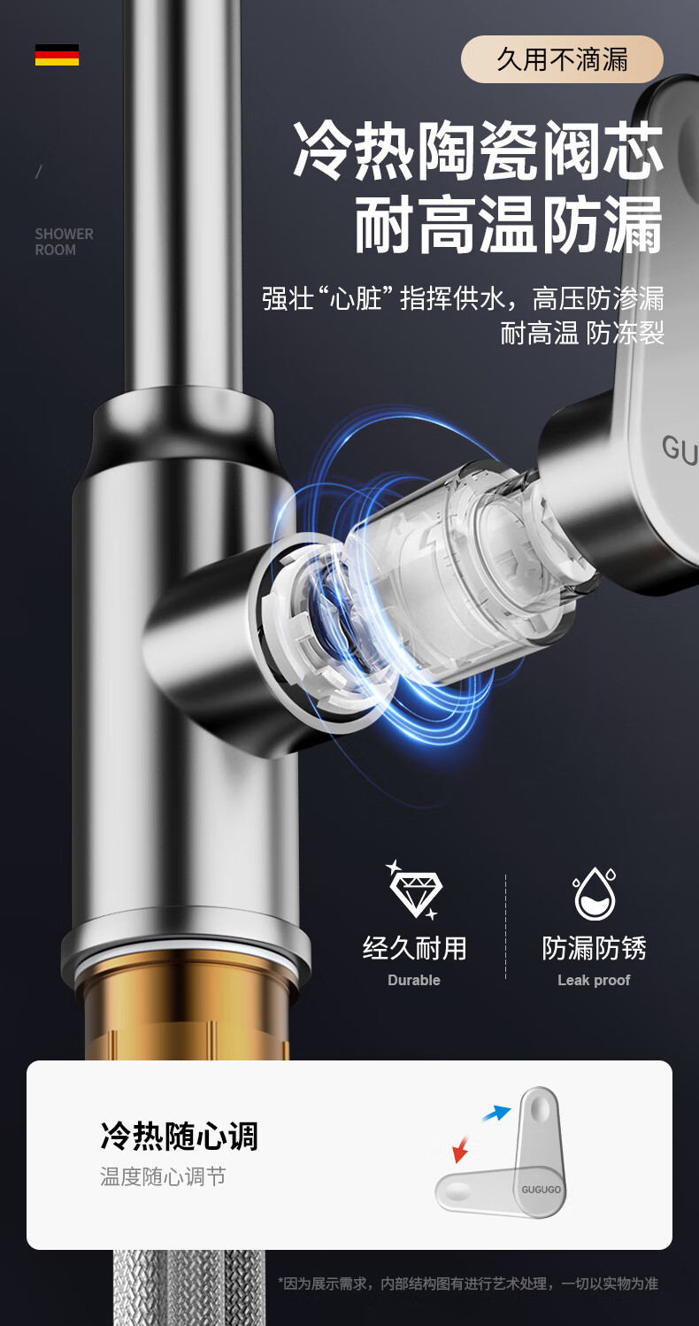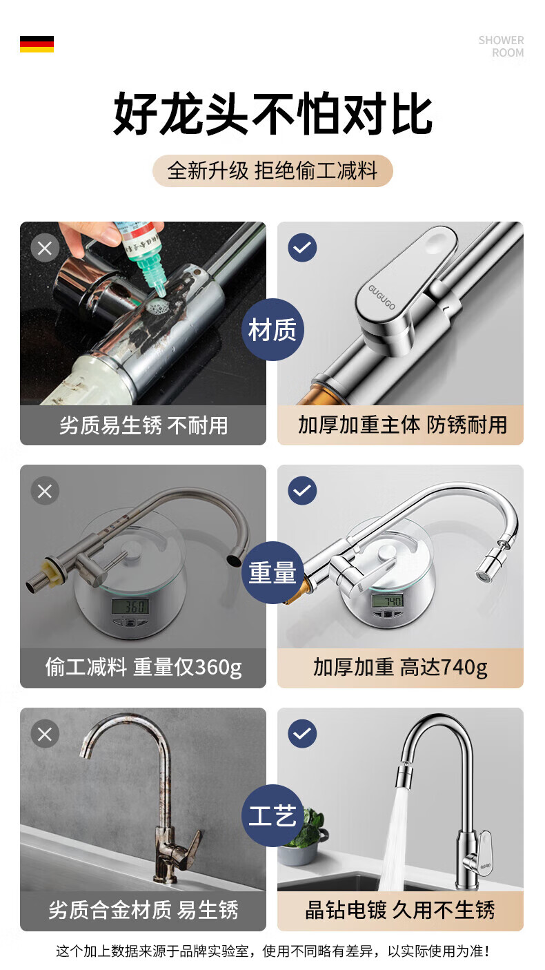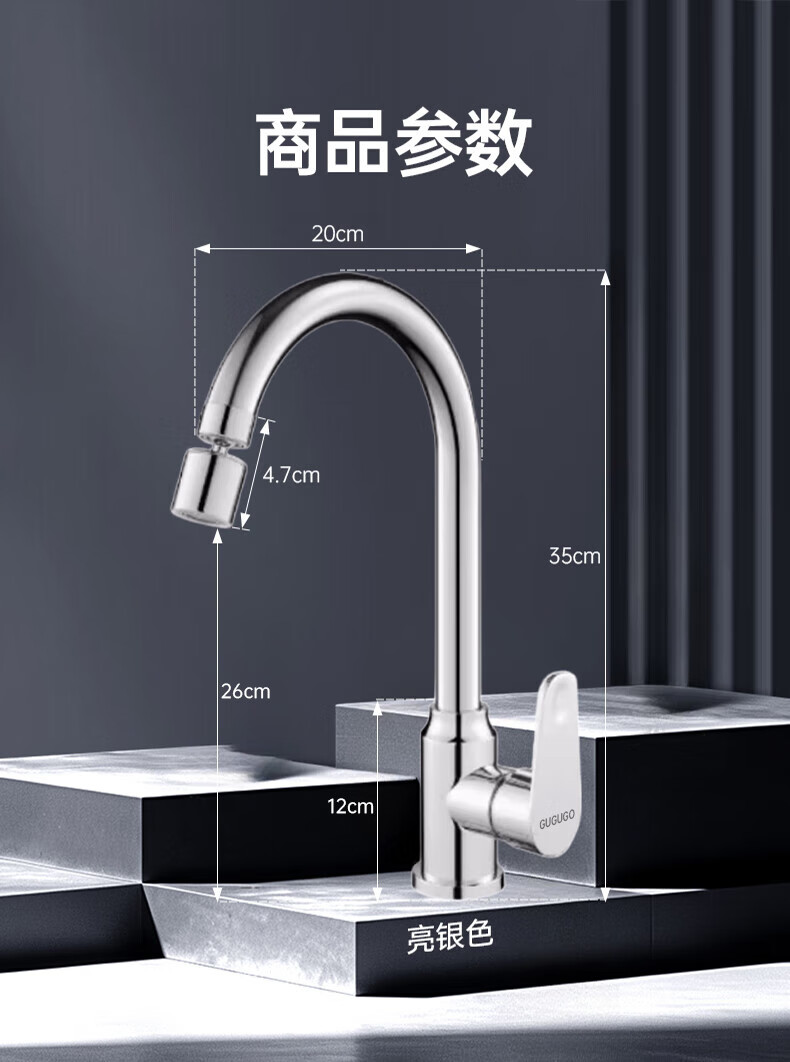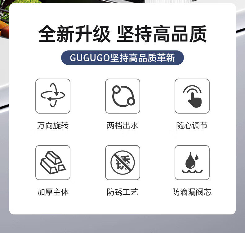 GuGuGo【德国】厨房水龙头洗菜盆冷热水二合一万向旋转水槽高抛水龙头 【电镀】两档万向水龙头 两档防溅丨送80CM不锈钢进水管*2