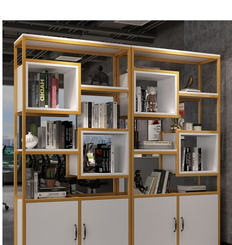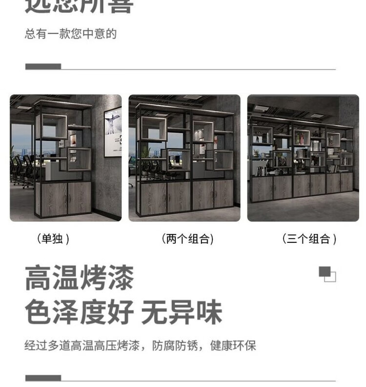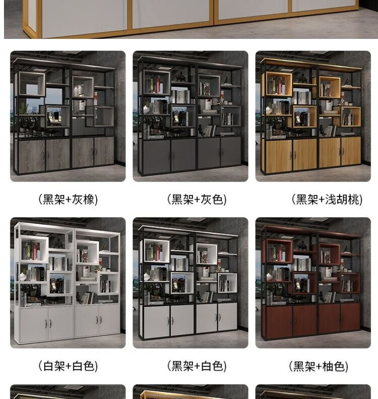 弘星隆客厅屏风隔断书柜组合简约落地铁艺置物架办公室书架玄关储物柜 黑架+金橡木色板 80长30宽200高