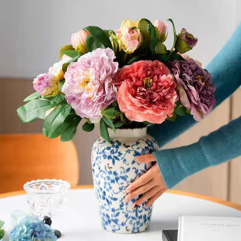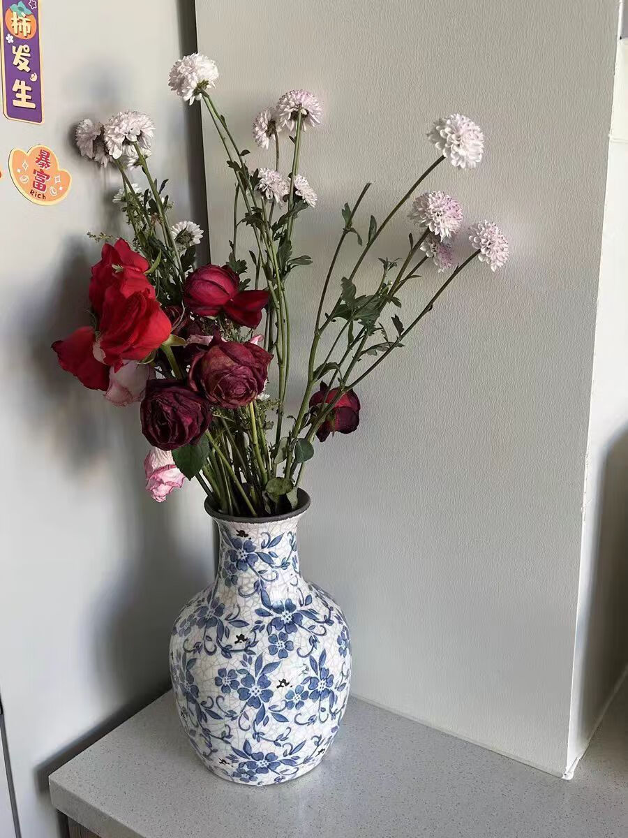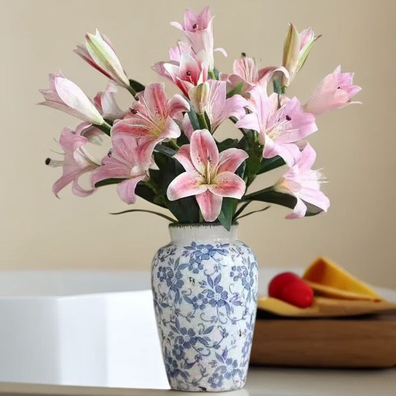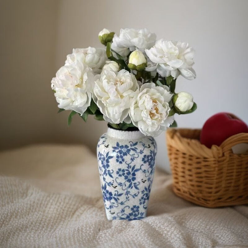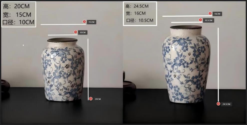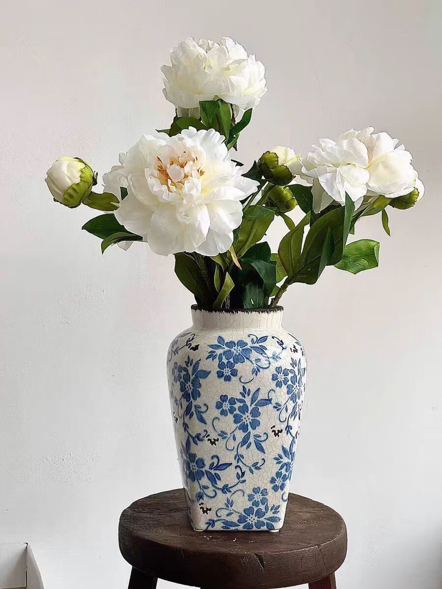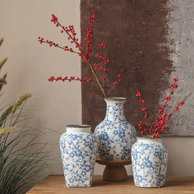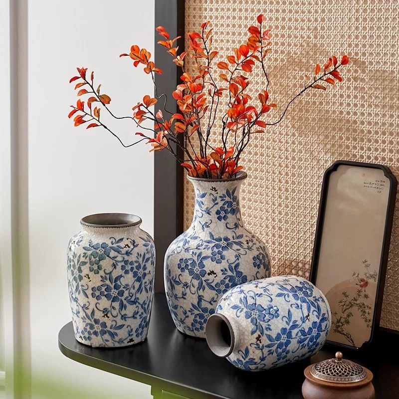 OYKTN花瓶青花瓷摆件中式景德镇陶瓷复古落地感客厅插花古典高端大 纹裂丨雅韵蓝丨青花丨【阳春】