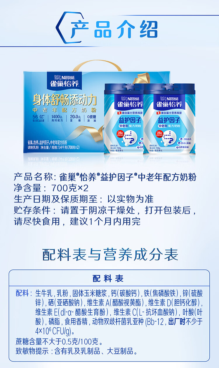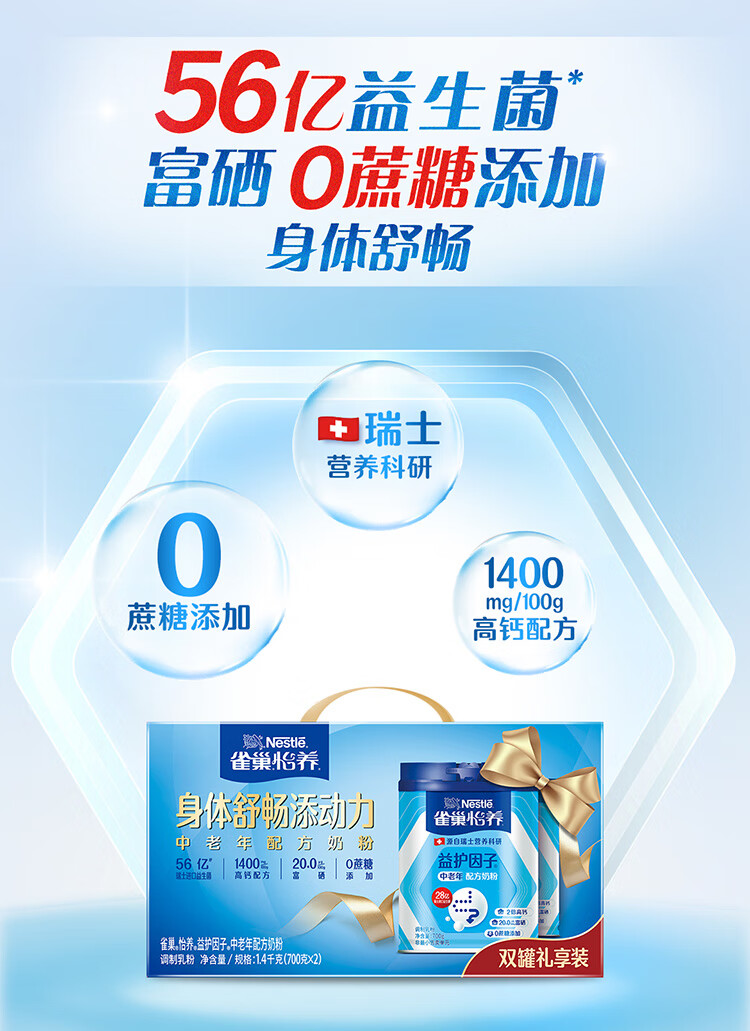 雀巢(Nestle)奶粉怡养中老年奶粉 送老人送长辈 现货现发 糖律配方690g+高钙奶粉 400g