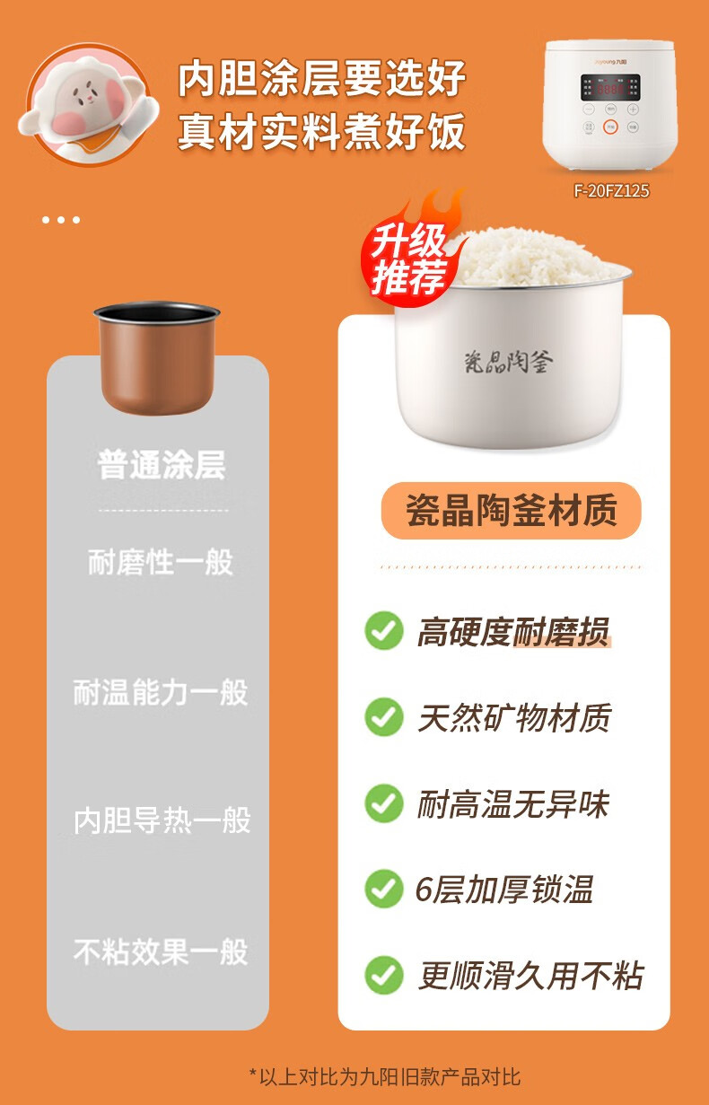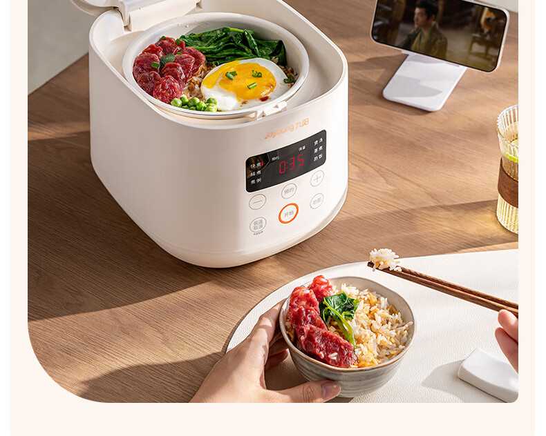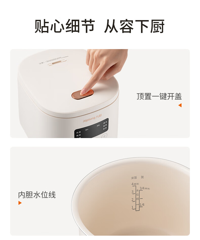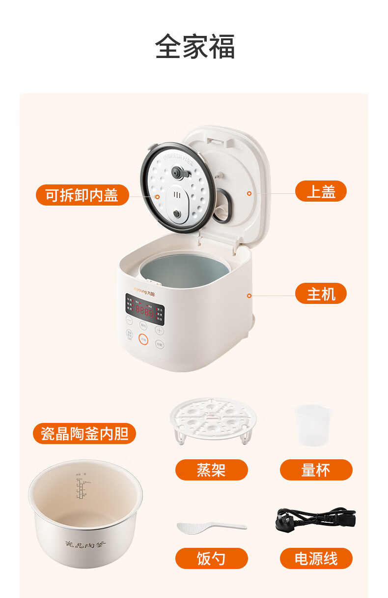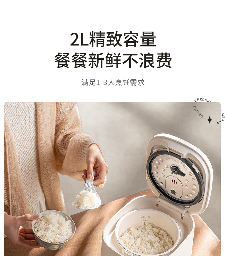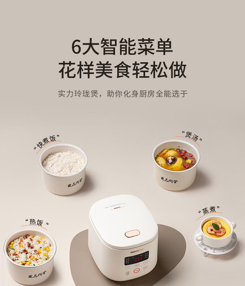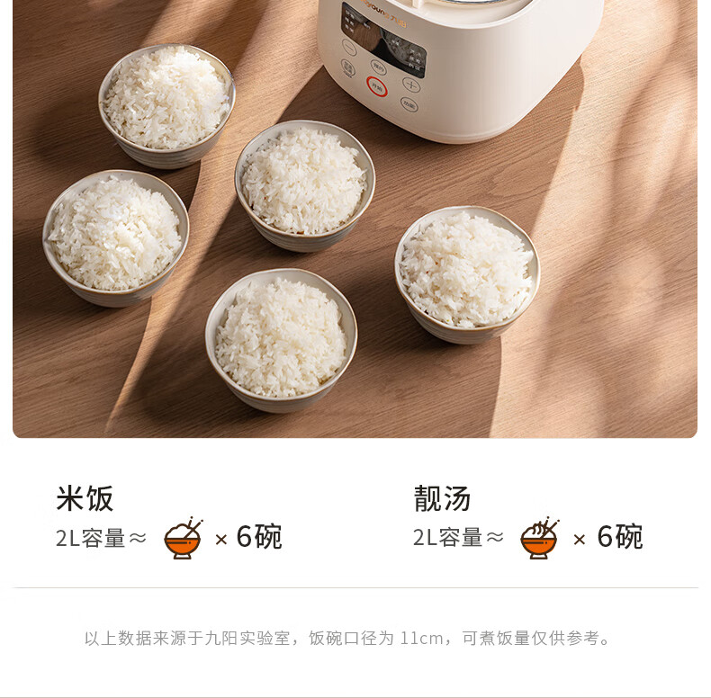 九阳(Joyoung)电饭煲电饭锅迷你家用不粘小容量1-2-3人快煮饭多功能锅微压预约2L升蒸饭器小型锅 【瓷晶陶釜内胆】F-20FZ125 2L