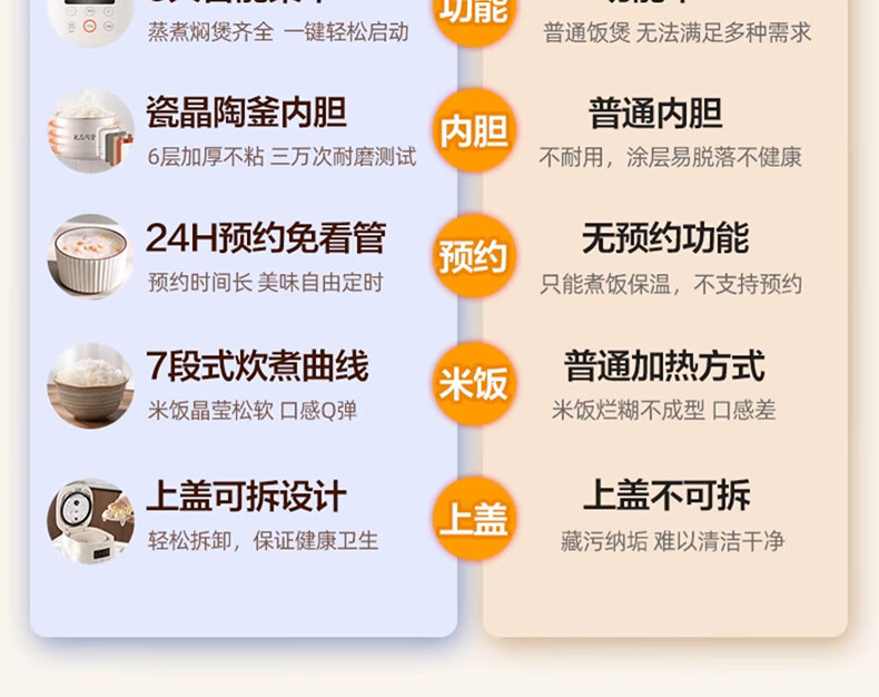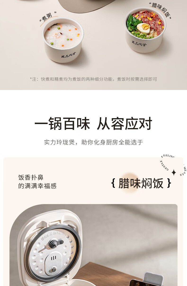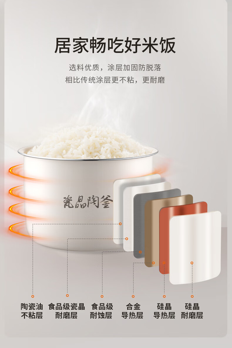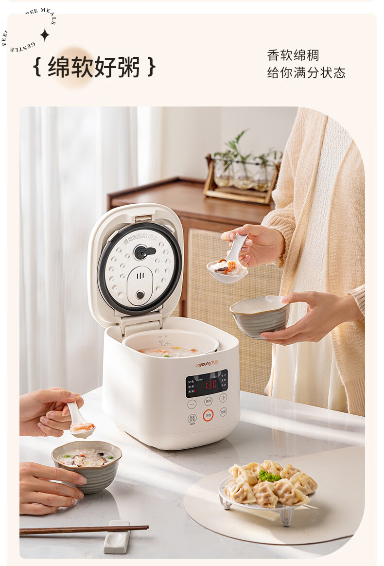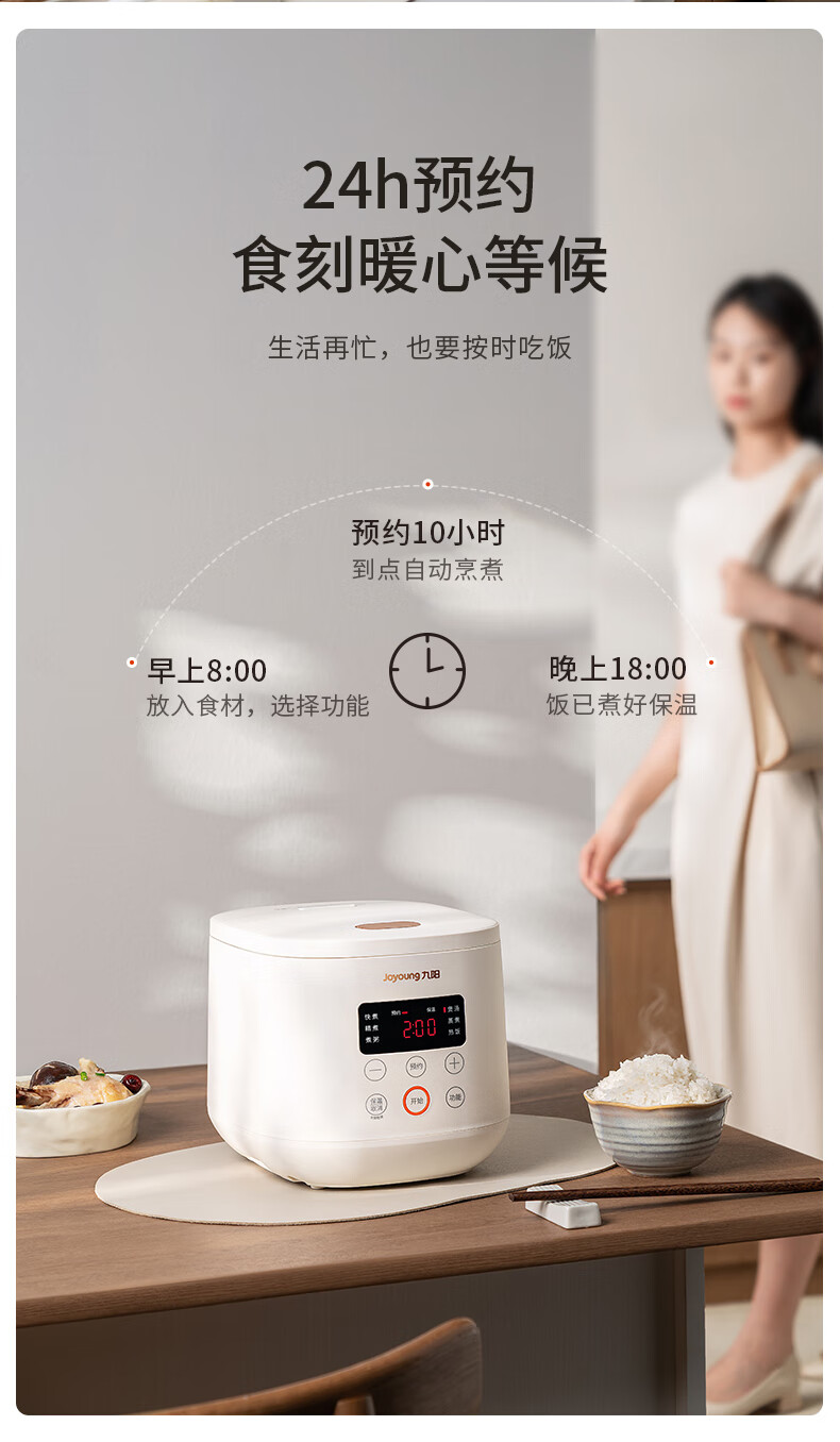 九阳(Joyoung)电饭煲电饭锅迷你家用不粘小容量1-2-3人快煮饭多功能锅微压预约2L升蒸饭器小型锅 【瓷晶陶釜内胆】F-20FZ125 2L