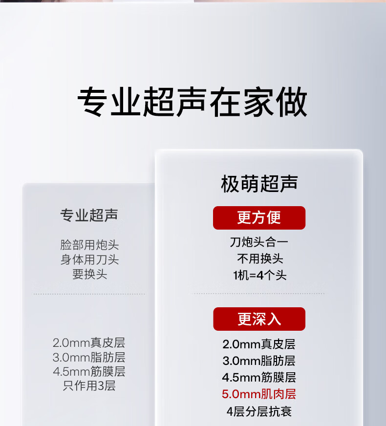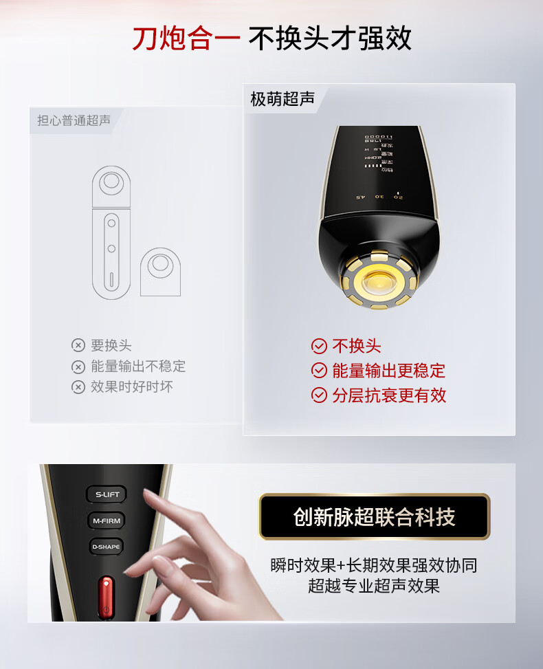 极萌政府补贴10%-超声炮美容仪分层【抗衰抗皱瘦脸】提拉胶原促生熬夜急救化妆镜礼物价保双11
