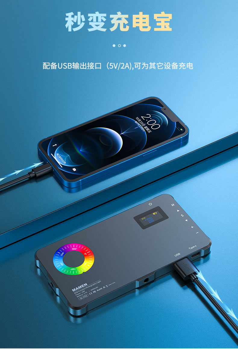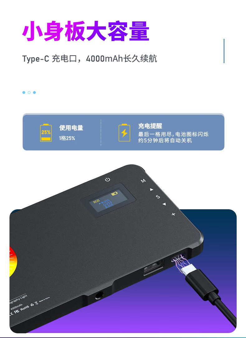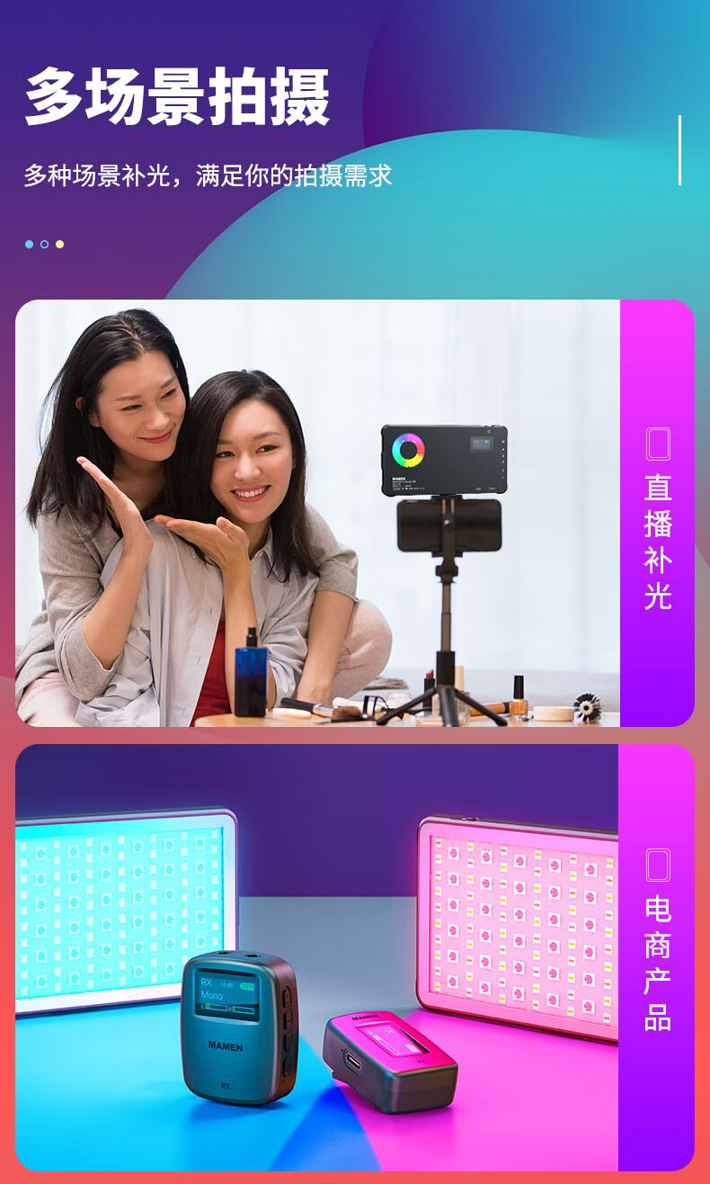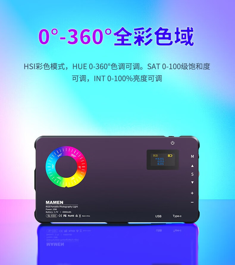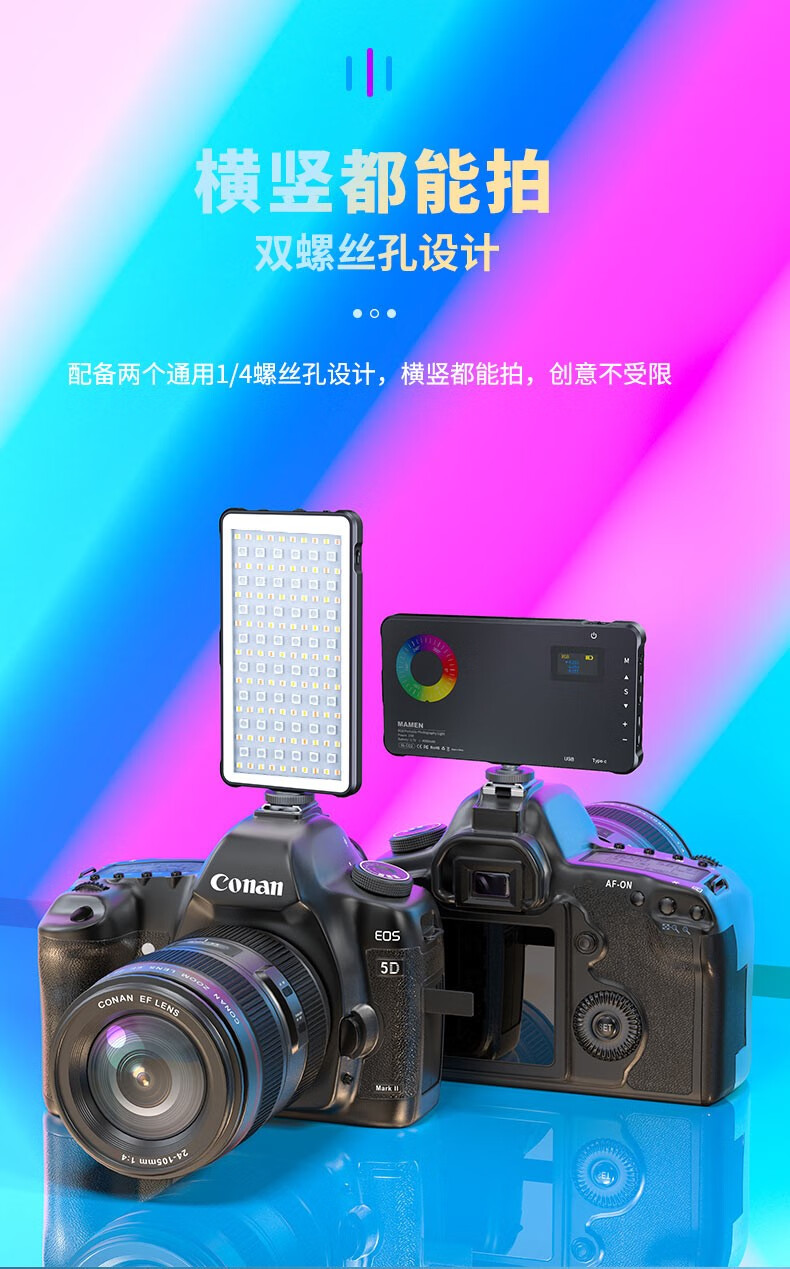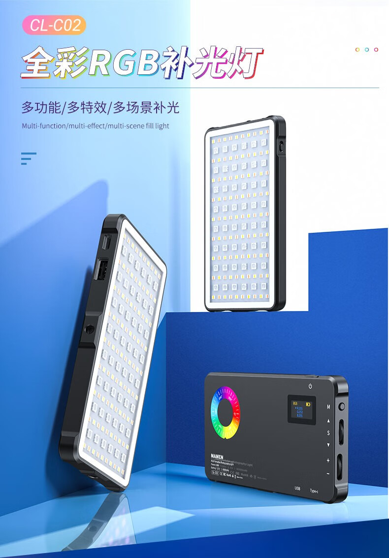 MAMEN慢门(MAMEN)SL-C02 全彩RGB补光灯便携LED口袋拍照双色温摄影灯微单相机手持氛围特效变色充电 C02全彩补光灯【热靴+充电线+收纳袋+柔光罩】