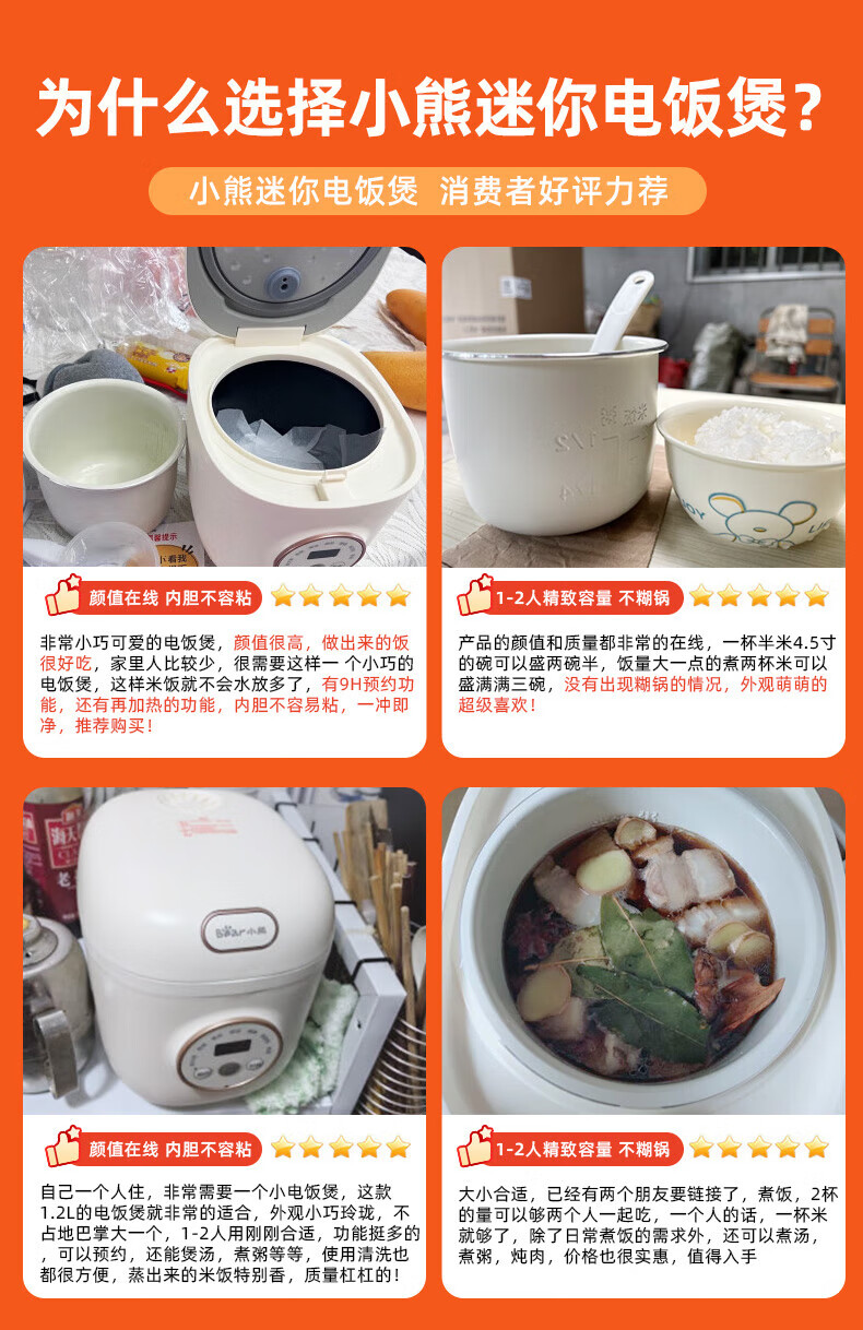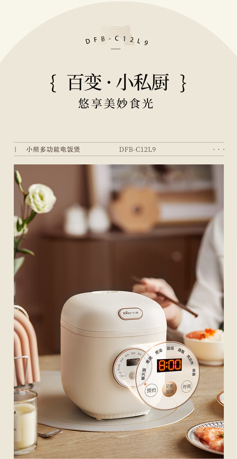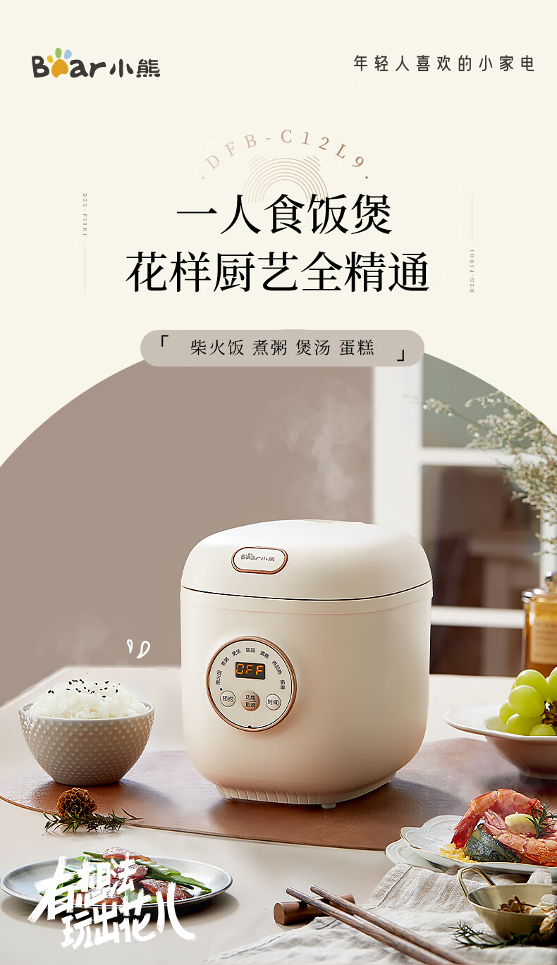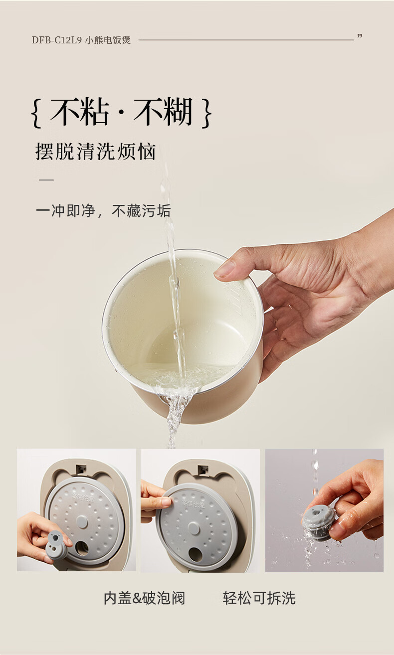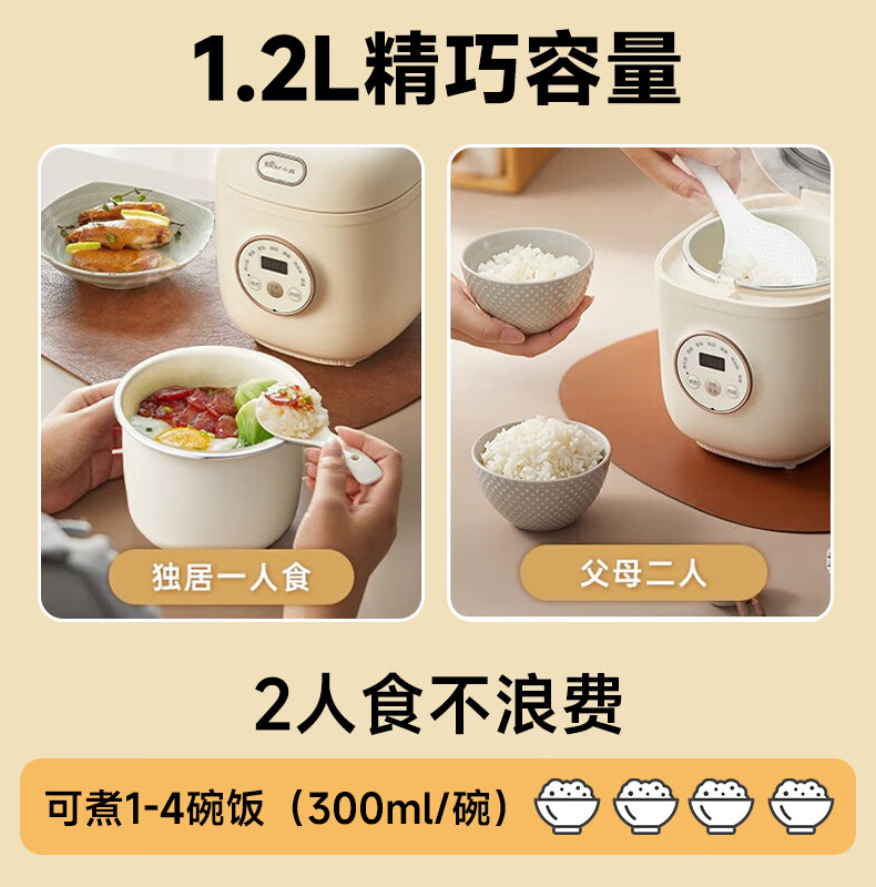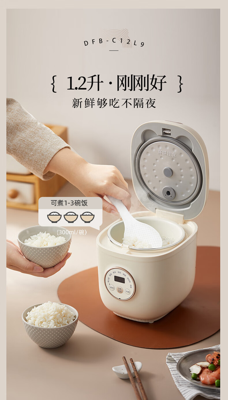 小熊(Bear)电饭煲1-2人精巧1.2L迷你小容量电饭锅一人食家用宿舍多功能压力快煮饭锅智能预约煲汤煮粥米饭锅 DFB-C12L9【小容量】 1.2L