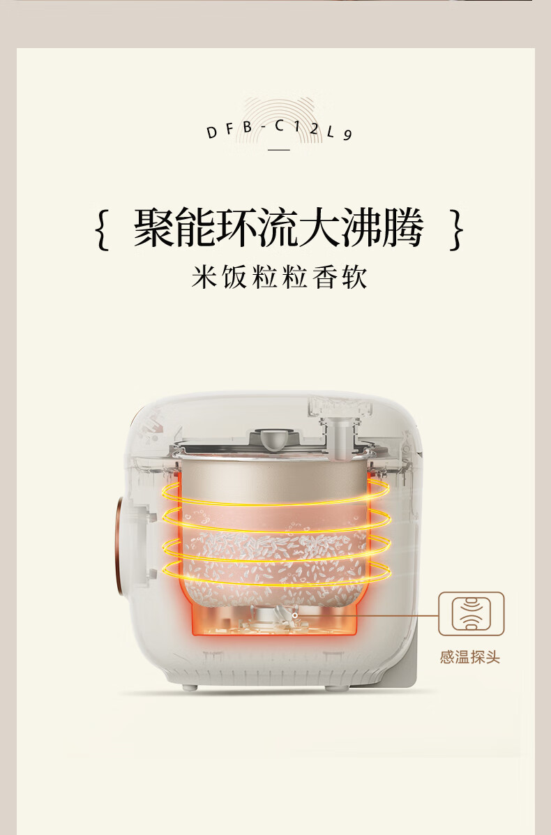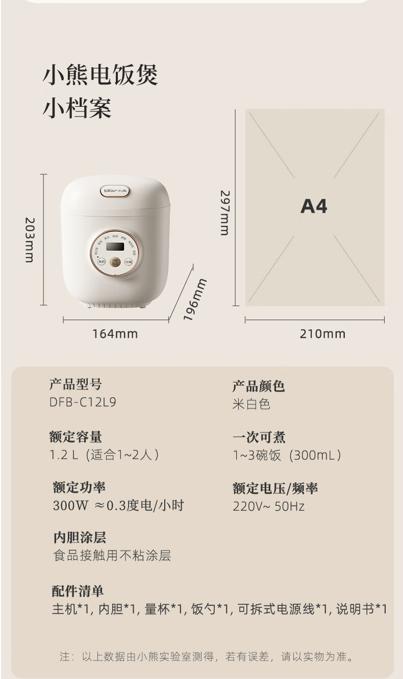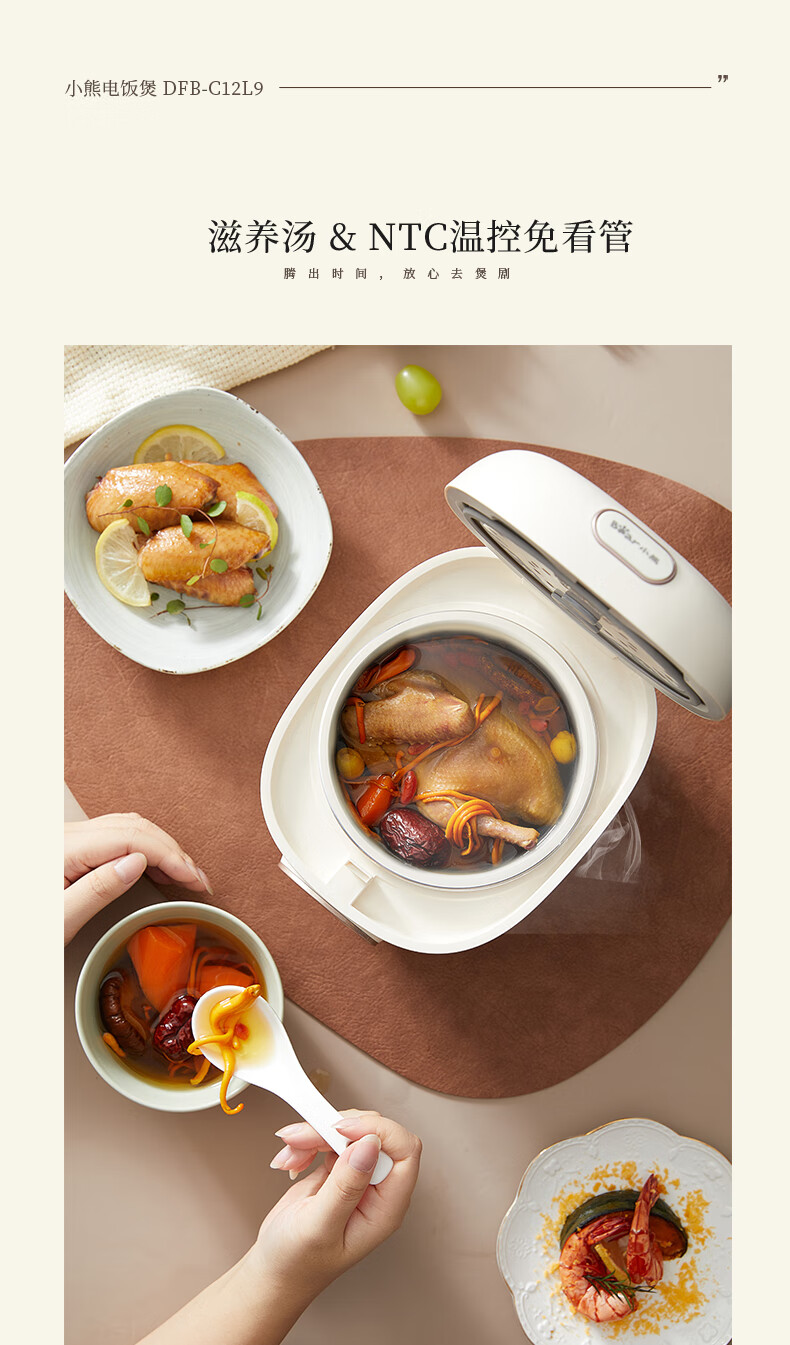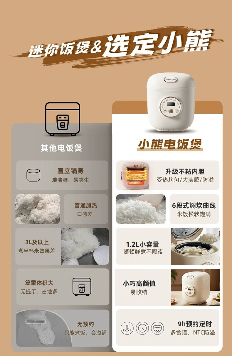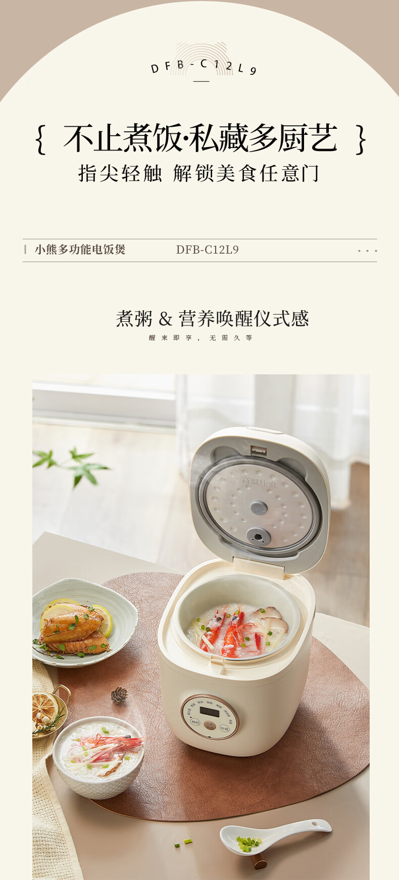 小熊(Bear)电饭煲1-2人精巧1.2L迷你小容量电饭锅一人食家用宿舍多功能压力快煮饭锅智能预约煲汤煮粥米饭锅 DFB-C12L9【小容量】 1.2L