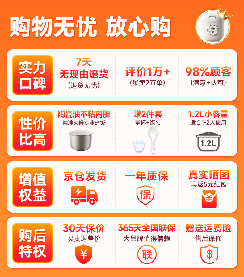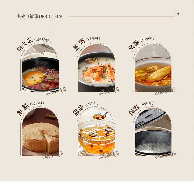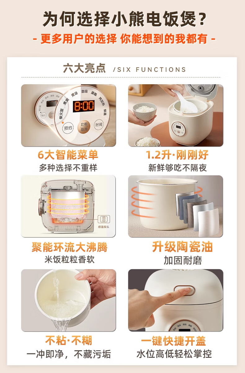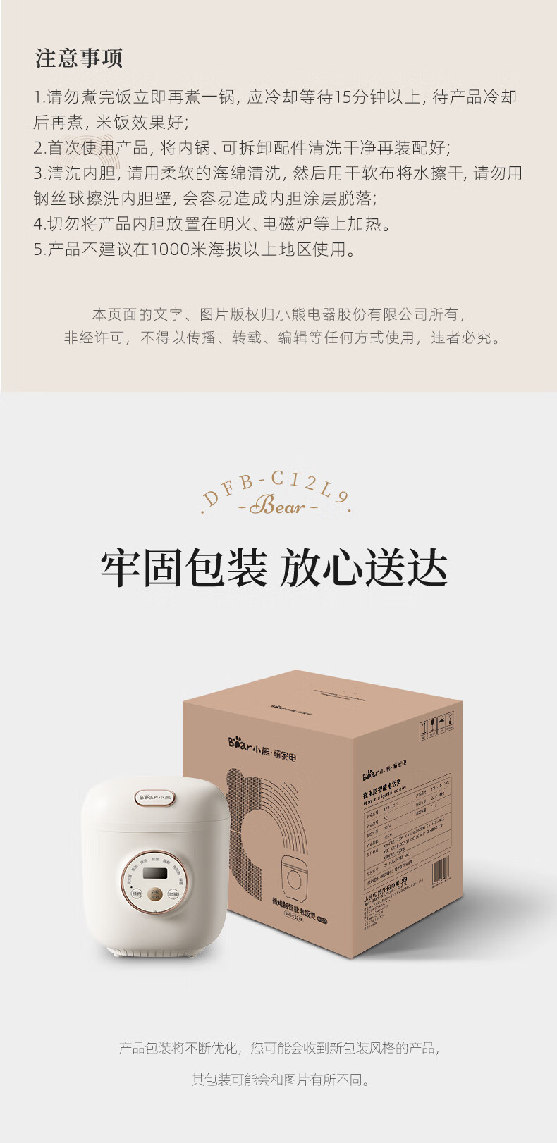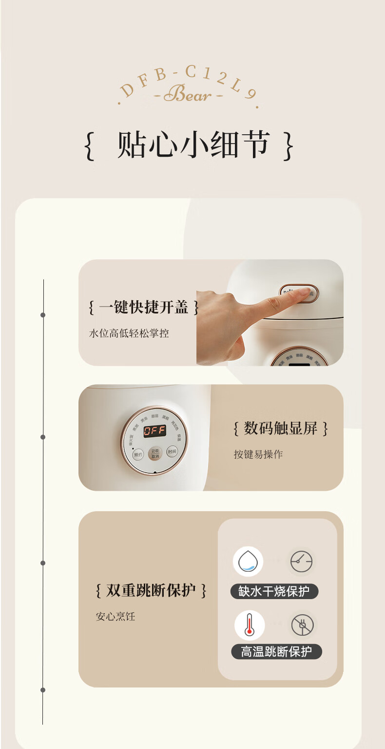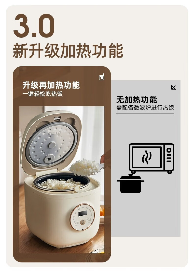 小熊(Bear)电饭煲1-2人精巧1.2L迷你小容量电饭锅一人食家用宿舍多功能压力快煮饭锅智能预约煲汤煮粥米饭锅 DFB-C12L9【小容量】 1.2L