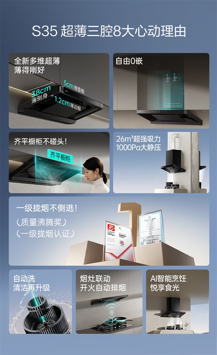 华帝(VATTI)油烟机【小飞碟S35】国家补贴20%抽吸油烟机灶具套装i11S35顶吸欧式26大吸力静音一级能效自清洁 【爆款小飞碟】S35单烟机|京仓速发 补贴