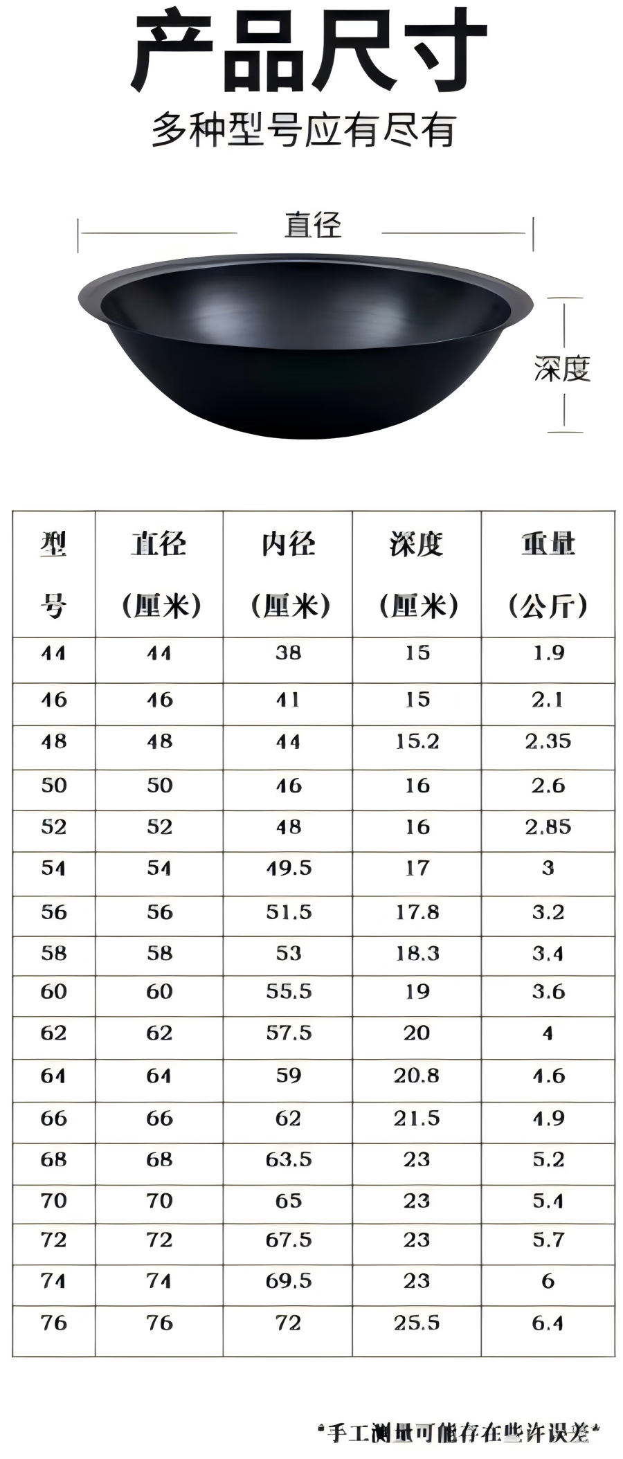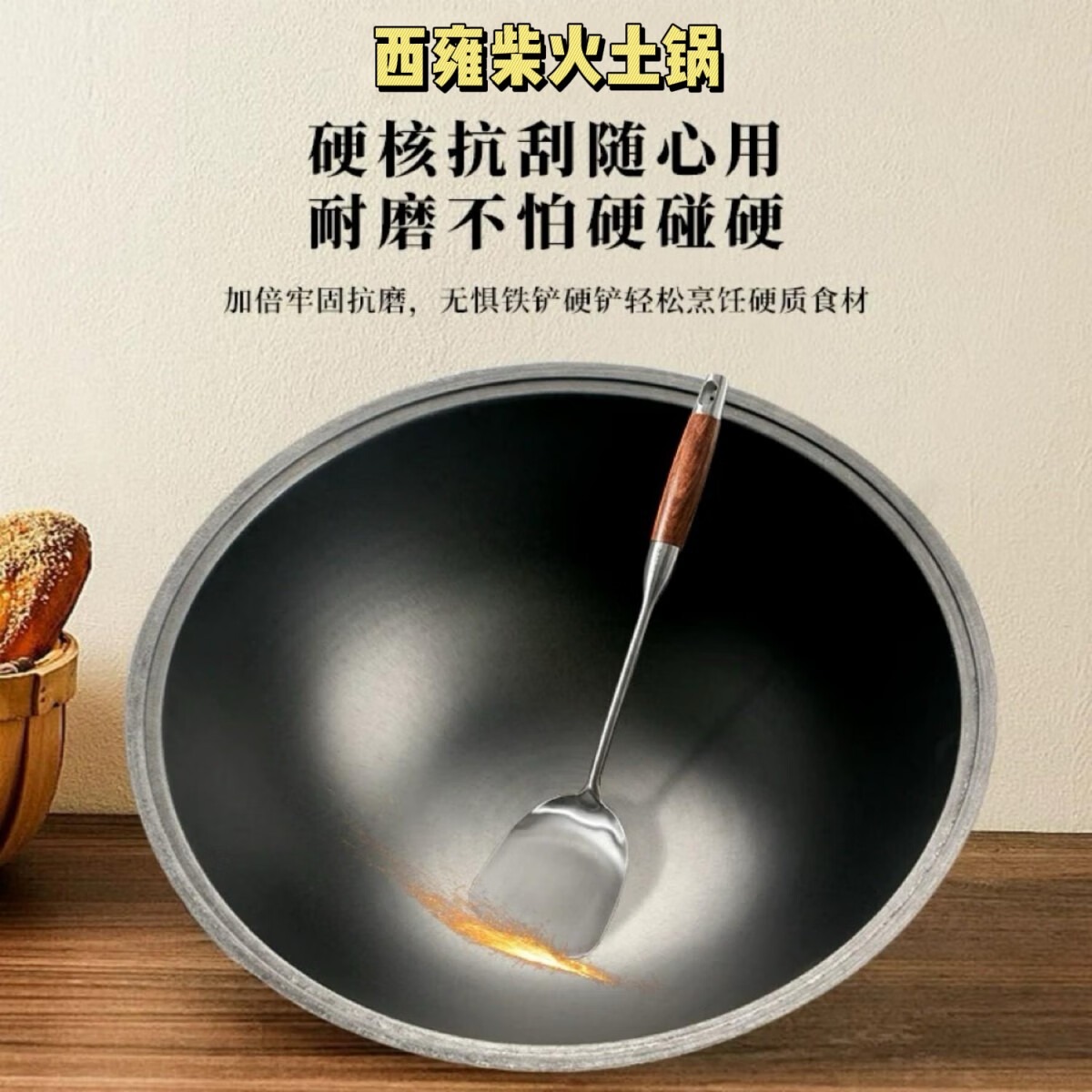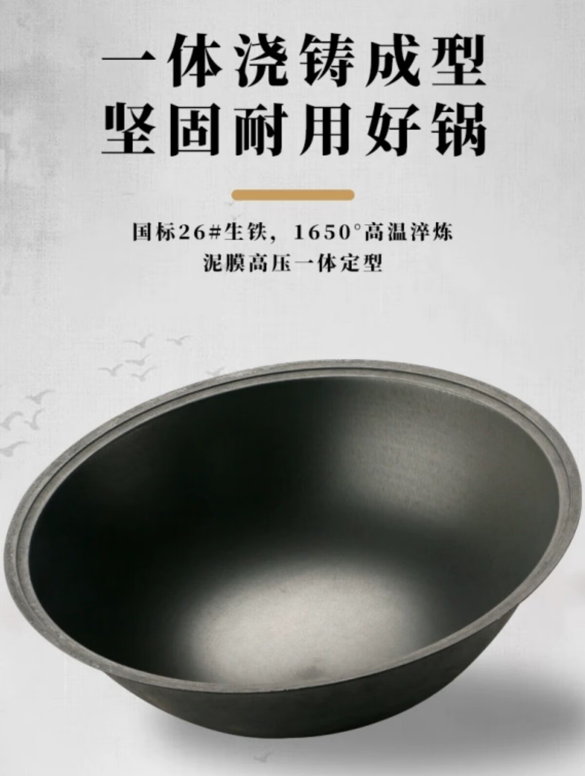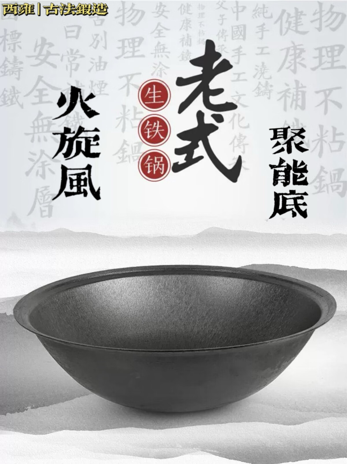 西雍柴火土灶无涂层大铁锅农村老式加厚铸铁土锅饭店商用食品级生铁锅 【火旋风生铁锅】直径 56cm