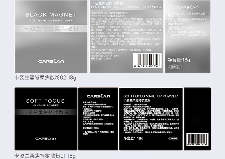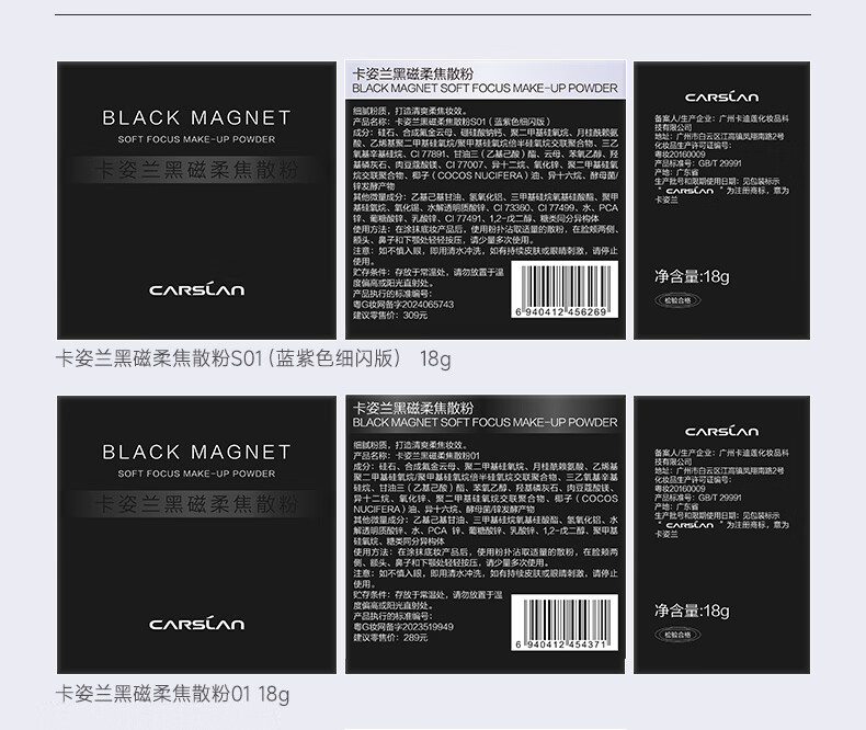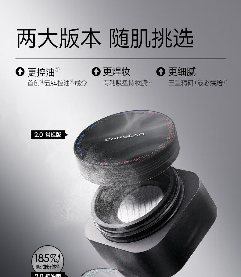 卡姿兰(Carslan)黑磁散粉2.0大容量(蓝紫色)18g 定妆蜜粉饼控油遮瑕持久防汗 礼物
