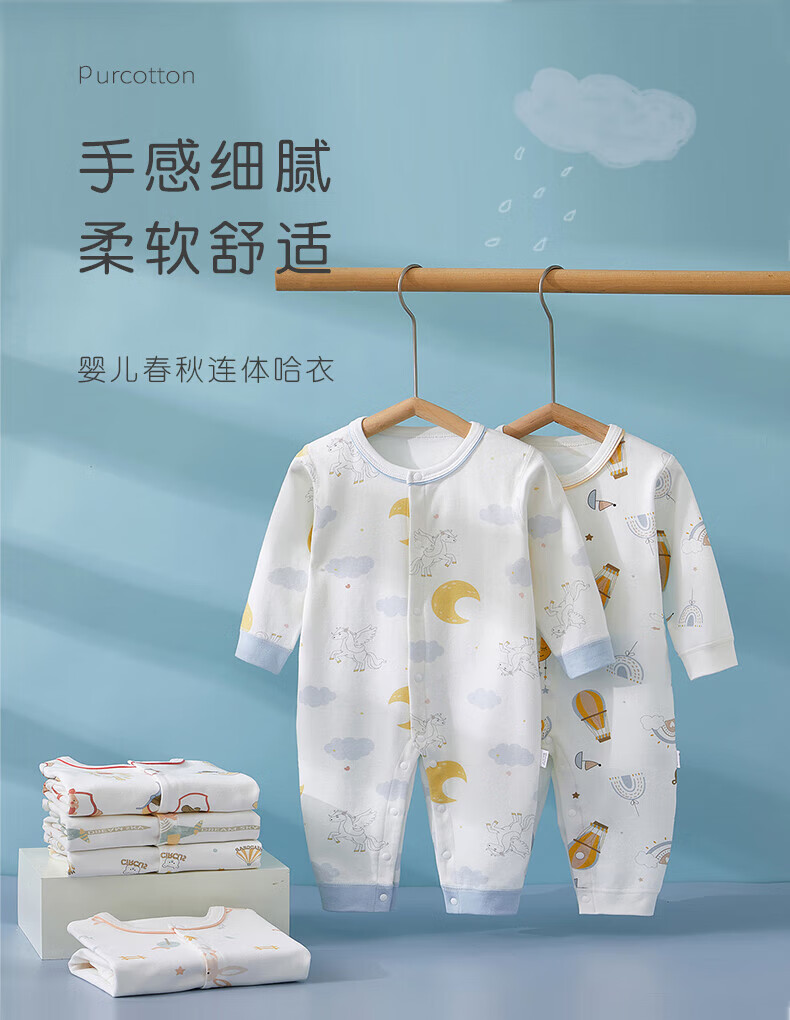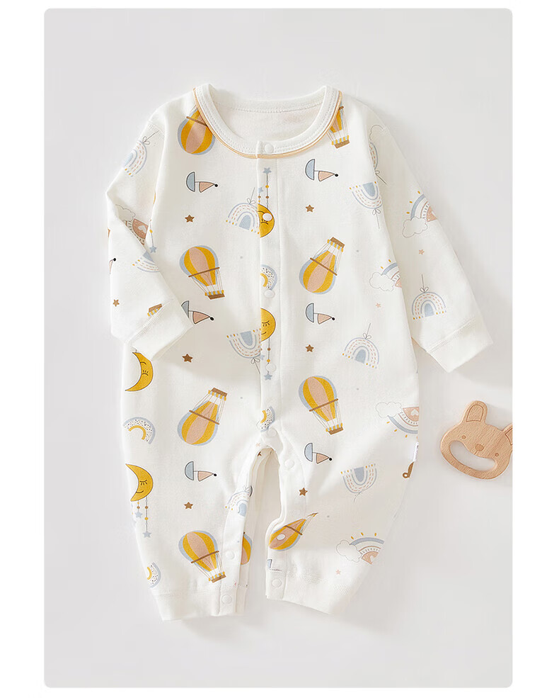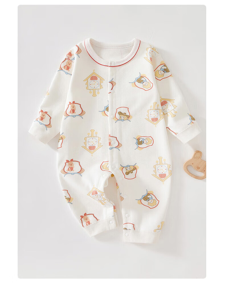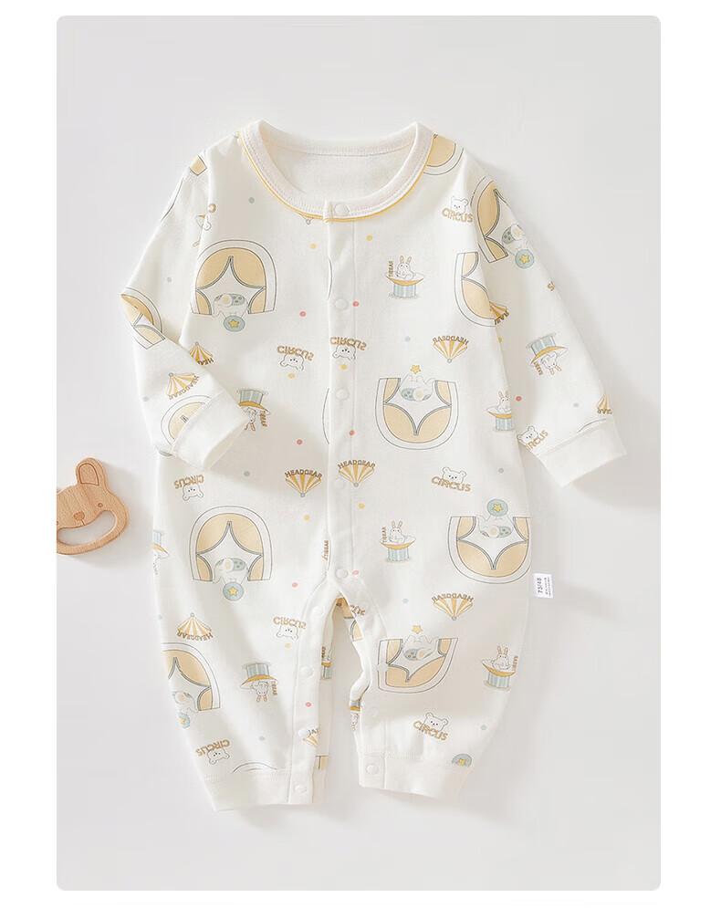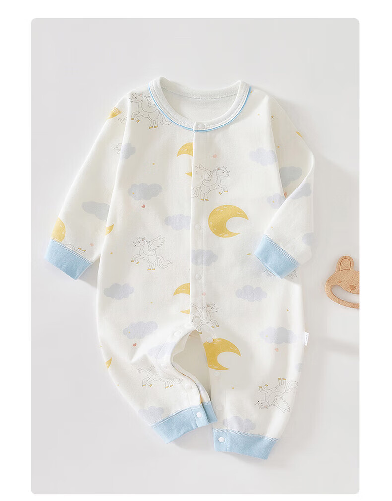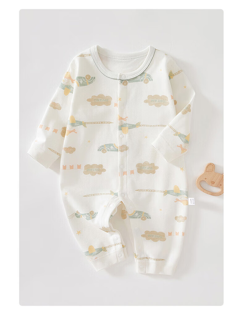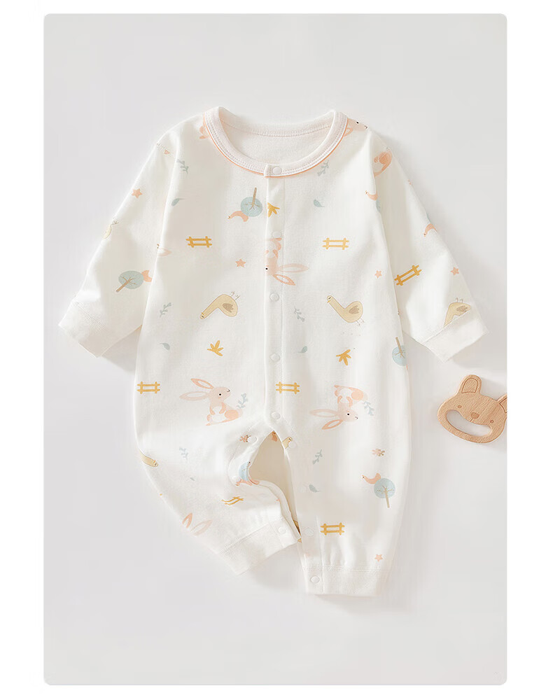 贝肽斯新生儿连体衣春秋季男女宝宝纯棉衣服婴儿长袖爬服 丛林小兔 (单件装) 80 cm