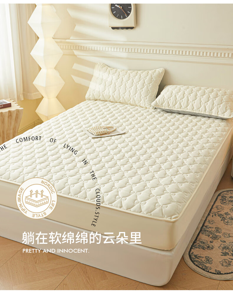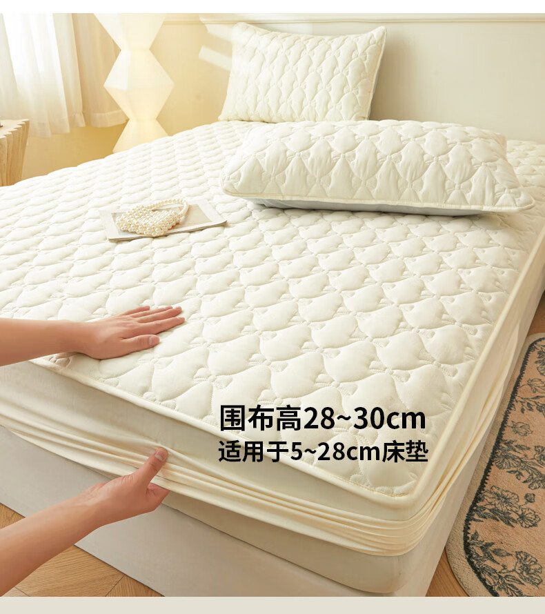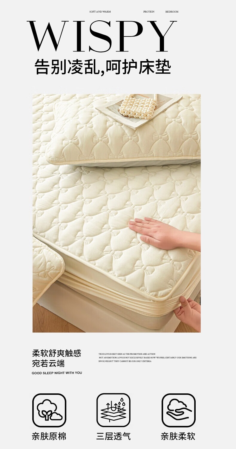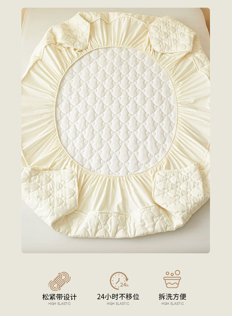 雅鹿加厚夹棉床笠防尘绗缝床罩三件套隔脏床盖床垫保护套床上用品 蝴蝶结床笠-天空蓝【蓬松柔软 四季通用】 150*200cm单床笠
