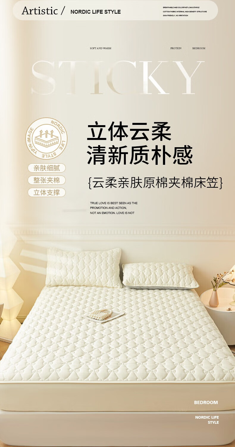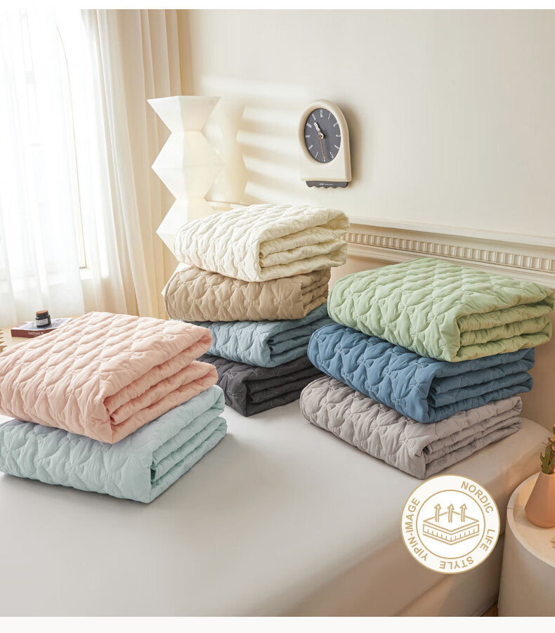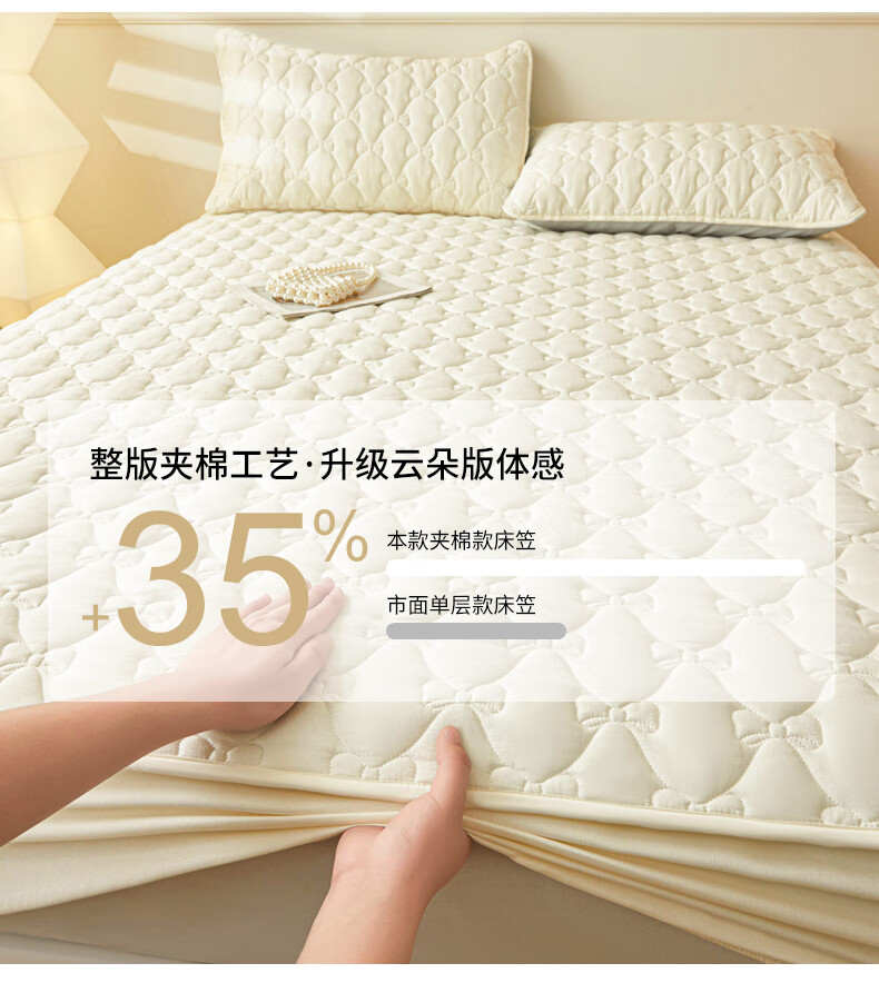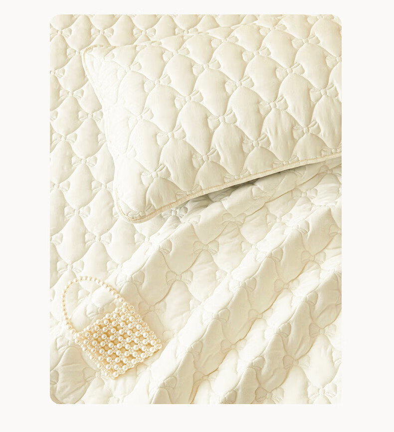 雅鹿加厚夹棉床笠防尘绗缝床罩三件套隔脏床盖床垫保护套床上用品 蝴蝶结床笠-天空蓝【蓬松柔软 四季通用】 150*200cm单床笠