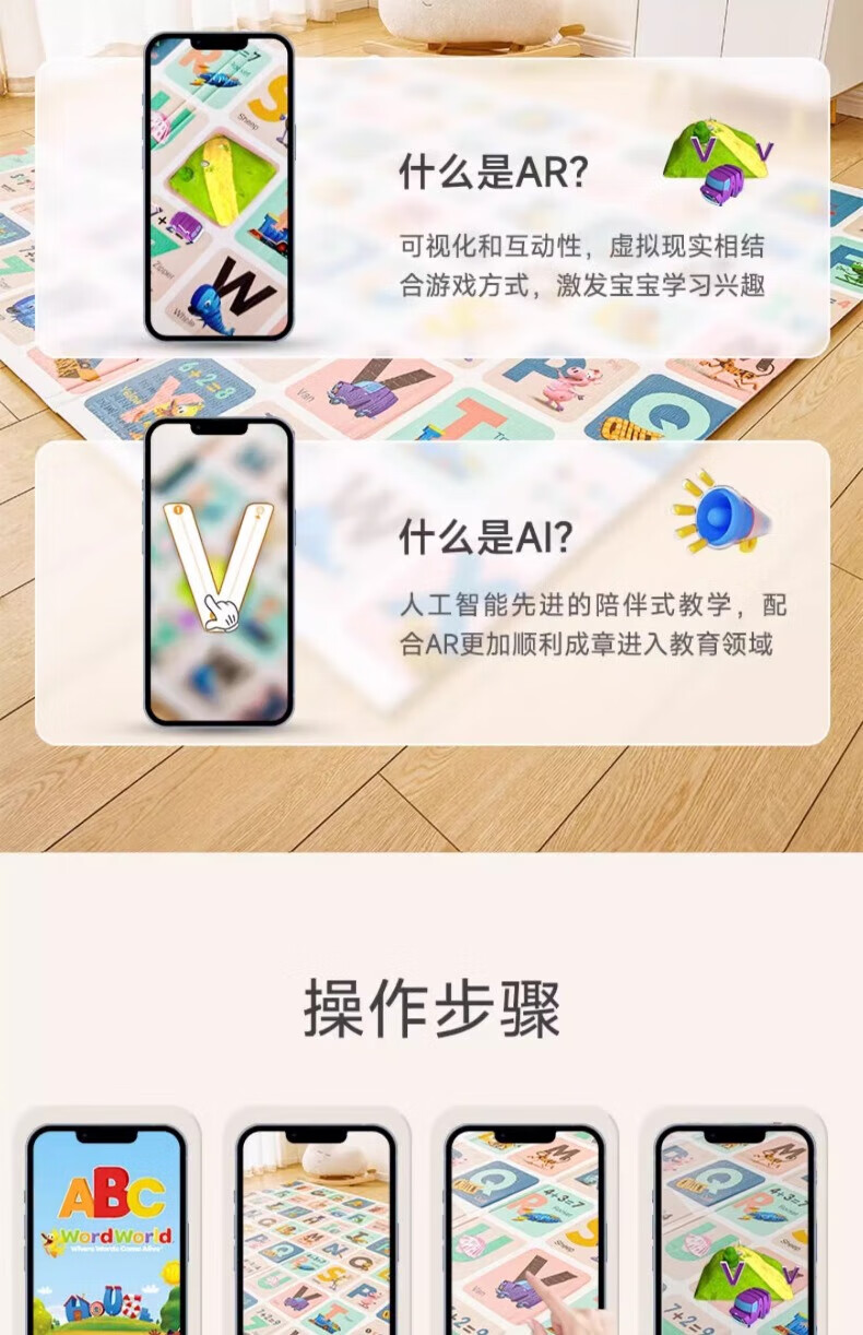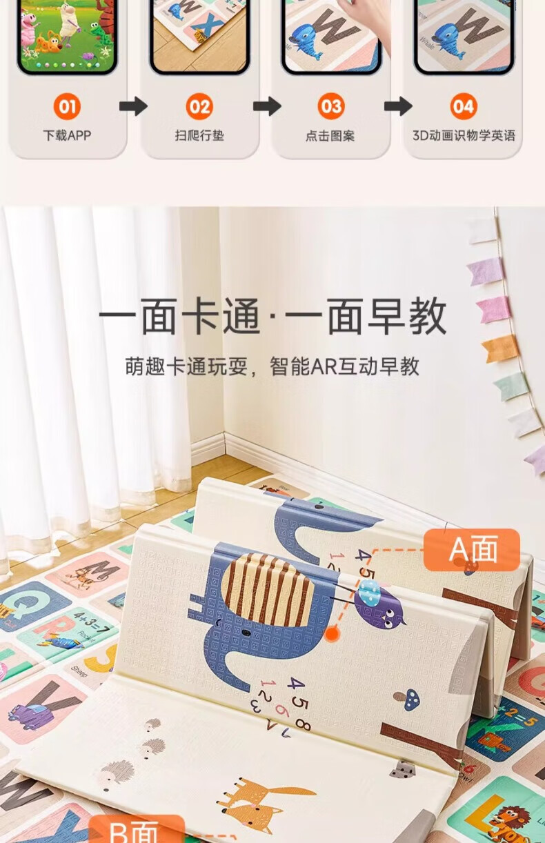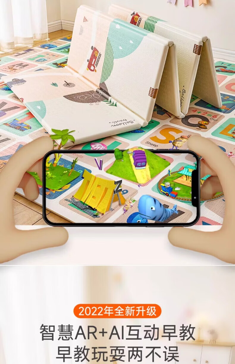 贝肽斯婴儿爬爬垫加厚折叠款儿童早教地垫宝宝爬行垫家用无味防摔垫 AR升级加厚款【疯狂动物城+蒙氏英语早教】 180*200*厚2cm【无味无甲醛】