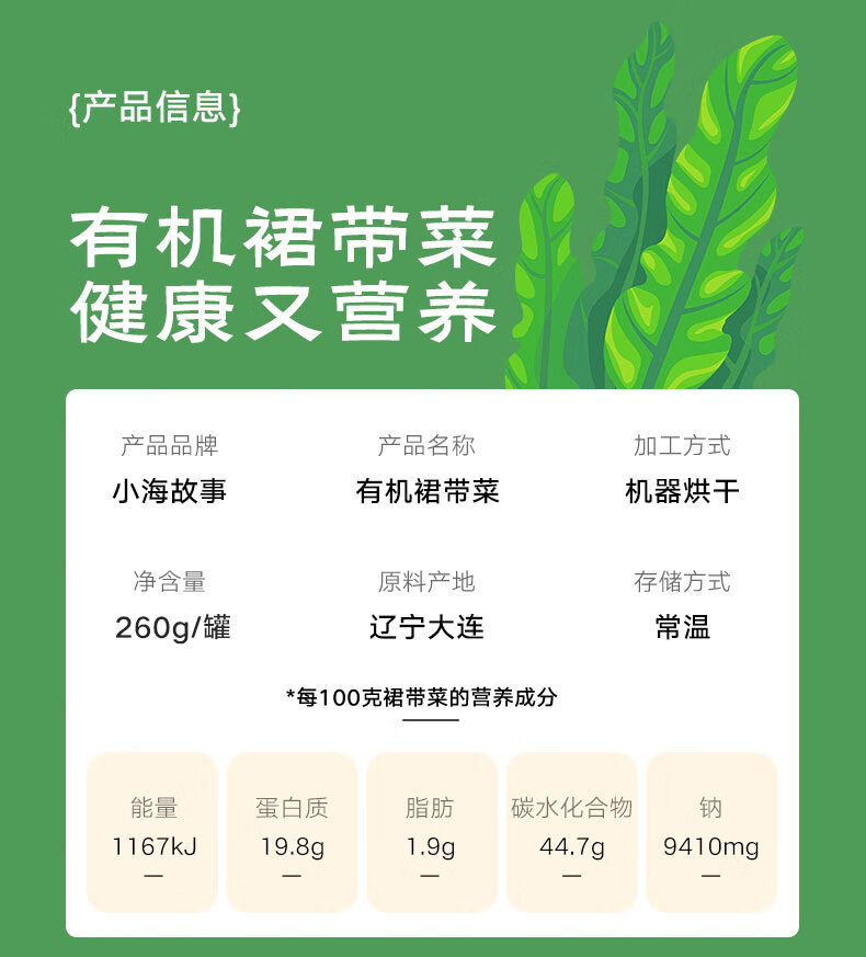 小海故事 大连有机干裙带菜净含量260g/罐 源头直发 头茬海芽菜嫩叶