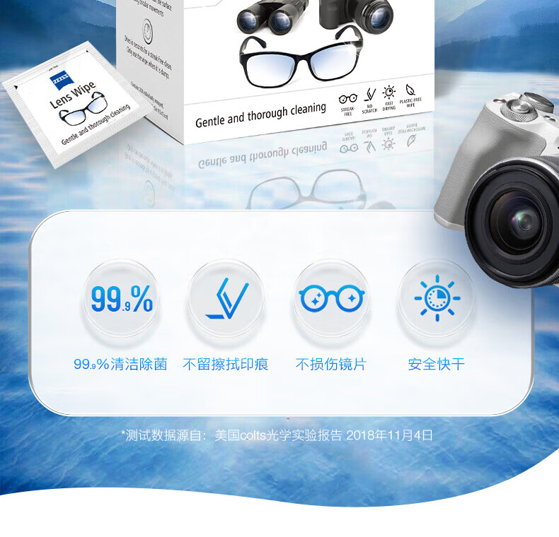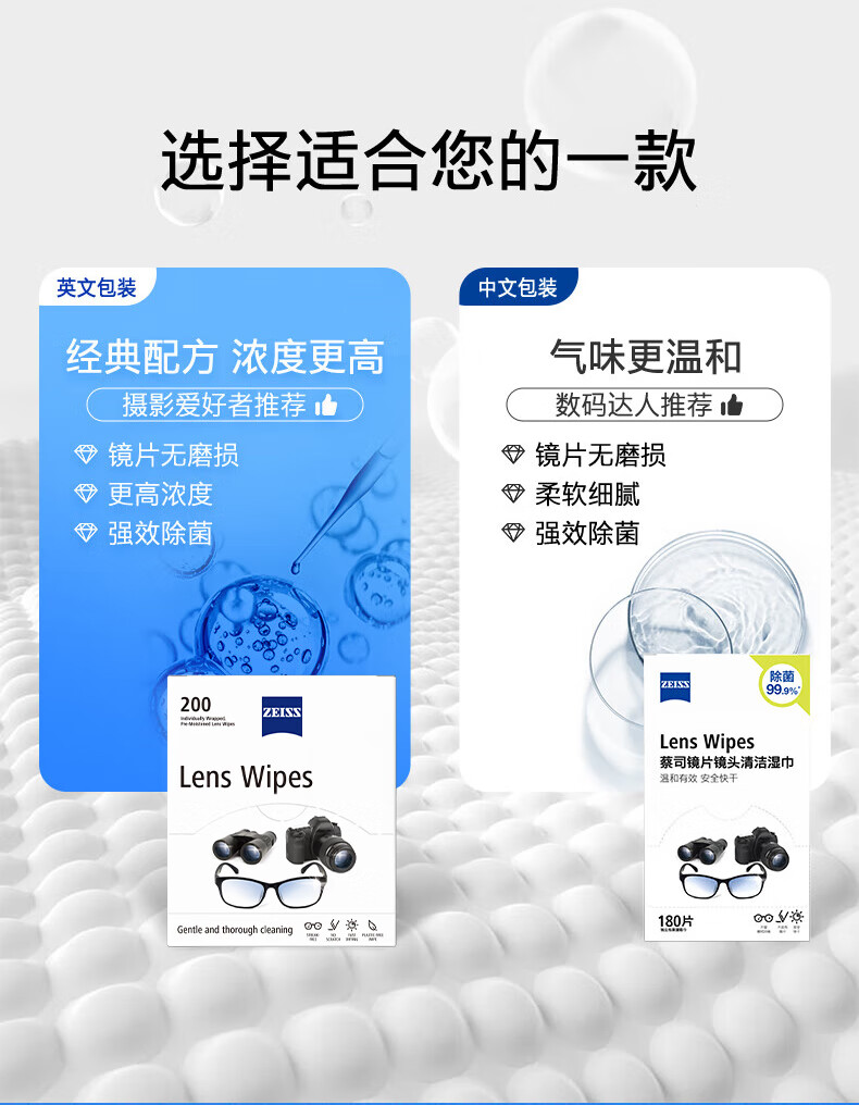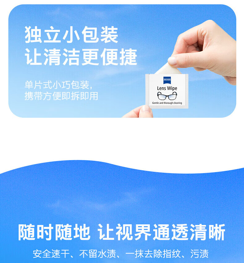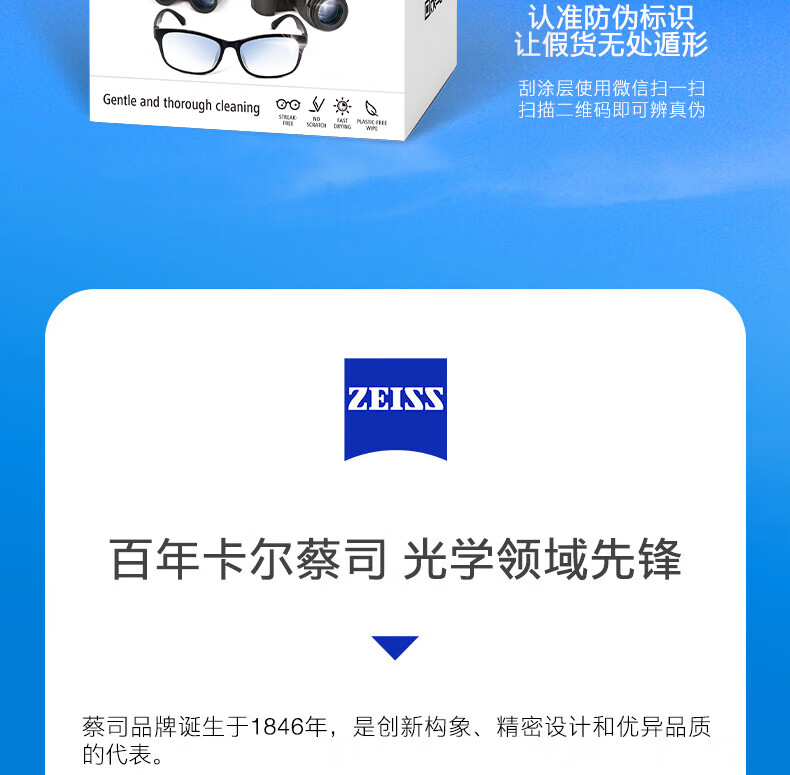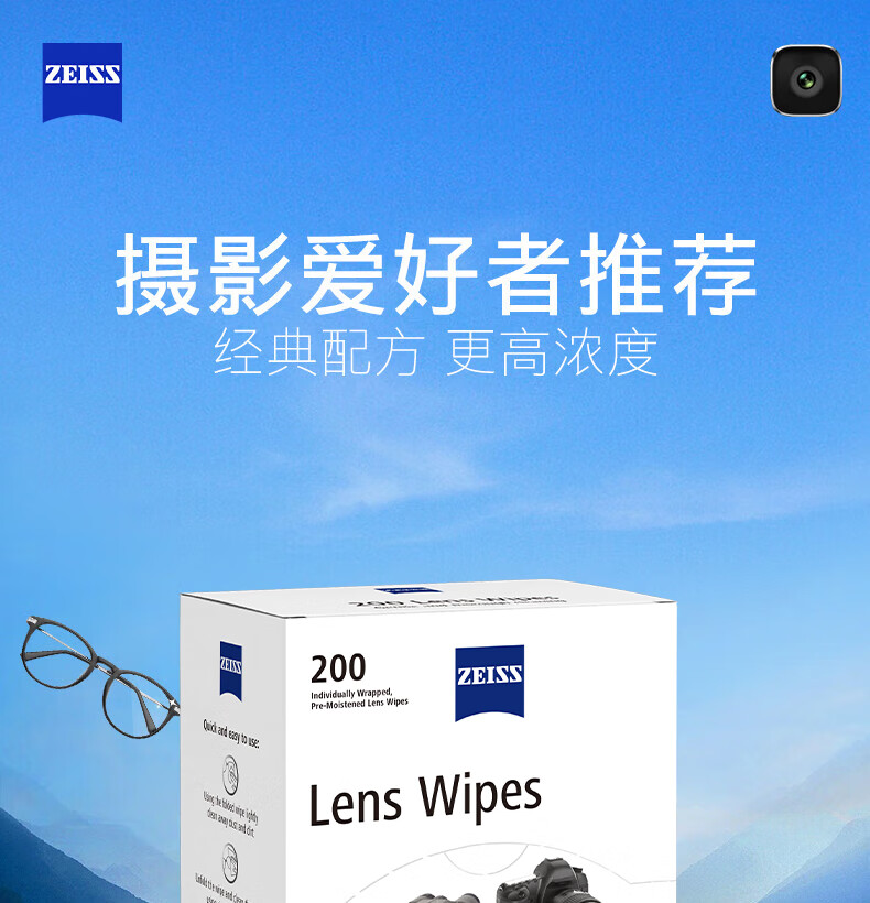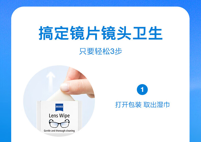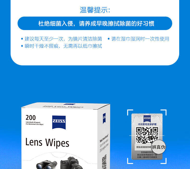 zeiss蔡司擦镜纸 眼镜清洁 擦眼镜 擦相机 钢琴 除菌湿巾 200片装
