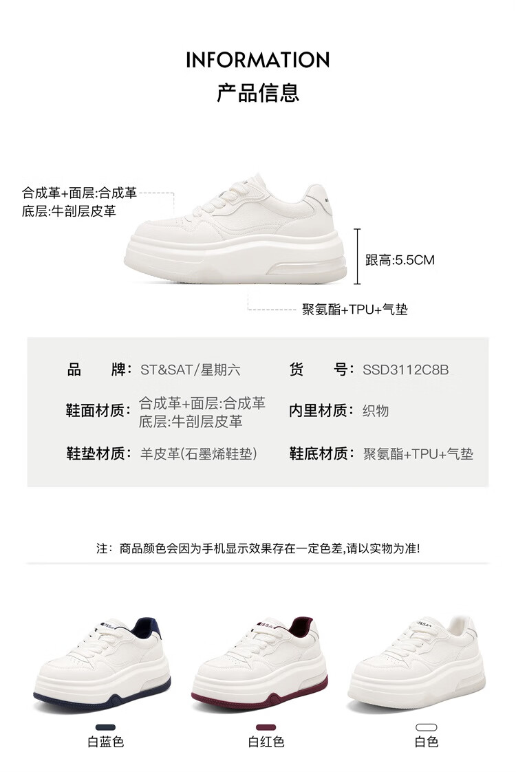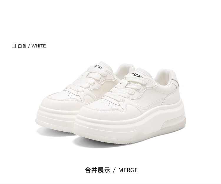 星期六时尚圆头休闲女鞋2025秋季新款百搭学院风小白鞋MTSSD3112C8B 白色 38