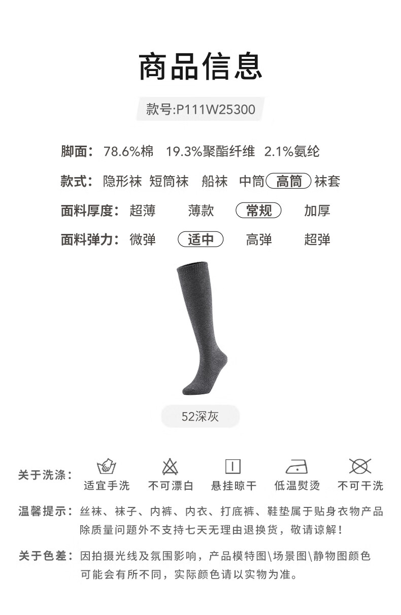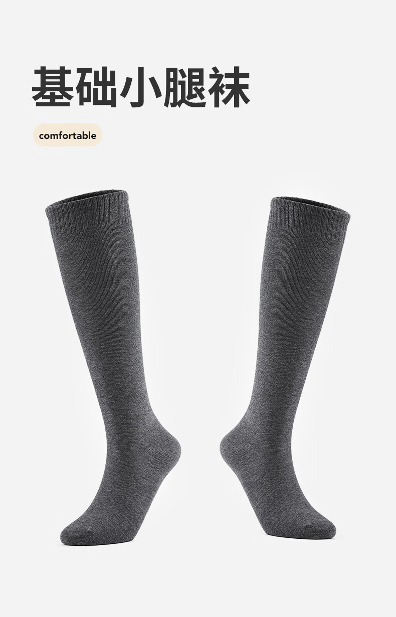 热风【商场同款】女士高帮袜2025年秋季新款基础miu系小腿袜长筒袜 52深灰 1双 均码