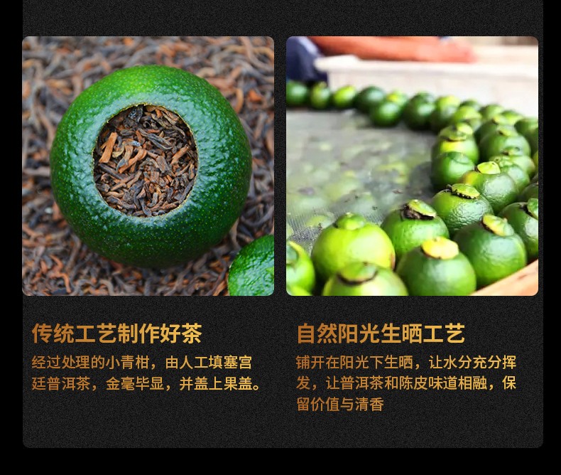 立香园茶叶 小青柑普洱熟茶 新会老陈皮云南宫廷熟普小青桔柑普茶 250克礼罐装