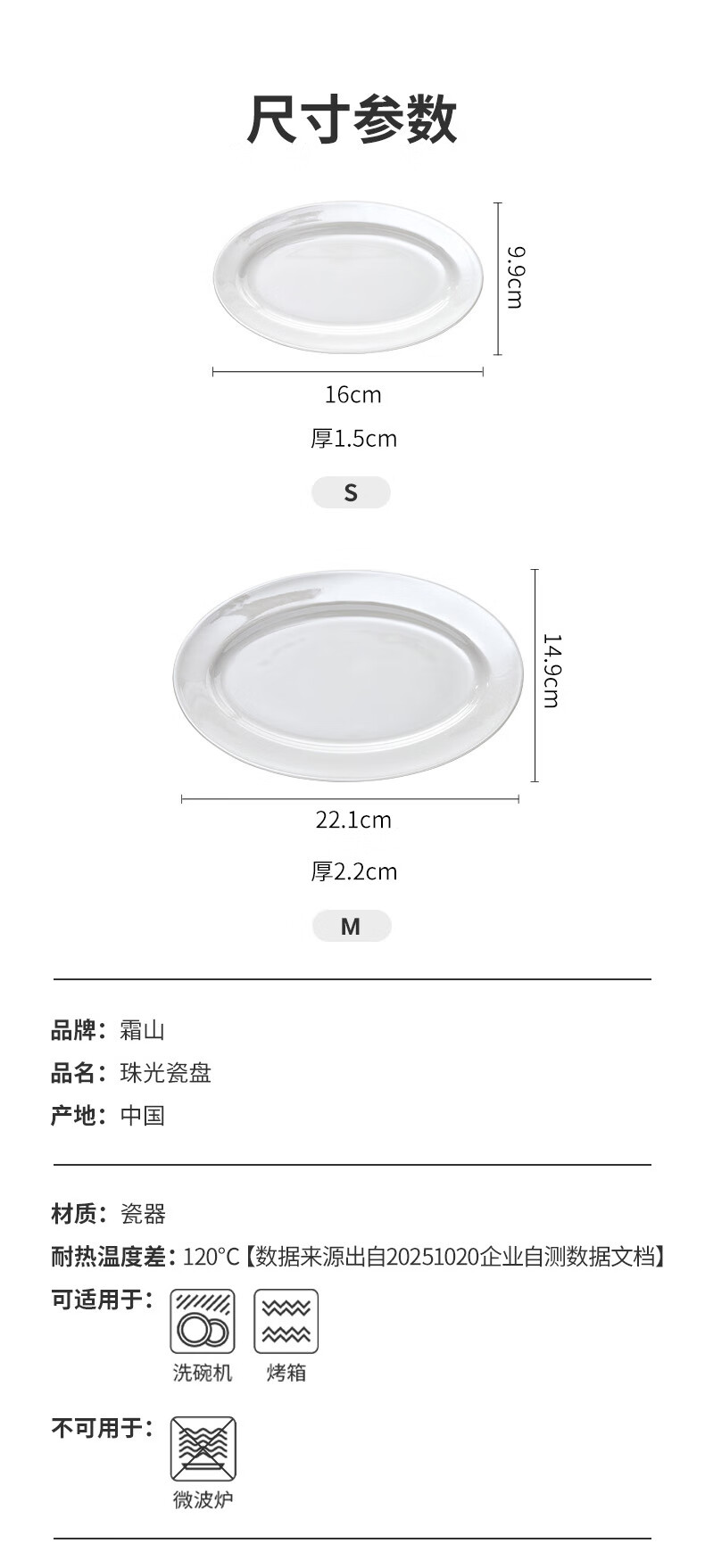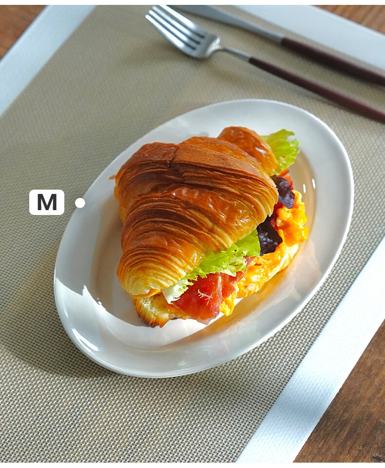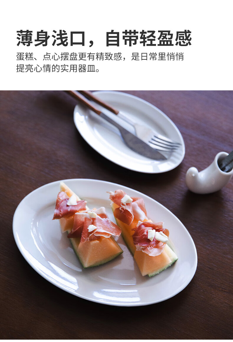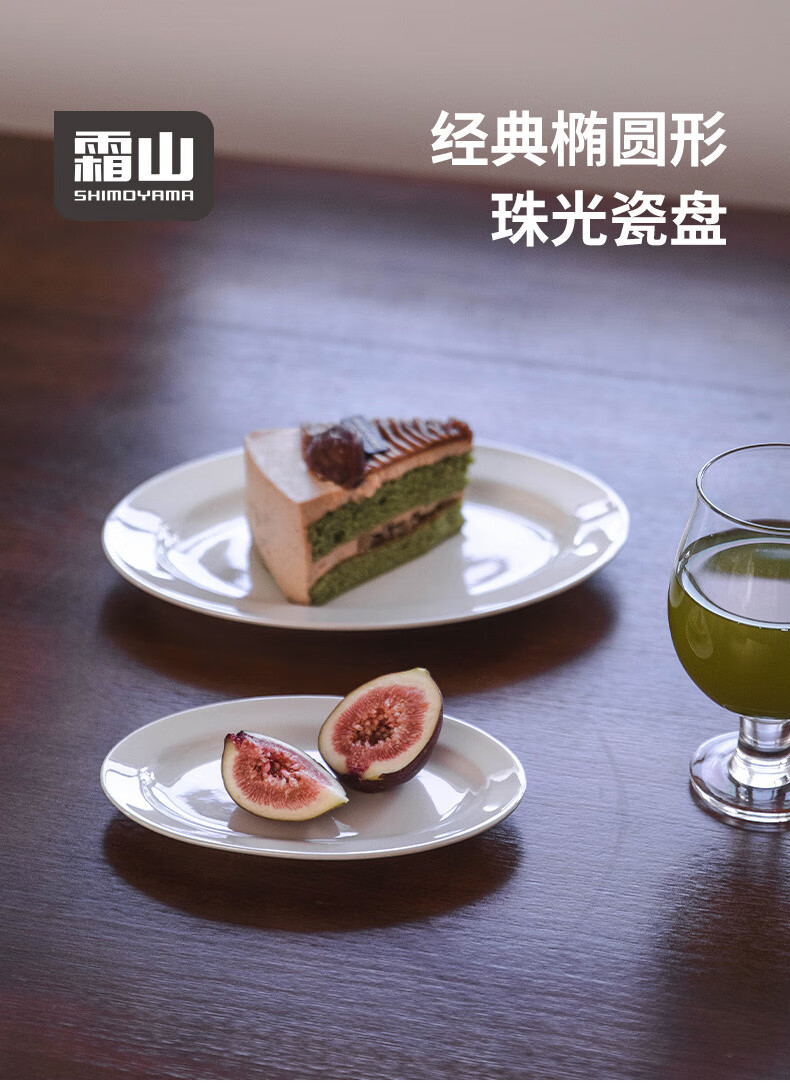 霜山瓷制餐盘椭圆形蛋糕甜品盘瓷盘点心水果盘家用早餐盘西餐盘子 【M号】长22.1*宽14.9cm