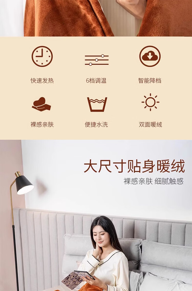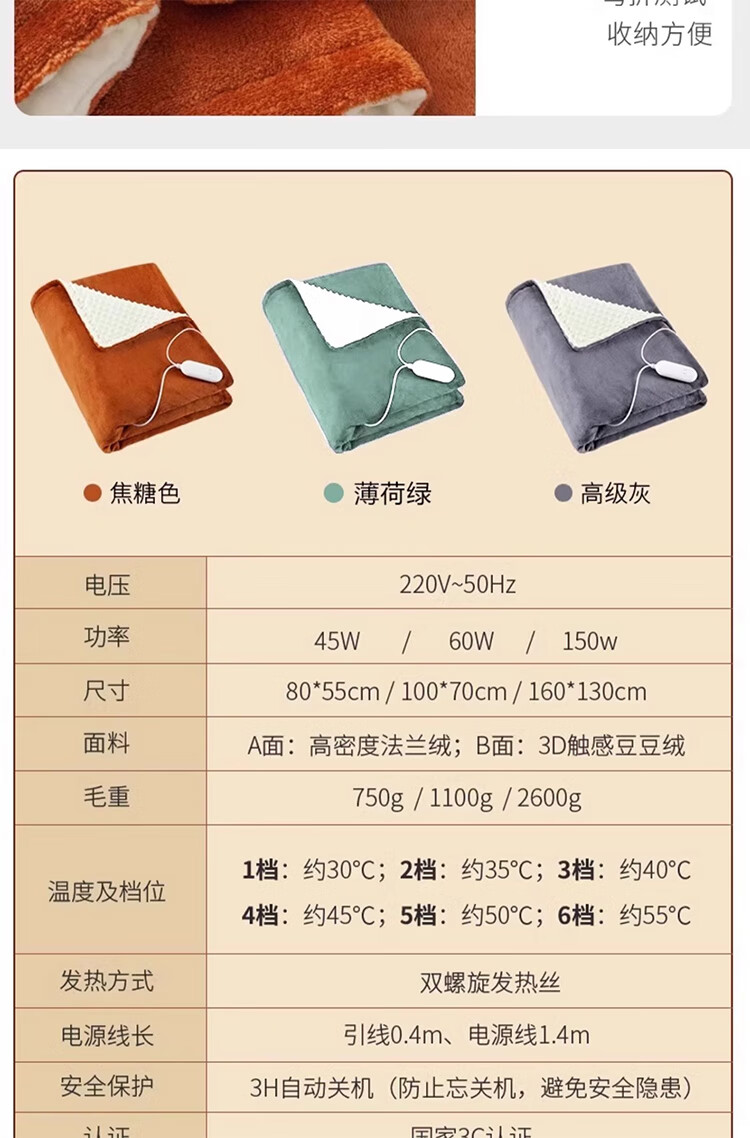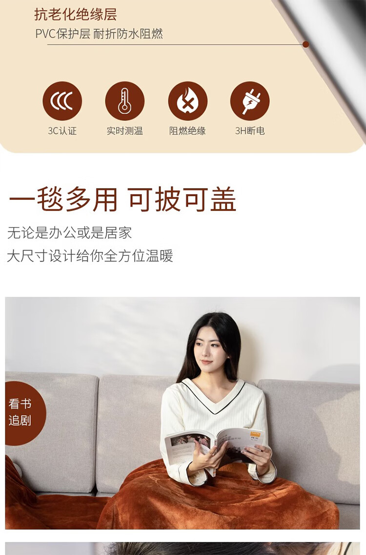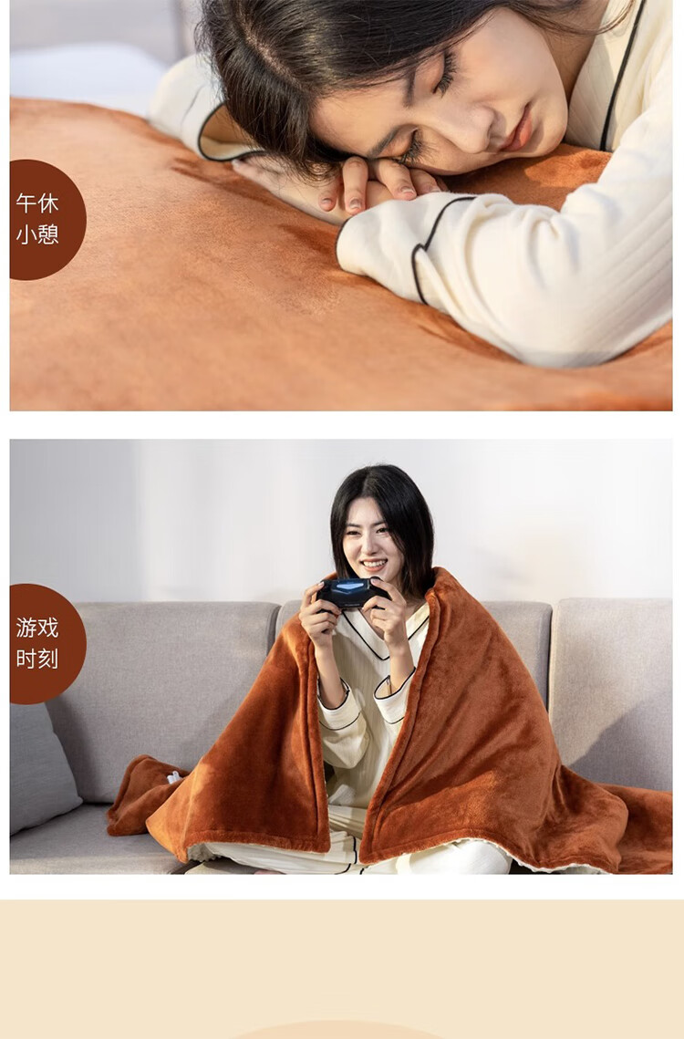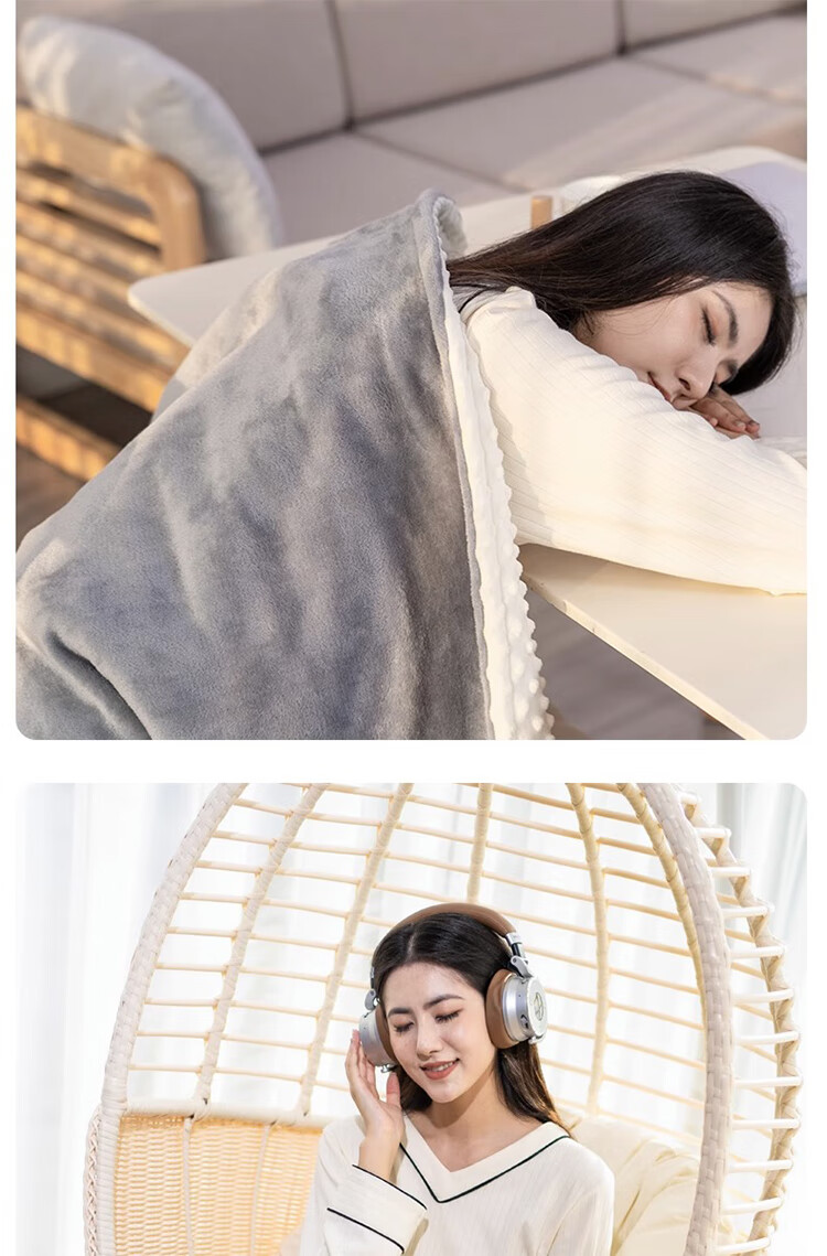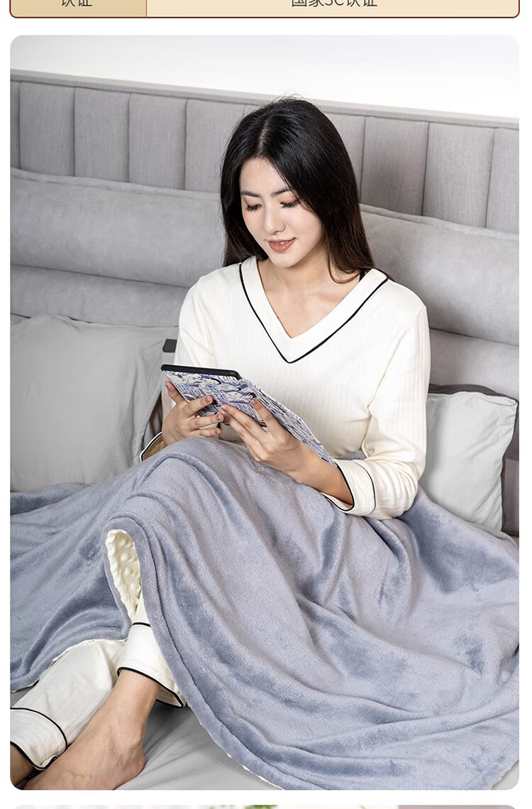 筏芯德国暖身毯电热盖毯盖腿加热披肩家用办公室发热毛毯可水洗电褥子 高级灰/80*55cm【A面法兰绒B面豆豆绒+可水洗】