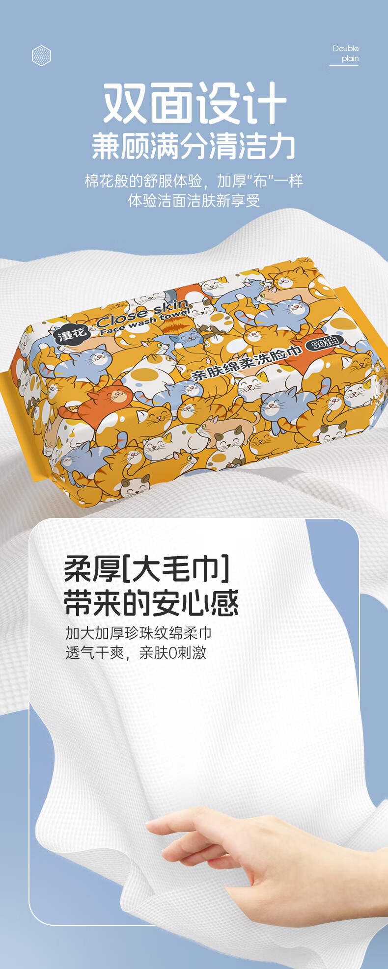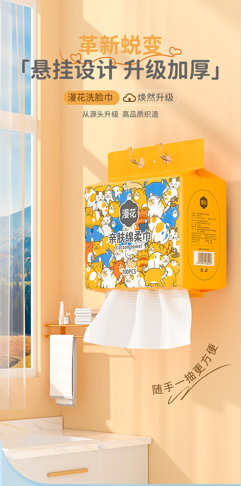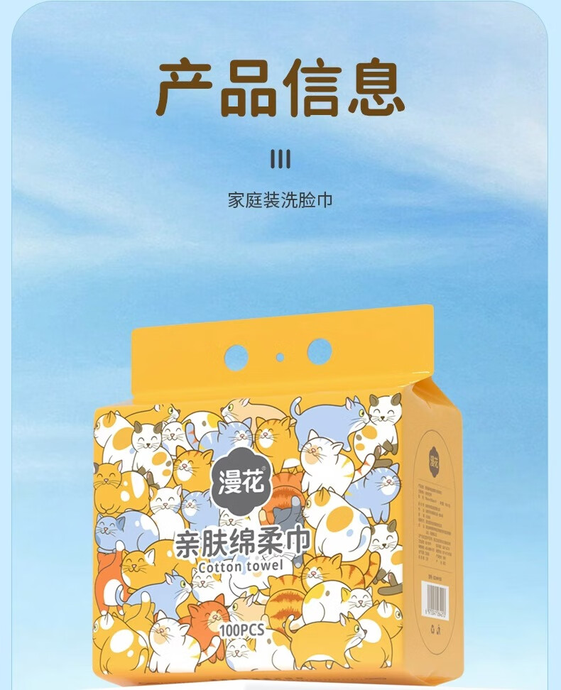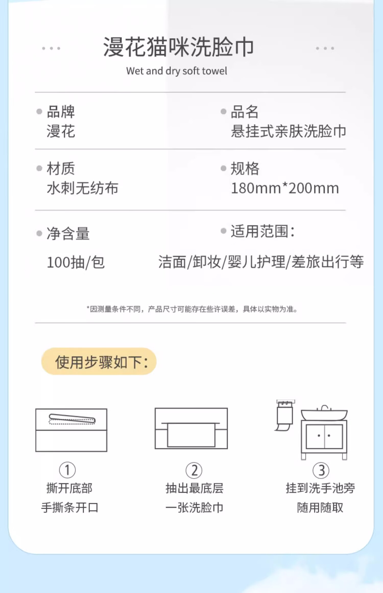 漫花加厚洗脸巾悬挂式大包洁面巾猫咪系列一次性绵柔巾 100抽*3提【加大加厚】