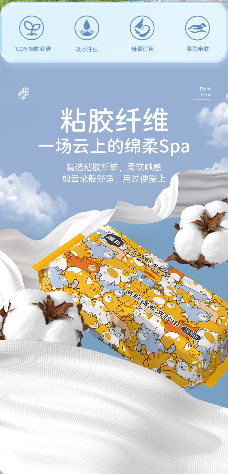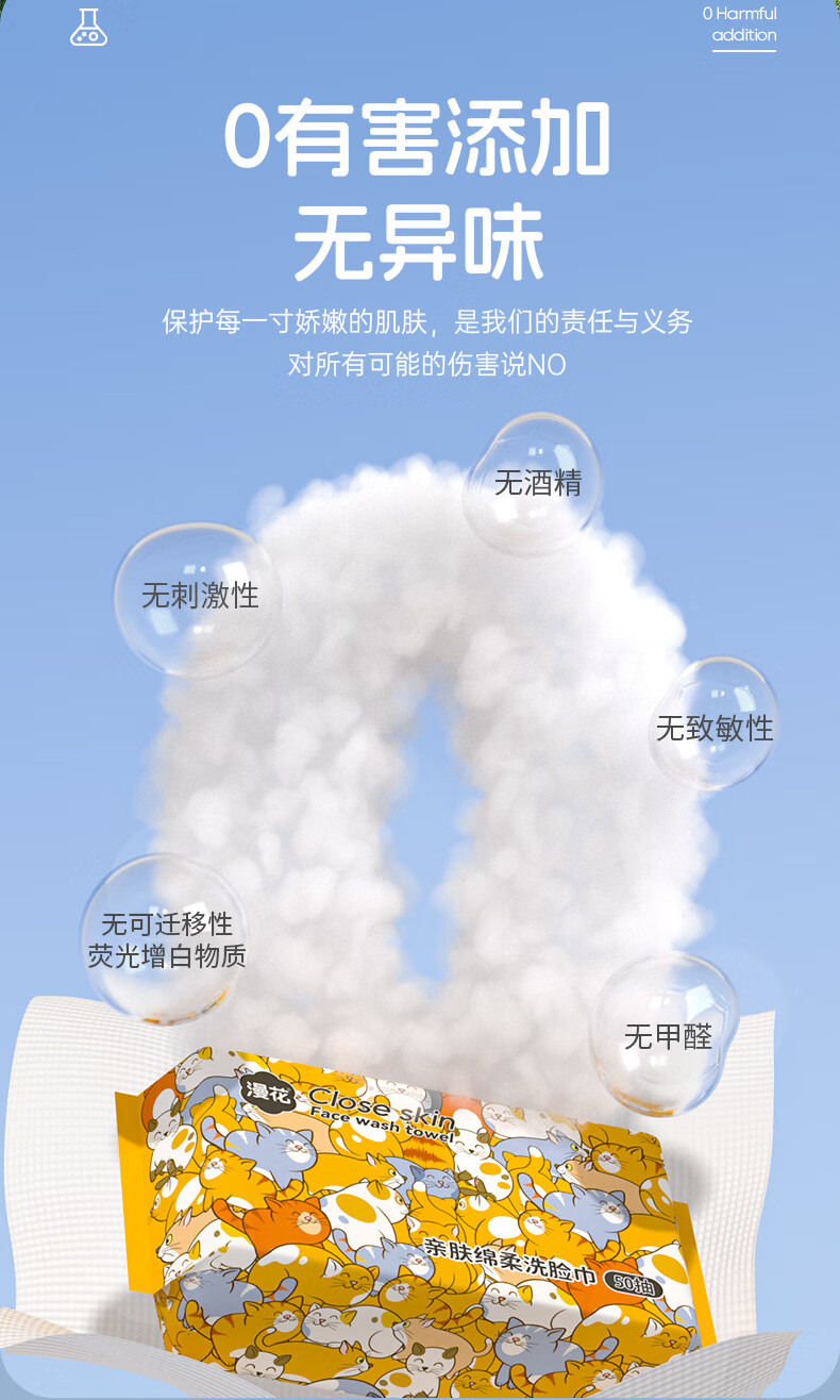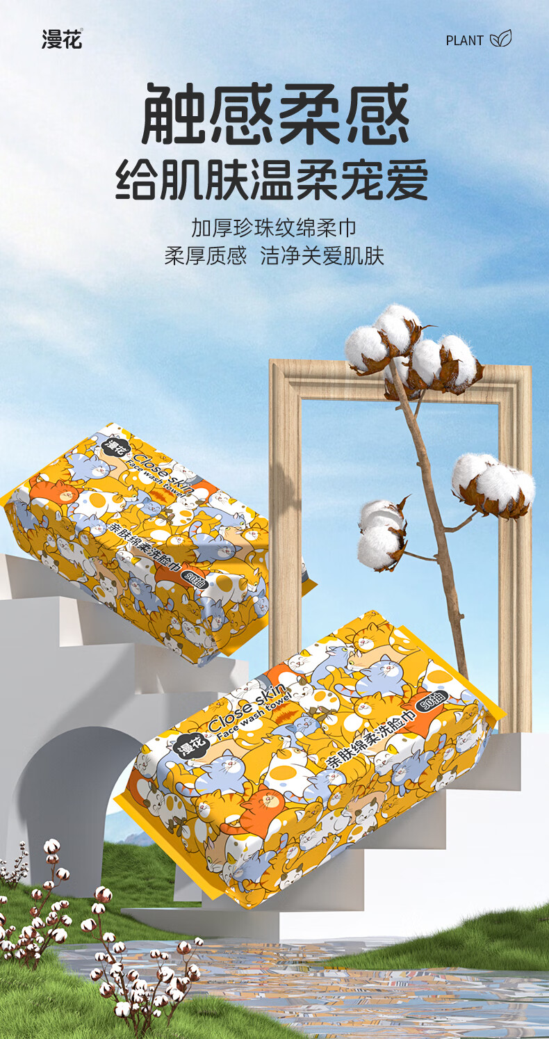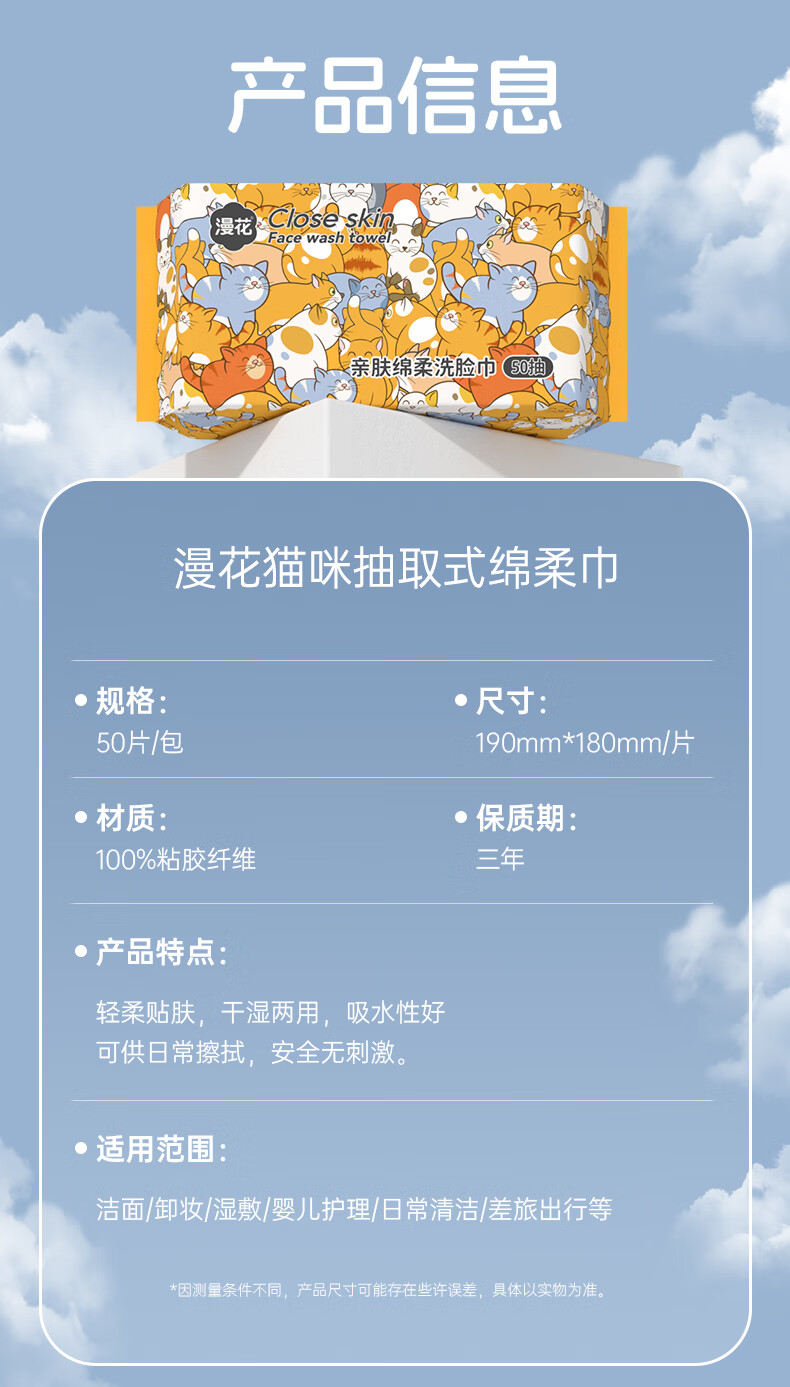 漫花加厚洗脸巾悬挂式大包洁面巾猫咪系列一次性绵柔巾 100抽*3提【加大加厚】
