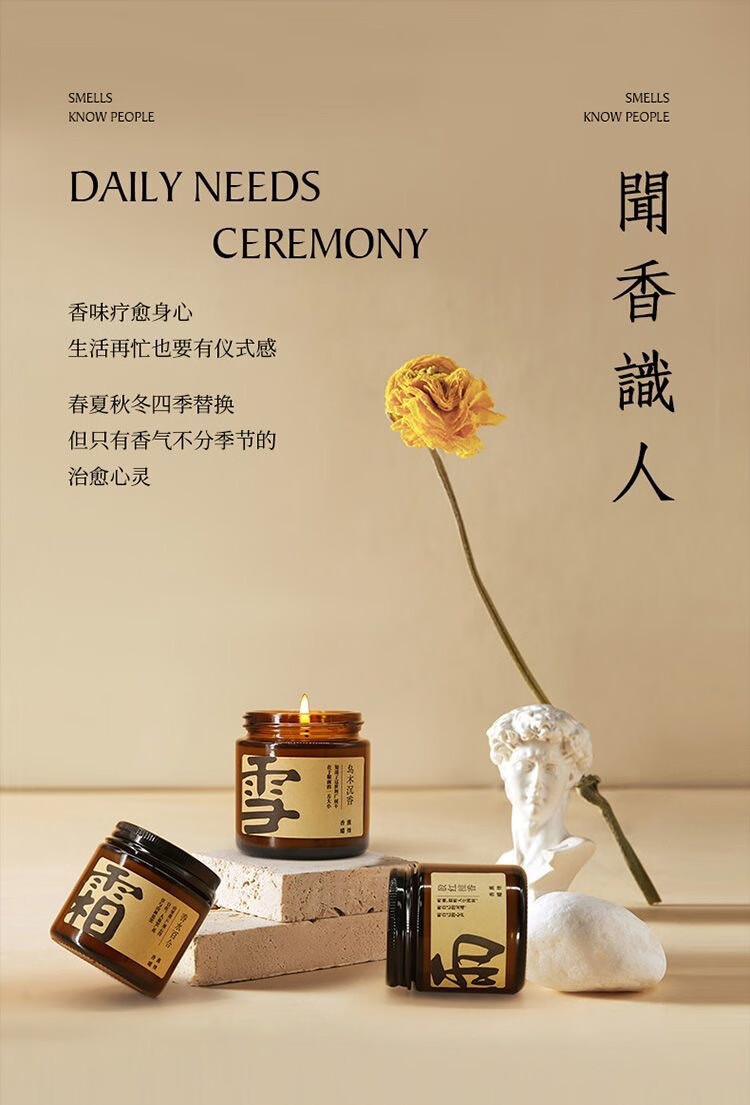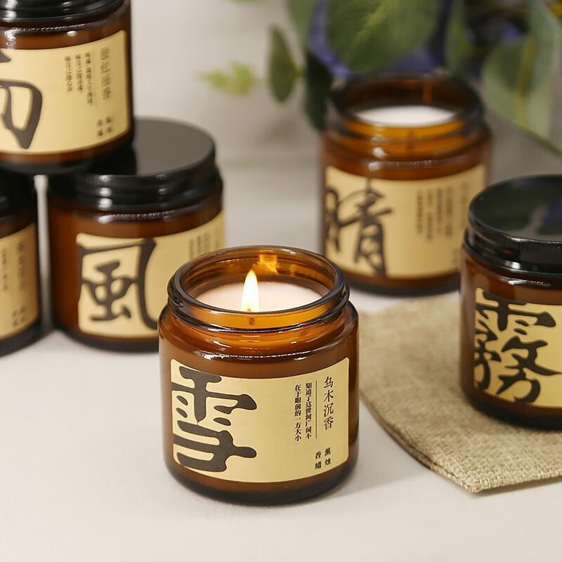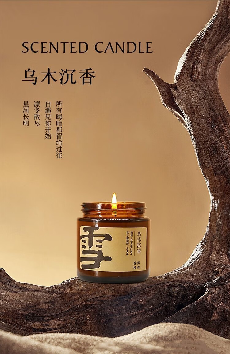 天气款茶色杯香薰蜡烛伴手礼生日节日礼物办公室卧室聚会派对摆件 乌木沉香