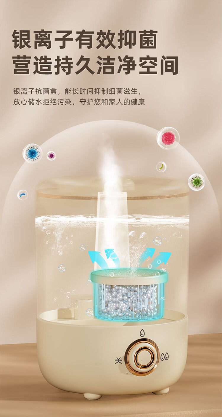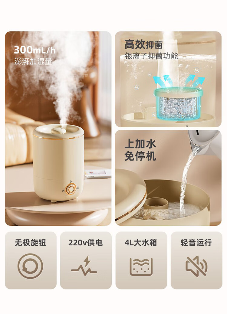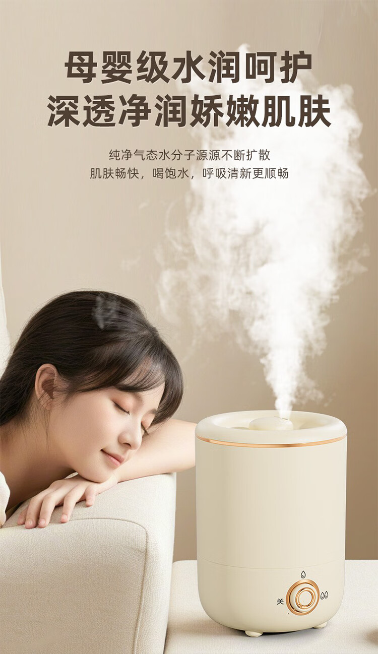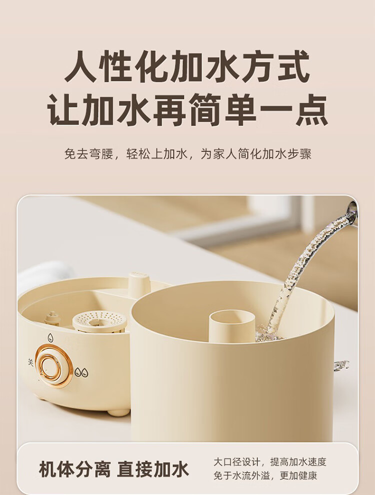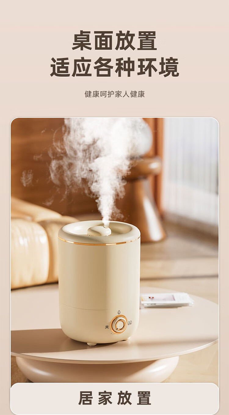 筏芯德国新款空气加湿器孕妇婴儿家用客厅大喷雾大容量办公室喷雾器 客厅加湿器-杏色-直插款