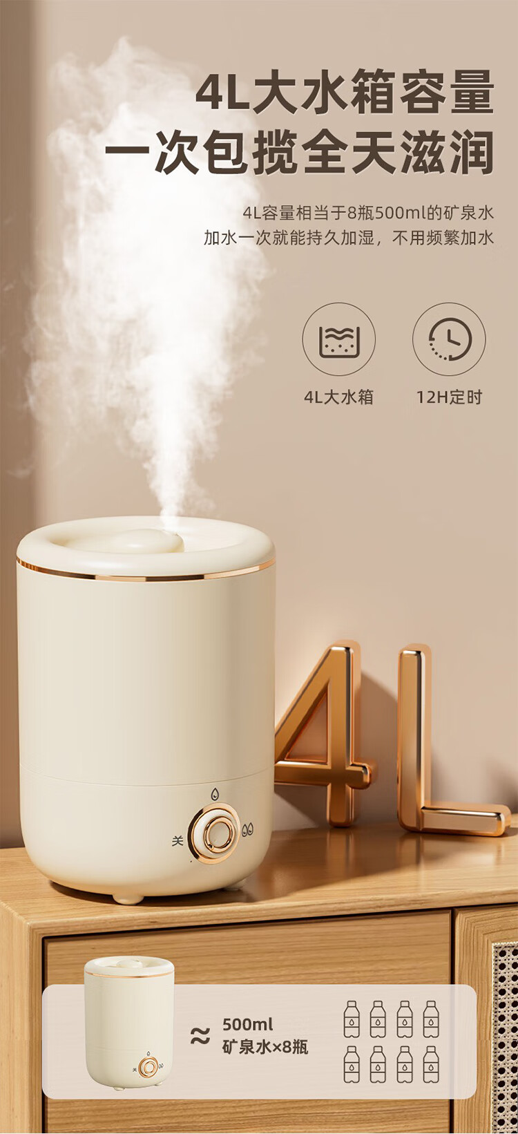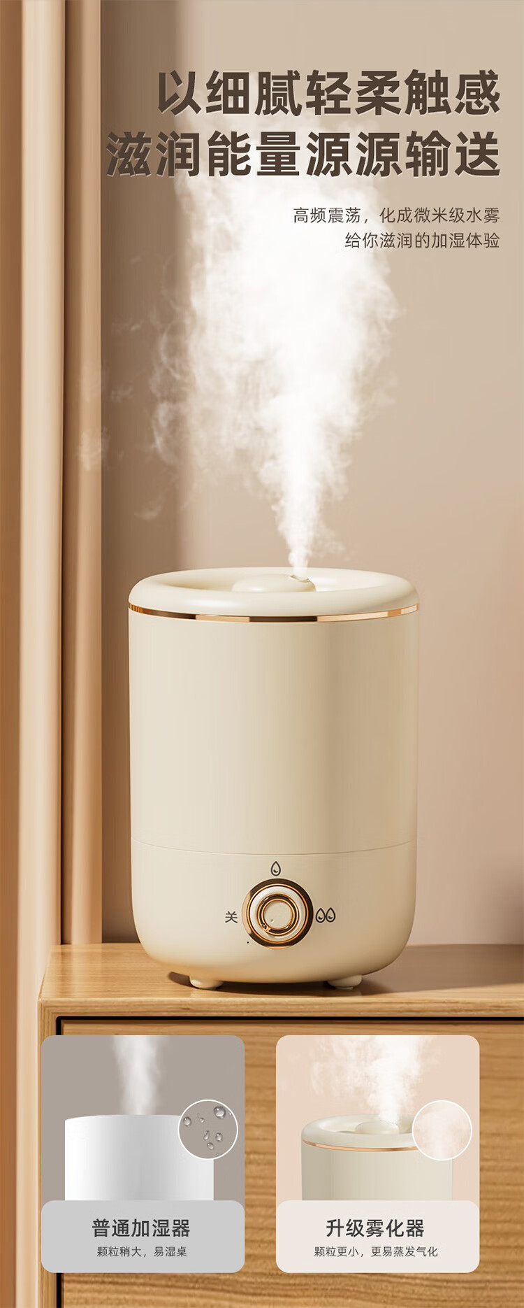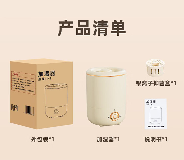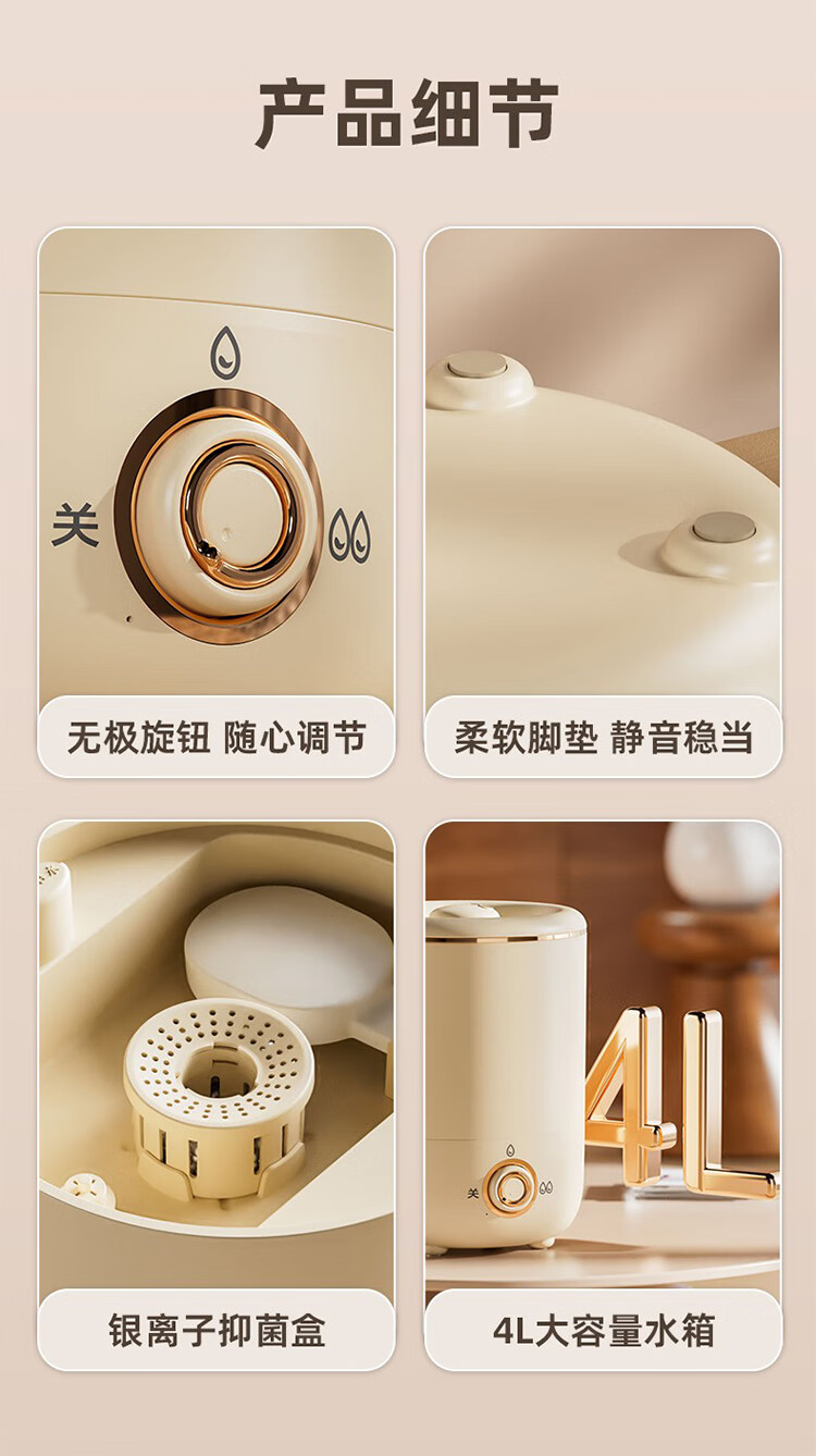 筏芯德国新款空气加湿器孕妇婴儿家用客厅大喷雾大容量办公室喷雾器 客厅加湿器-杏色-直插款
