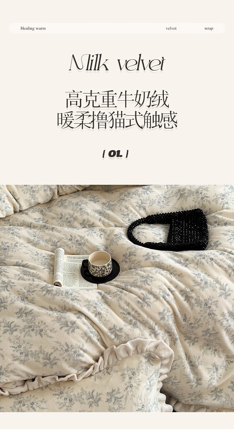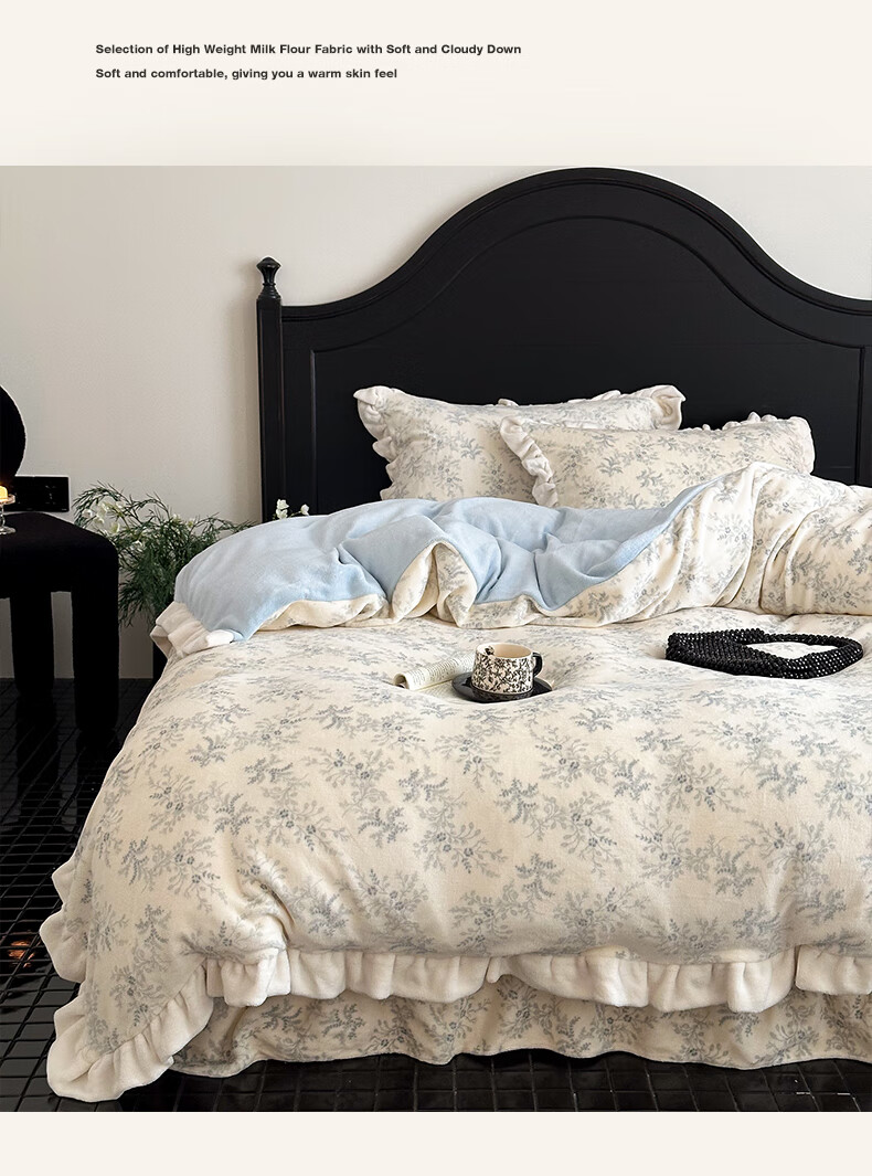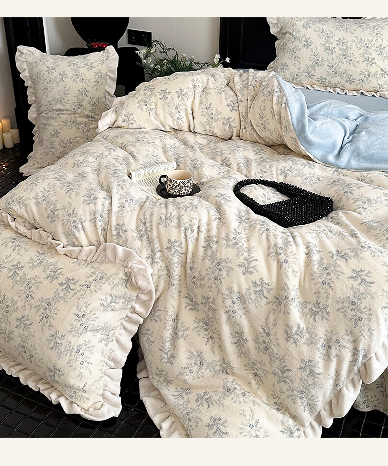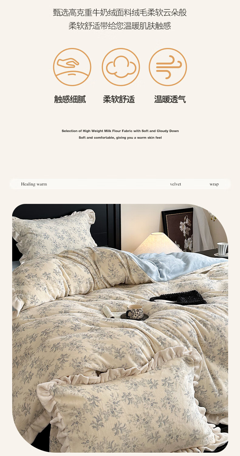 苏萱法式牛奶绒床上四件套冬季花边珊瑚绒加厚被套双面加绒床单人床品 查理德 2.0m 床单款 四件套-被套220x240cm