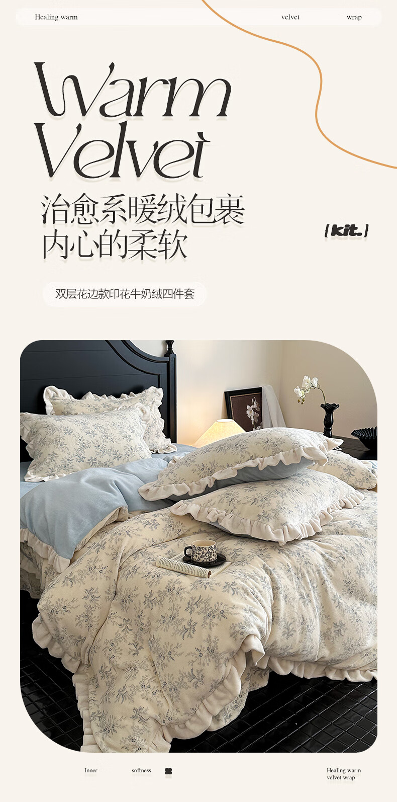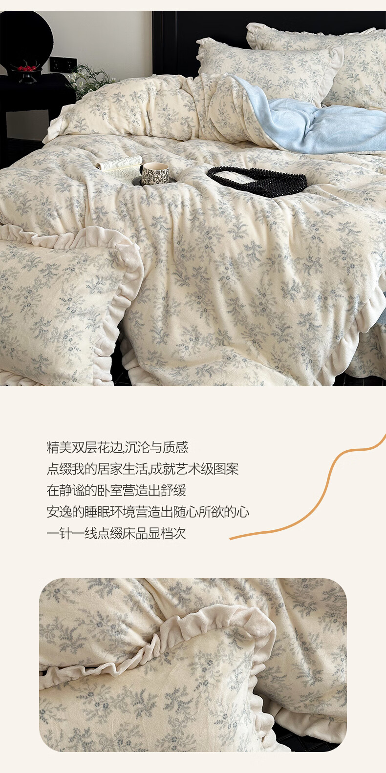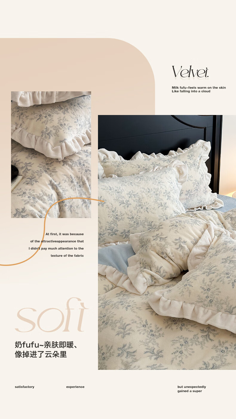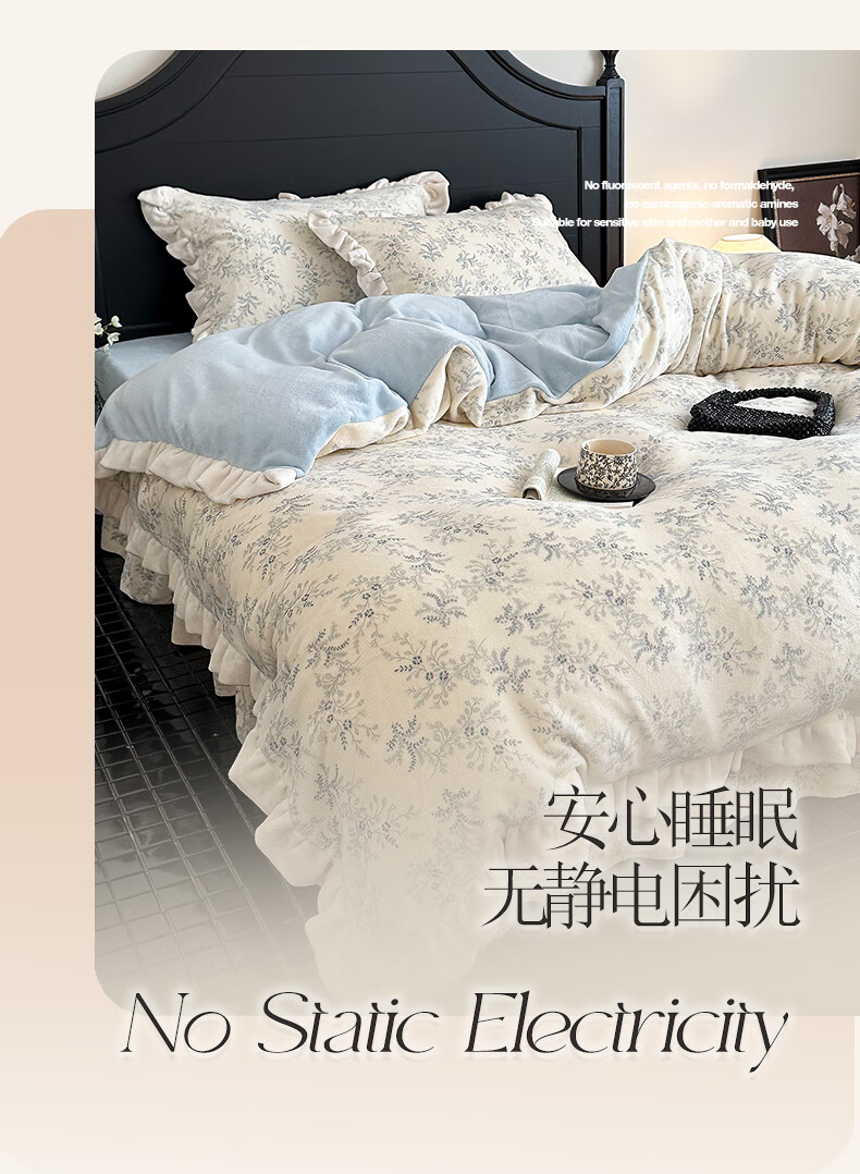 苏萱法式牛奶绒床上四件套冬季花边珊瑚绒加厚被套双面加绒床单人床品 查理德 2.0m 床单款 四件套-被套220x240cm