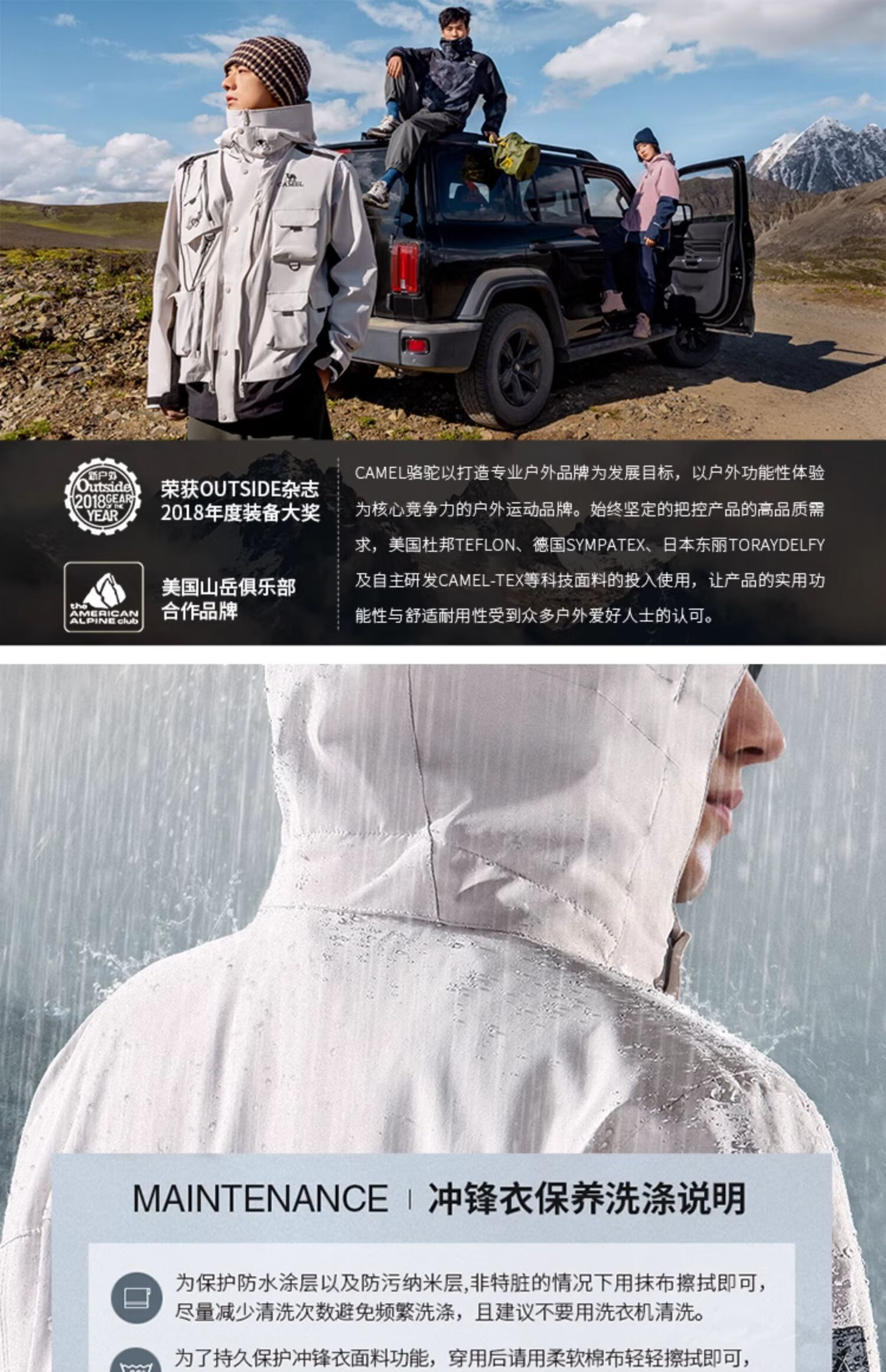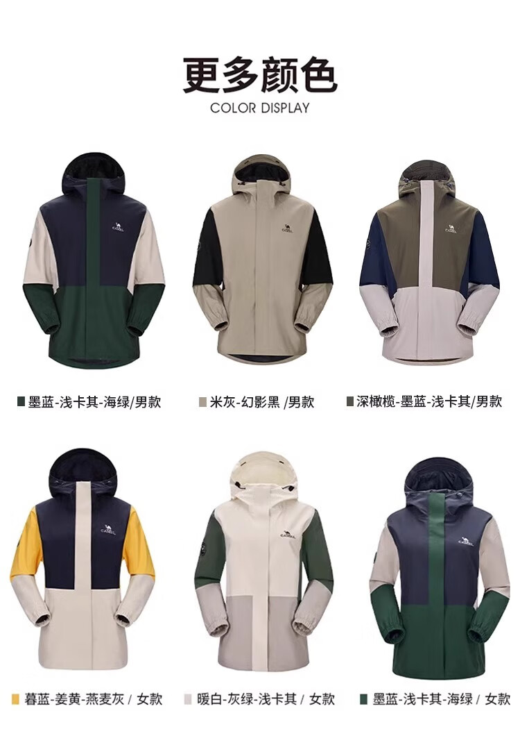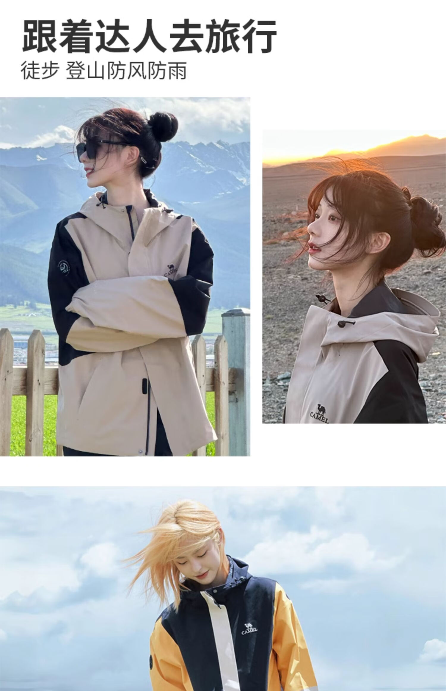 骆驼(CAMEL)熊猫三防冲锋衣男女单层春秋外套新款防水防风户外进藏登山服