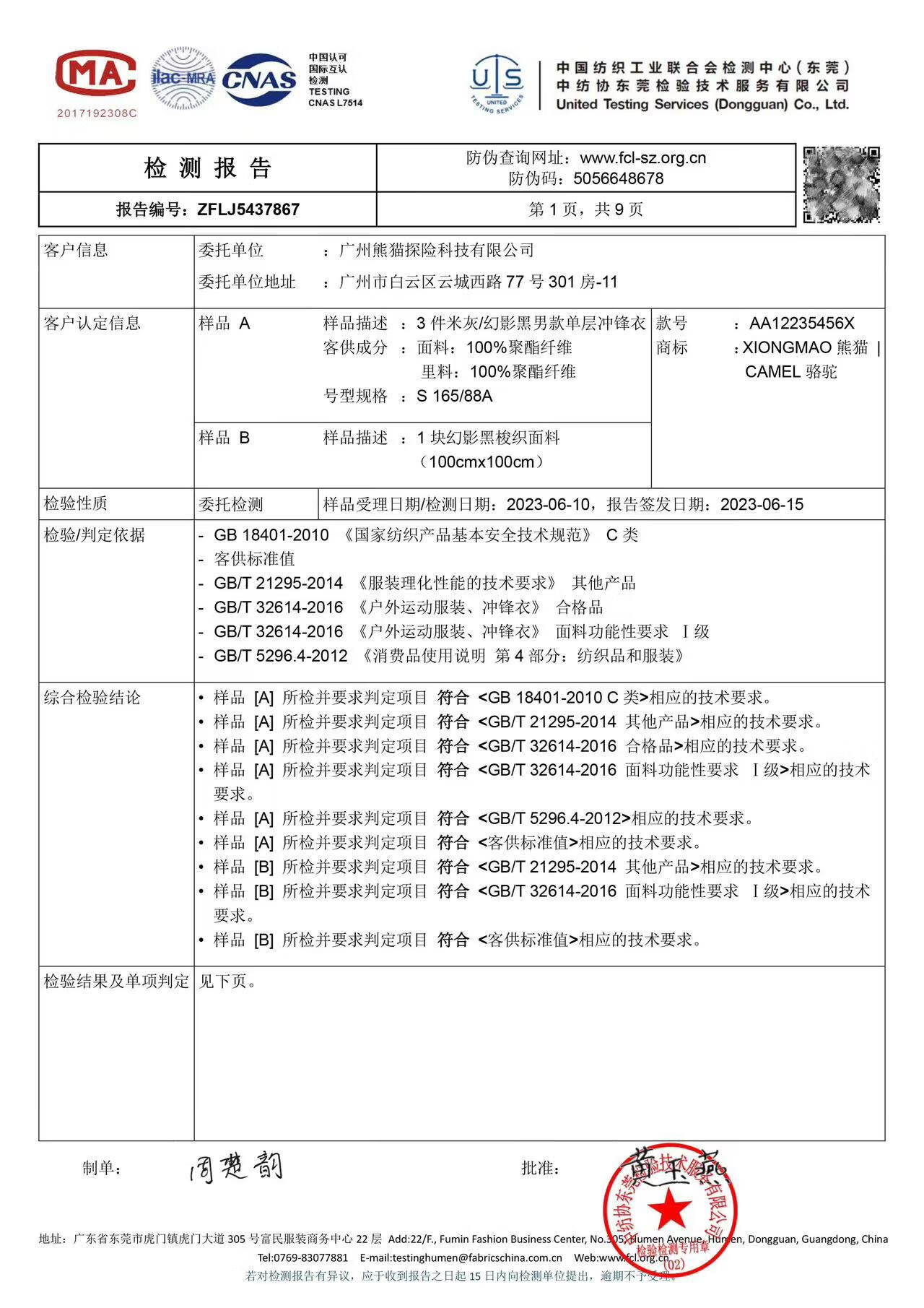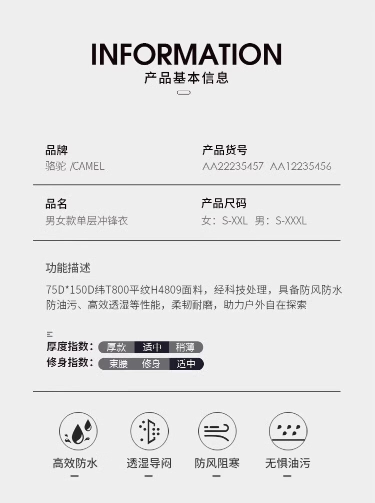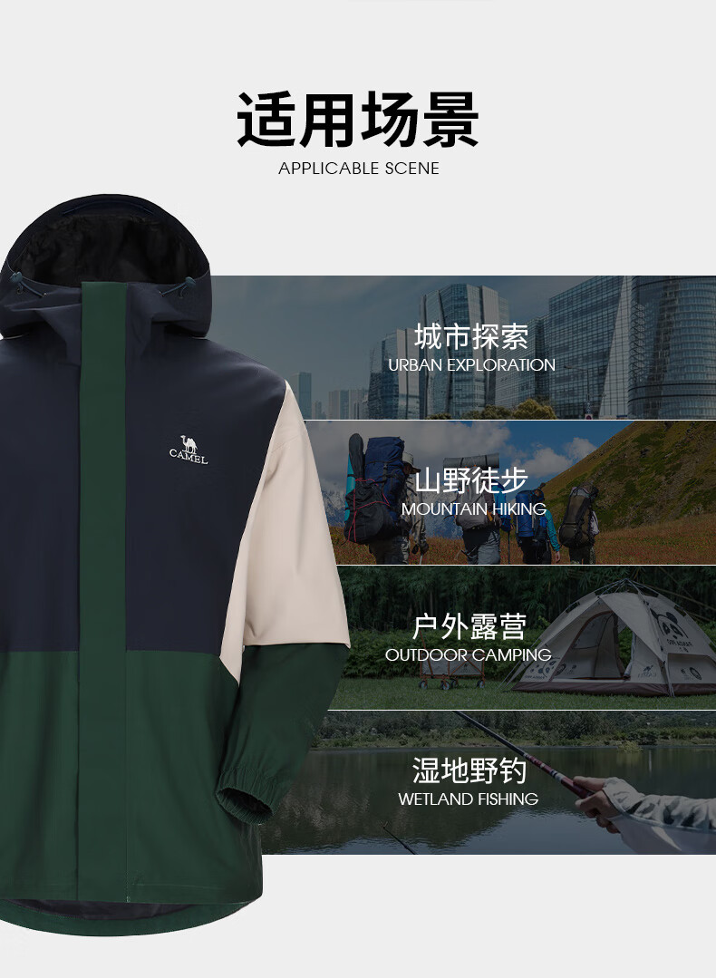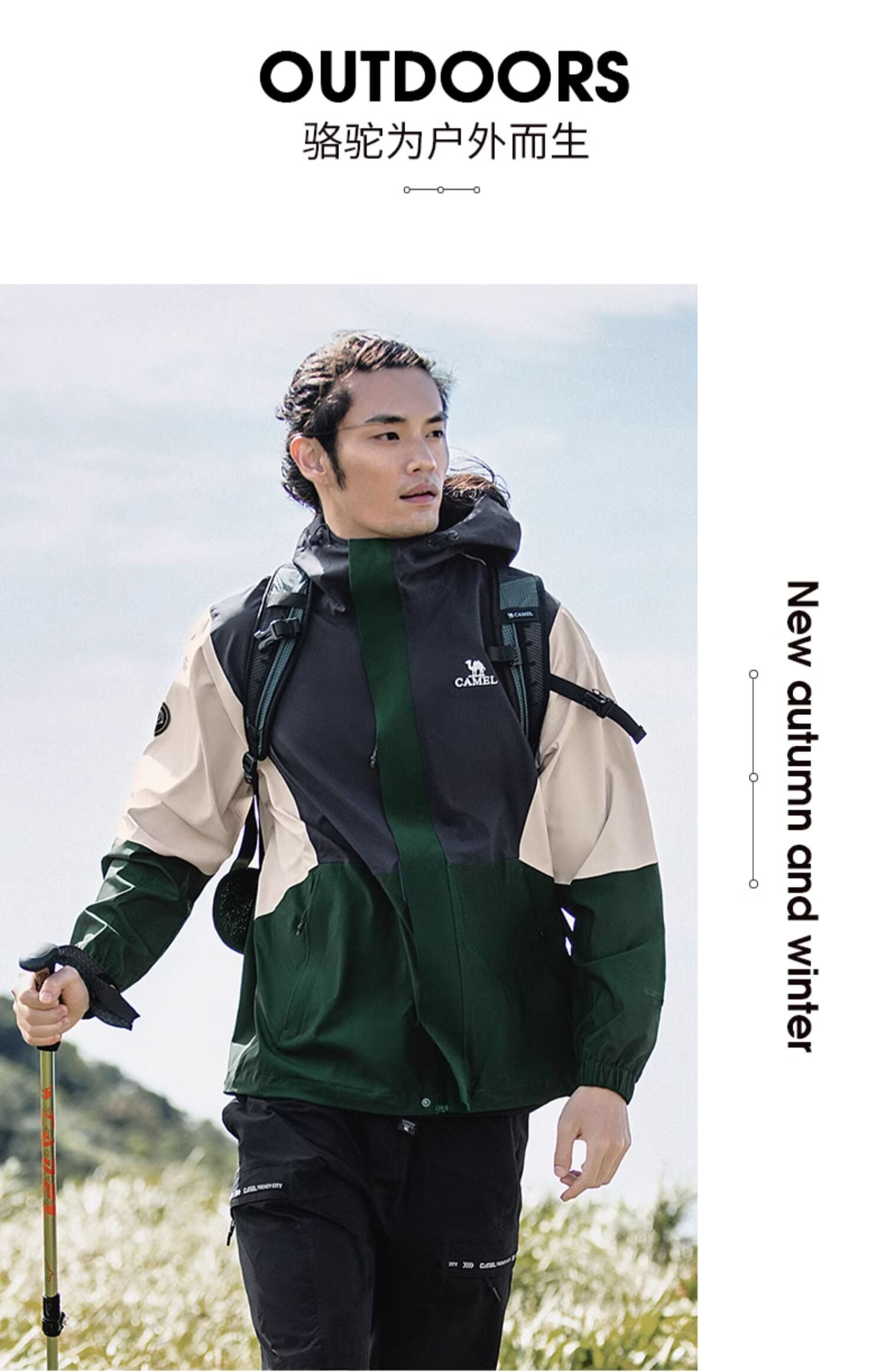 骆驼(CAMEL)熊猫三防冲锋衣男女单层春秋外套新款防水防风户外进藏登山服