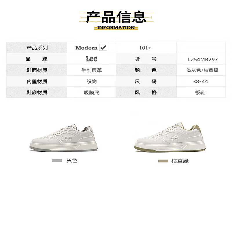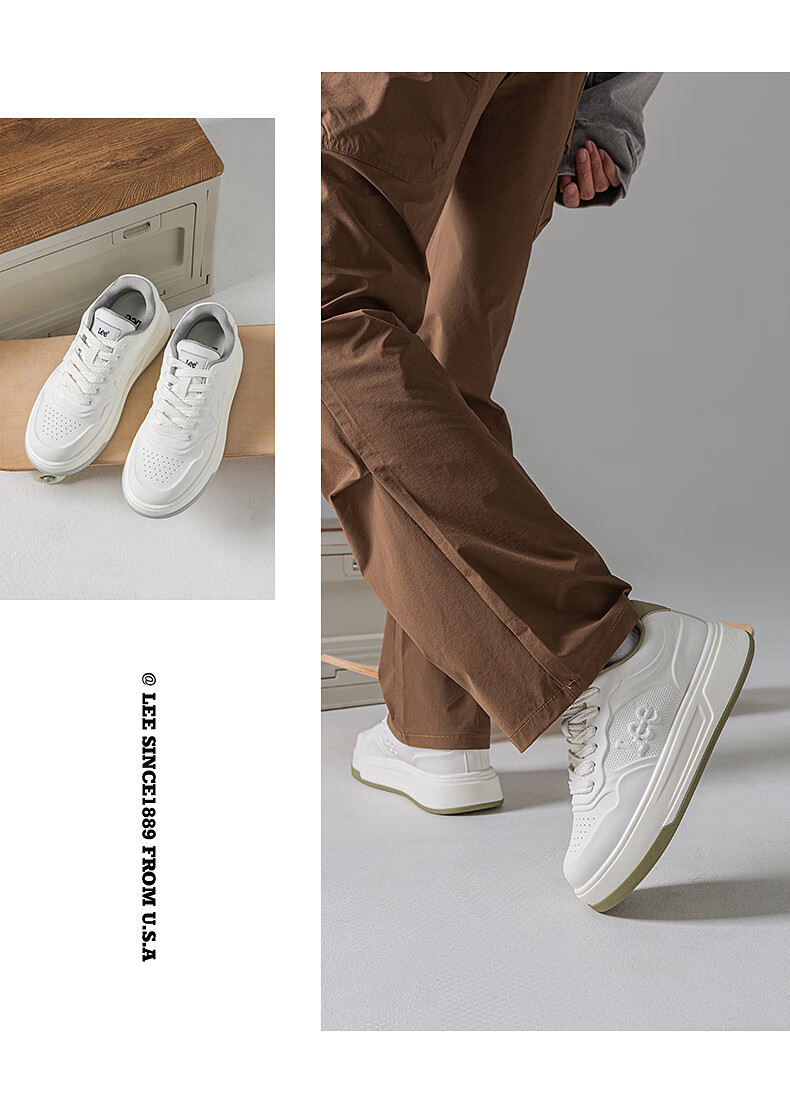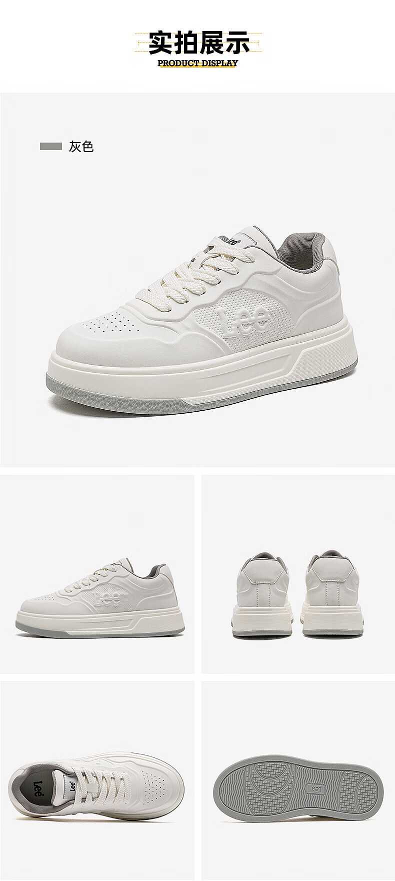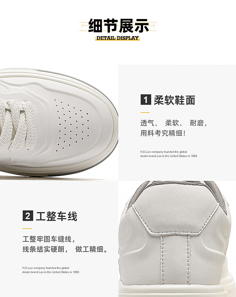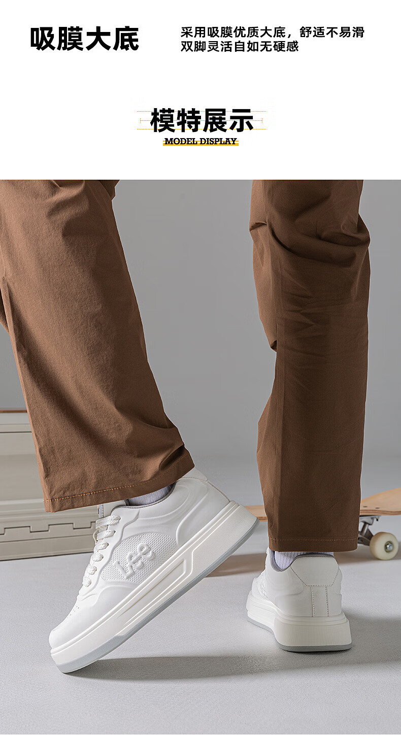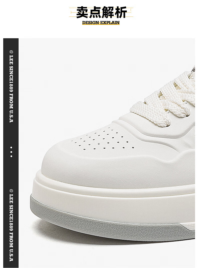 Lee男鞋秋季新款休闲鞋男厚底增高小白鞋时尚运动板鞋潮流舒适鞋子男 灰色 42 【偏大/请拍小一码】