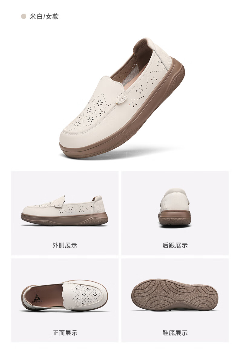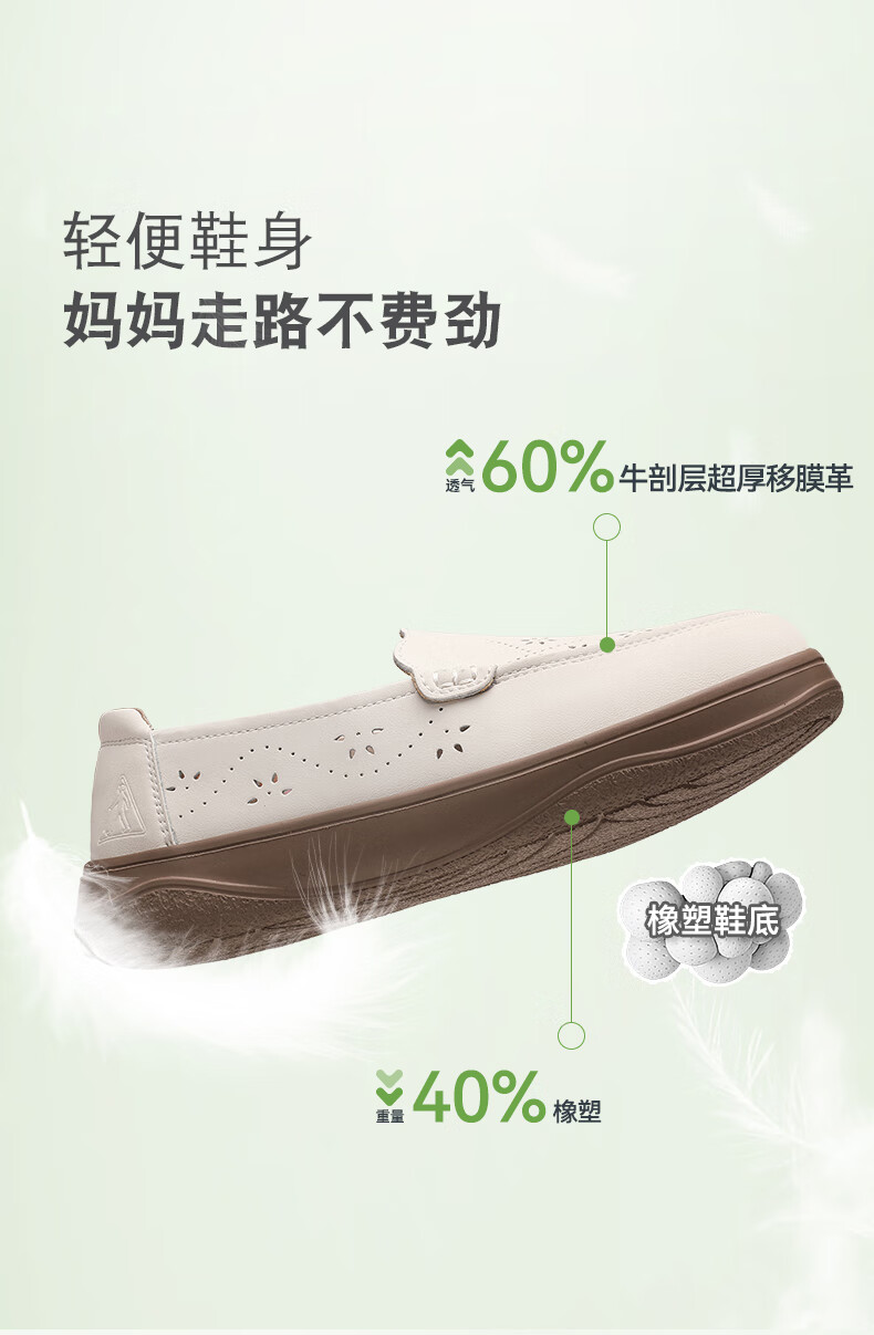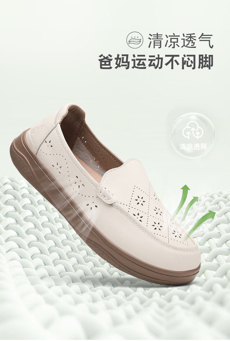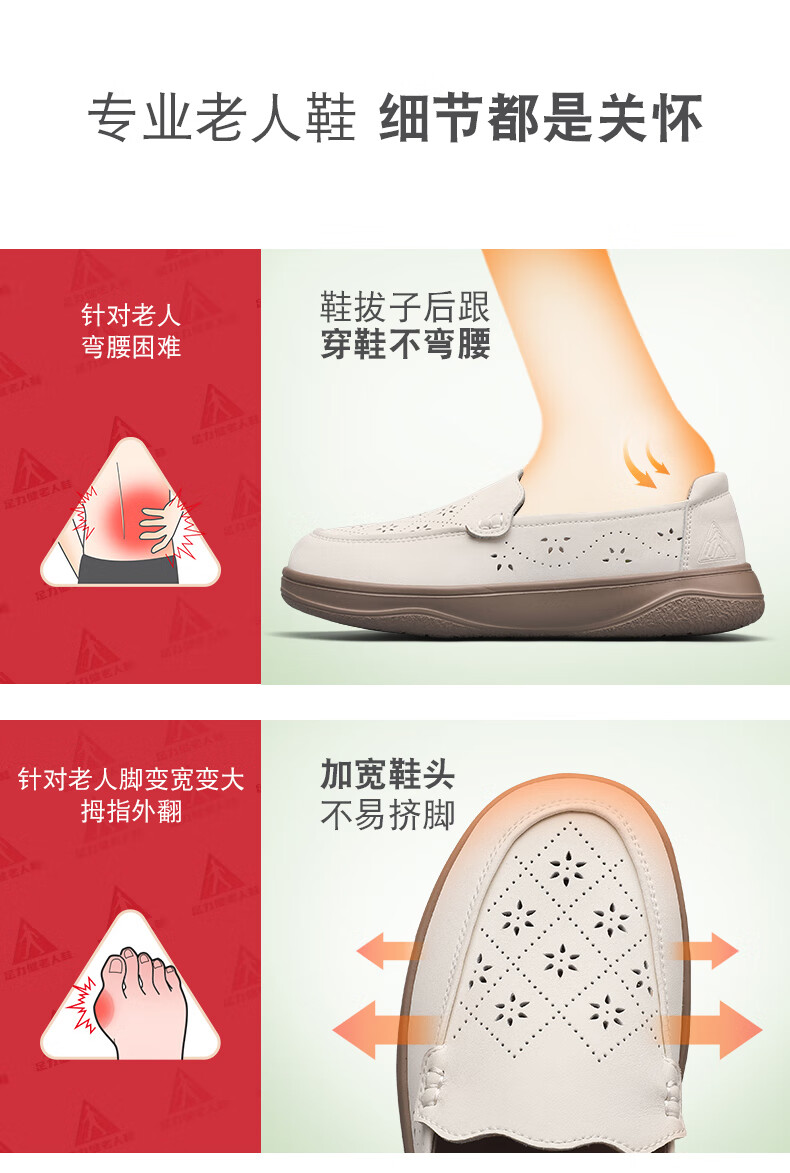 足力健正品老人鞋夏季新款透气皮鞋女士便捷一脚蹬软底软面时尚妈妈鞋 黑色 35