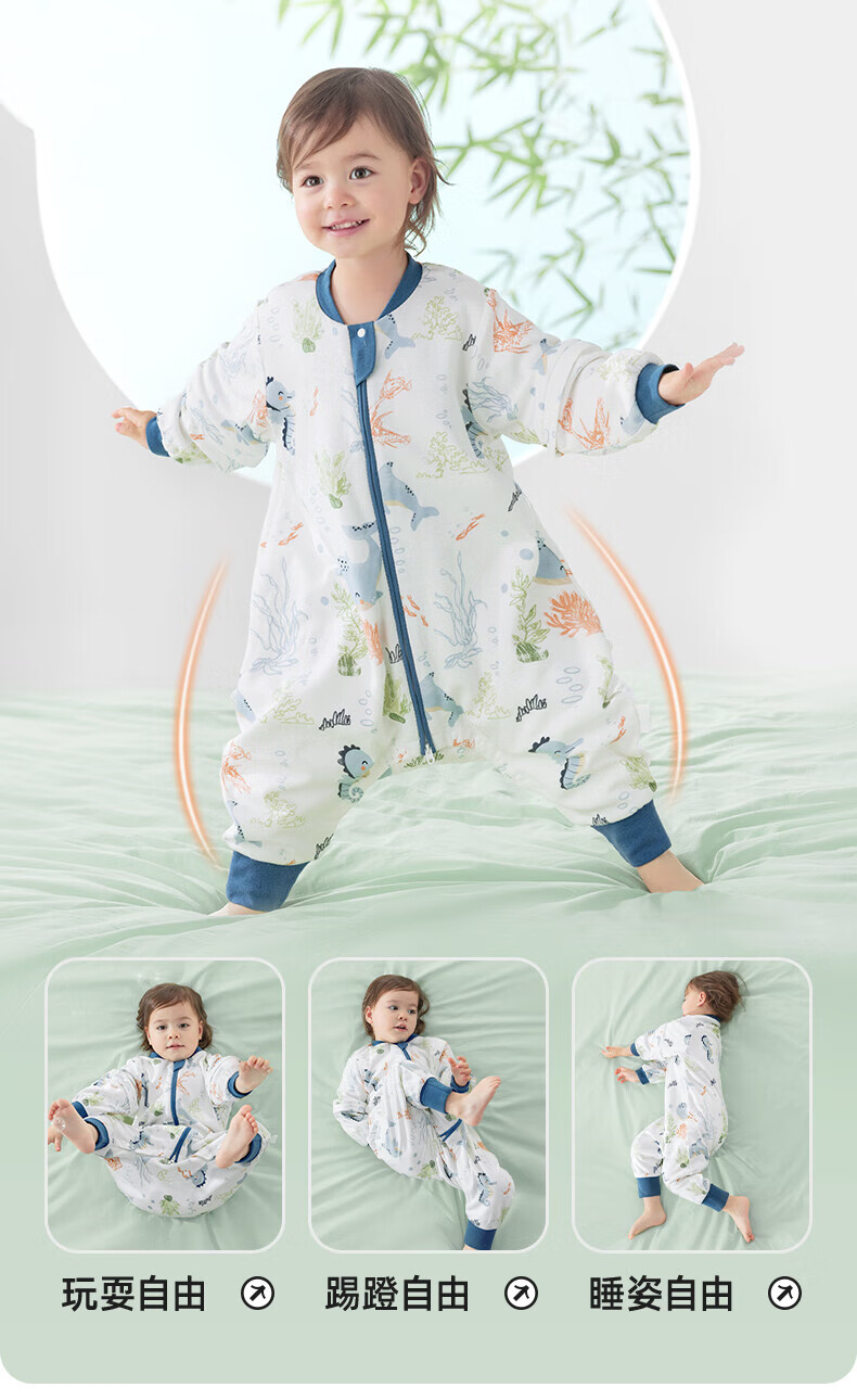 贝肽斯肽柔婴儿睡袋春秋冬新生儿童防踢被分腿感温标识春夏季防惊跳包被 春秋双层-感温(20-26℃)飞驰 M码 80-95cm(建议1.5-2.5岁)