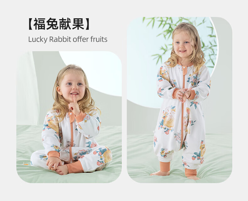 欧孕(OUYUN)宝宝纯棉睡袋婴儿睡衣春秋男女孩连体衣儿童防踢被家居服四季通用 蘑菇小兔(撸猫般柔软亲肤) 110cm 【建议身高:110-120cm】