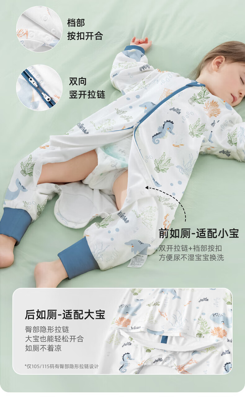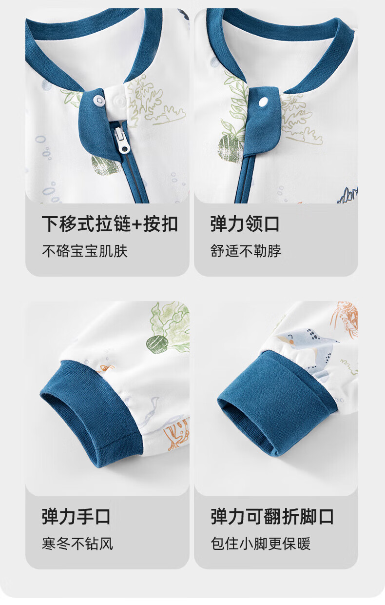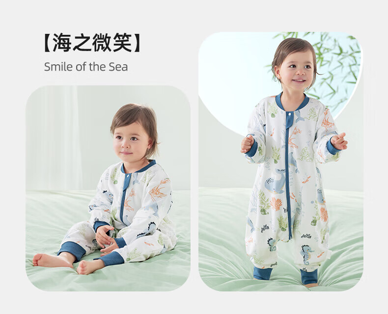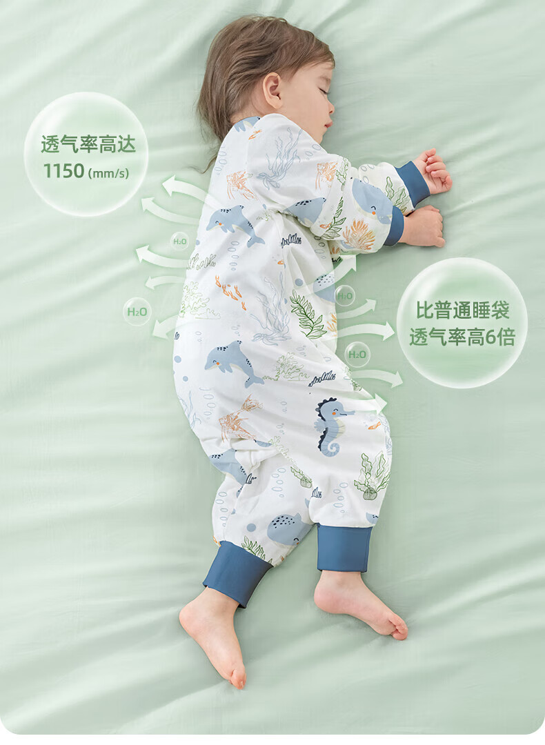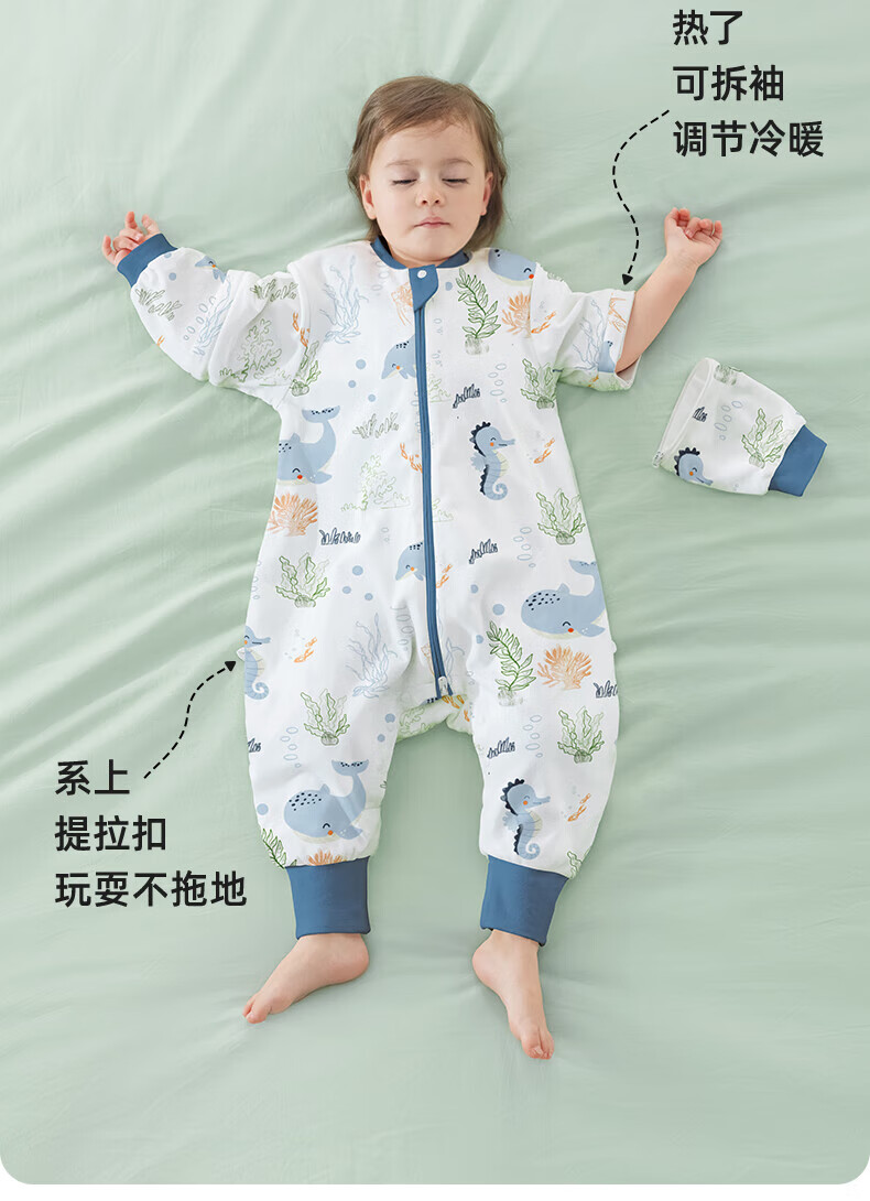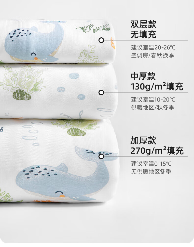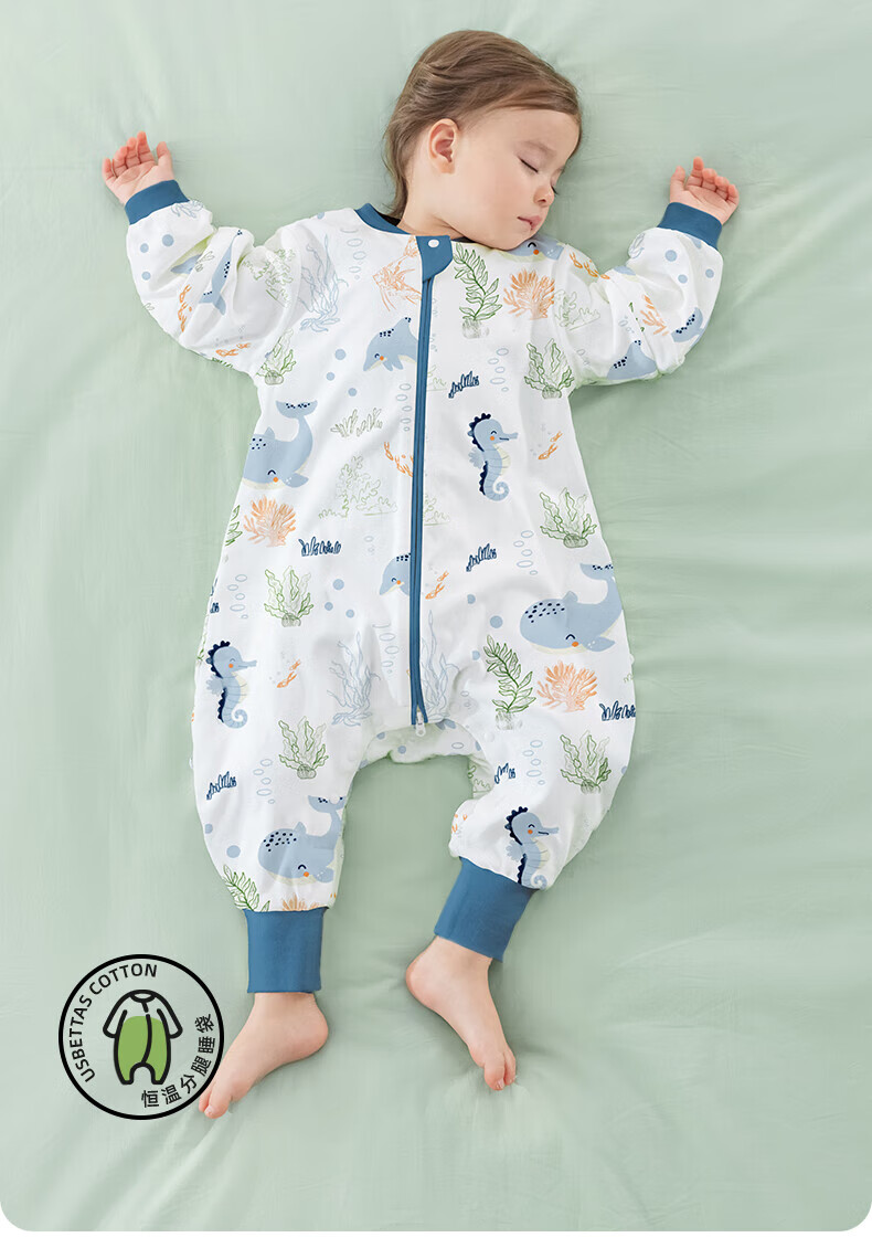 贝肽斯睡袋婴儿春秋季儿童分腿保暖防惊跳睡衣新生儿宝宝恒温睡袋防踢被 海鲸春秋双层-感温(20-26℃) S码 60-85cm(建议6-18个月)