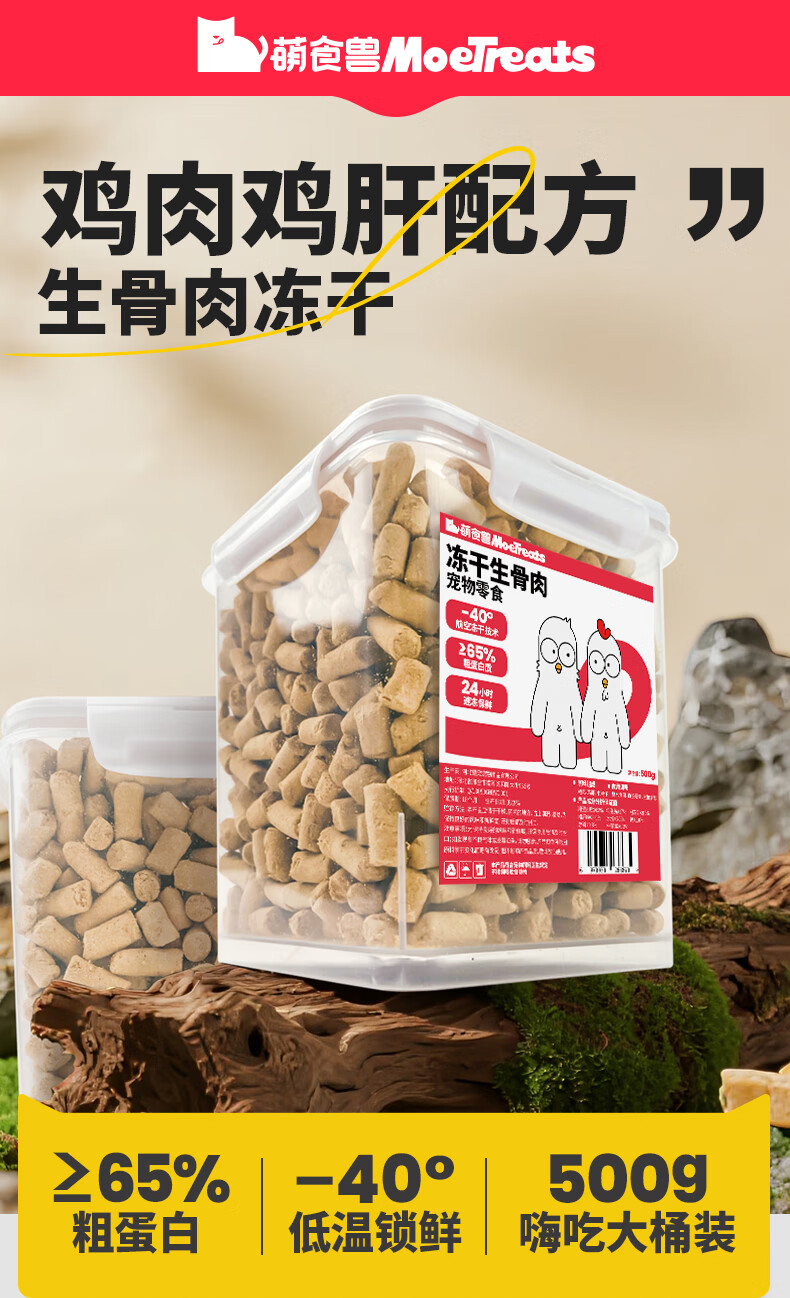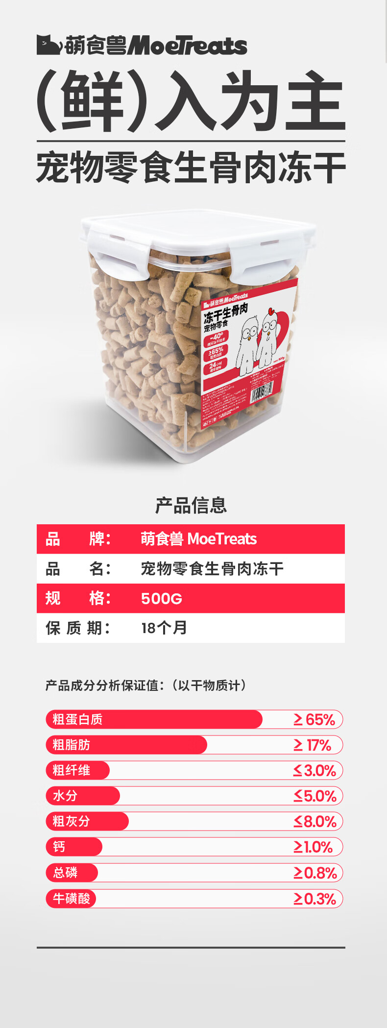萌食兽宠物零食成幼猫咪猫零食增肥发腮生骨肉条冻干500g幼犬狗狗零食 【增肥补钙】生骨肉条冻干500g