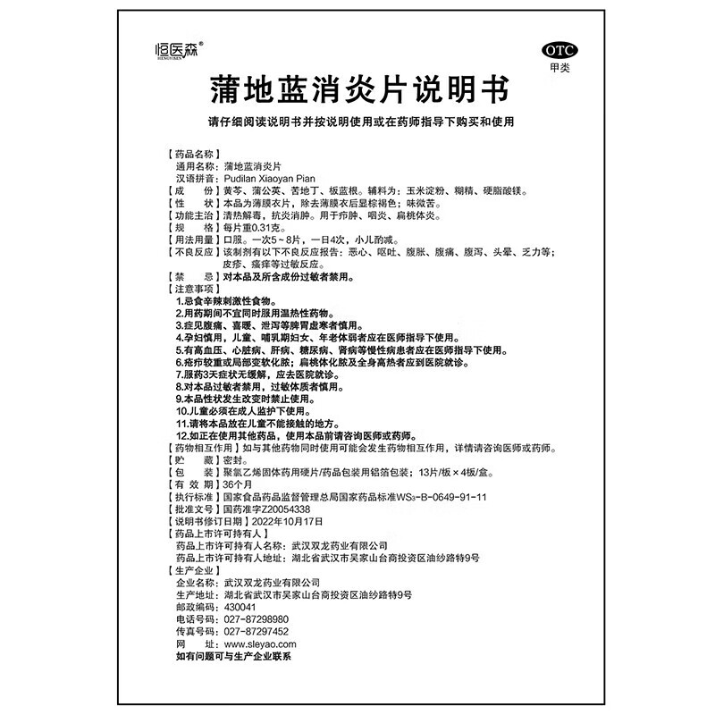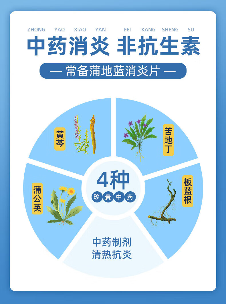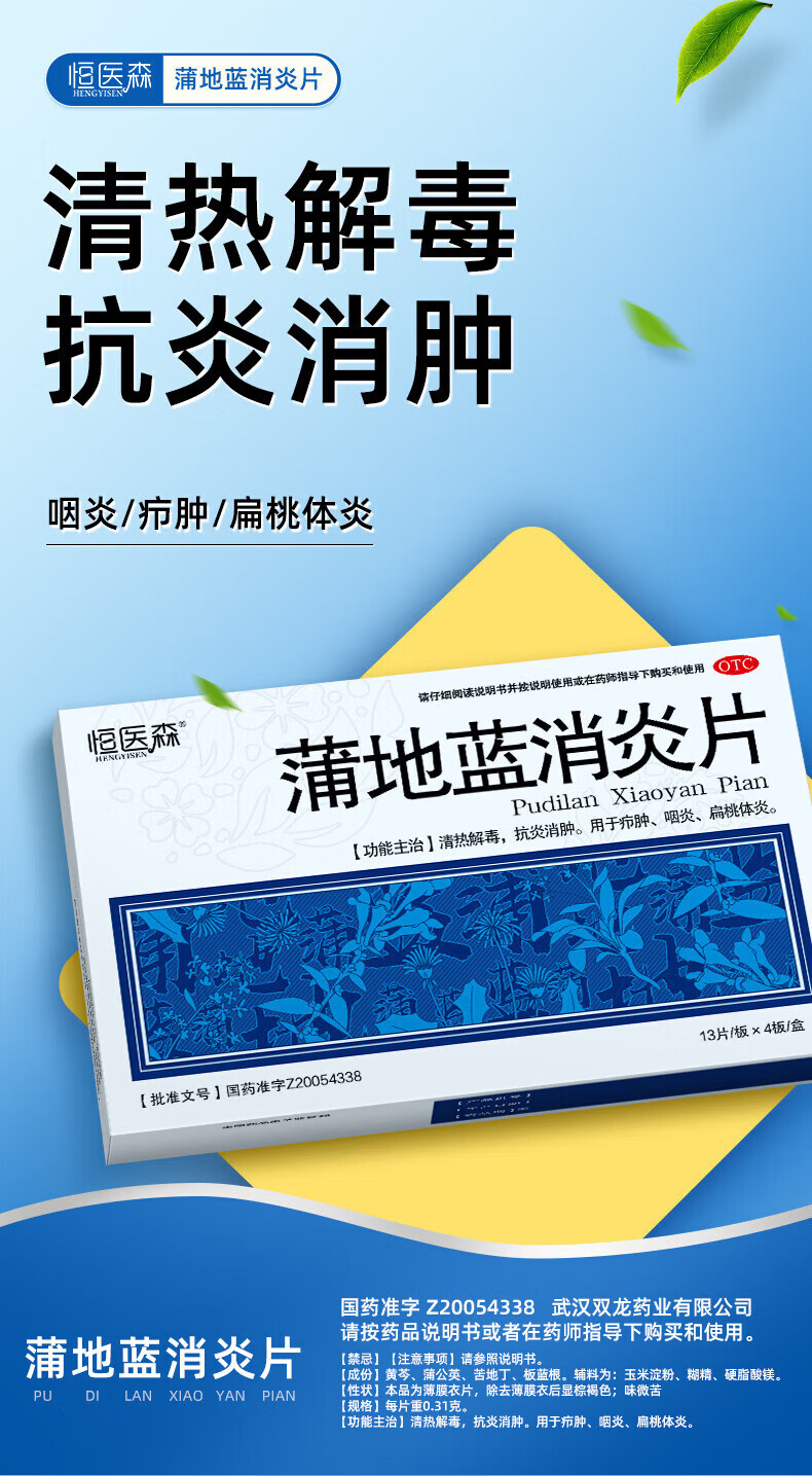蒲地蓝消炎片 52片/盒 清热解毒下火 消炎去肿 感冒药用于喉咙肿痛 咽炎 扁桃体炎 疖肿 布洛芬胶囊*1盒+蒲地蓝消炎片*1盒【镇痛消炎】