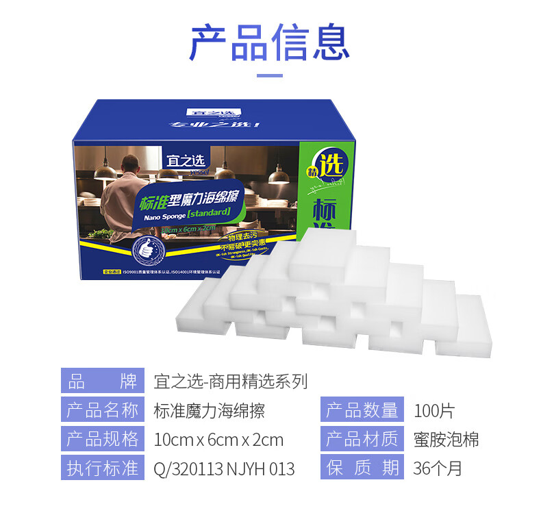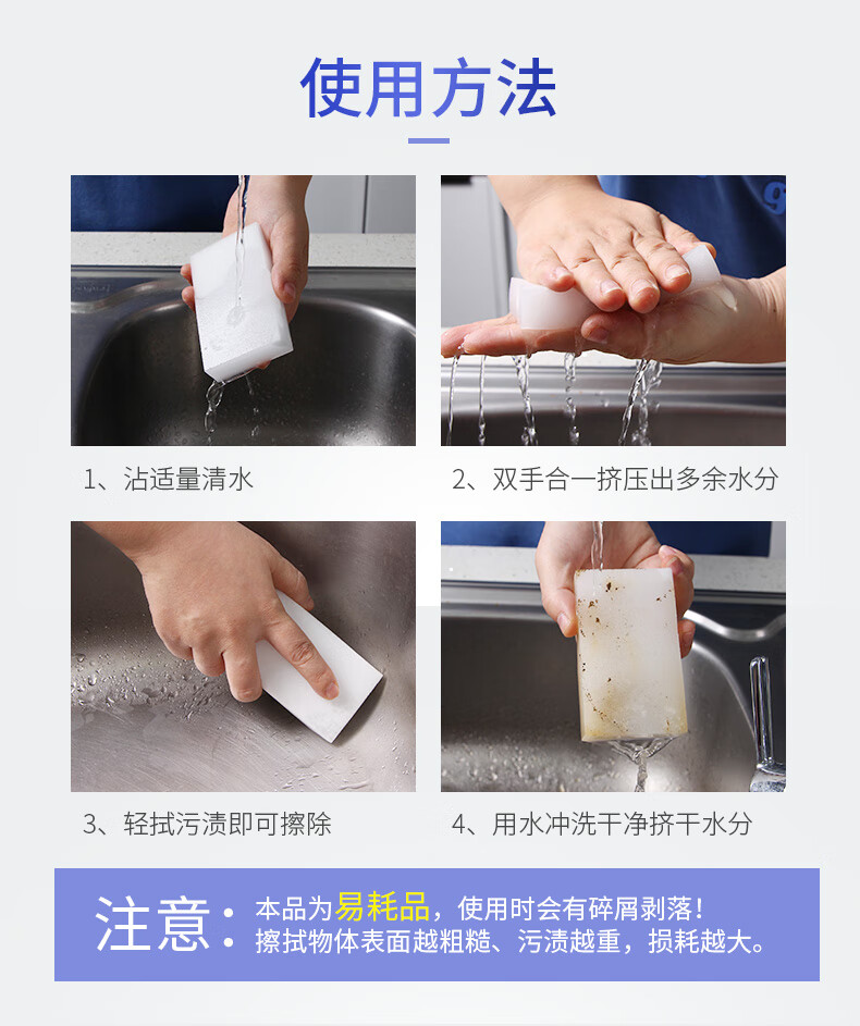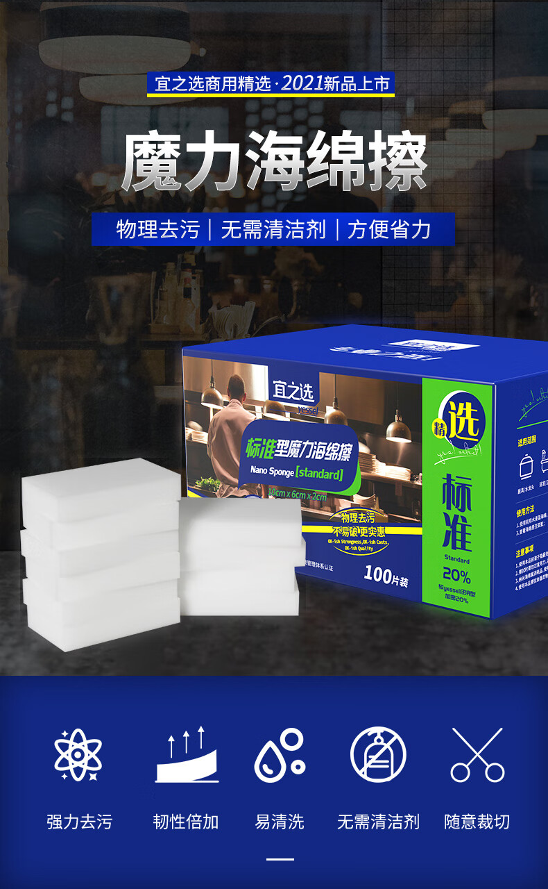 宜之选纳米清洁海绵魔术擦100片厨房家具茶垢黄斑小白鞋清洁去污魔力擦