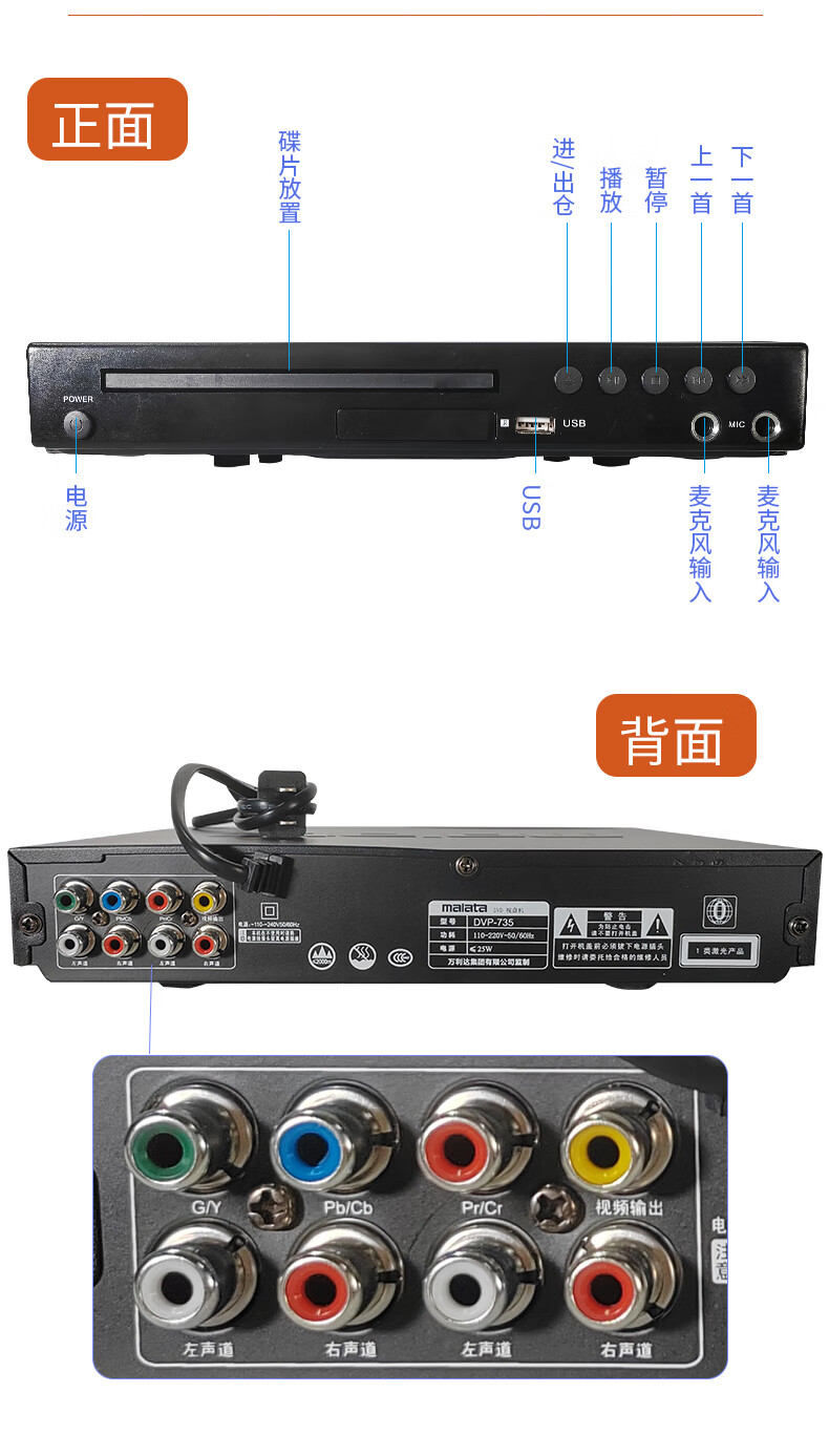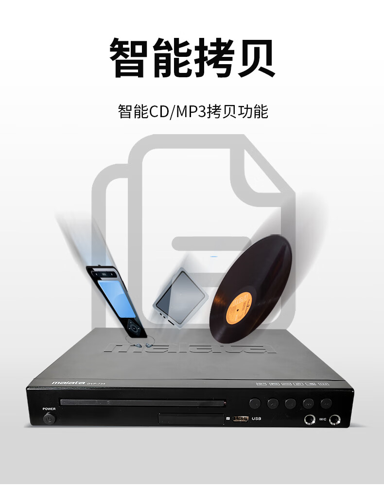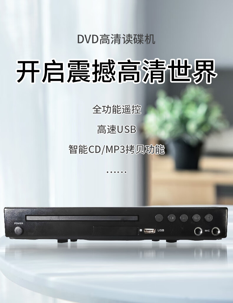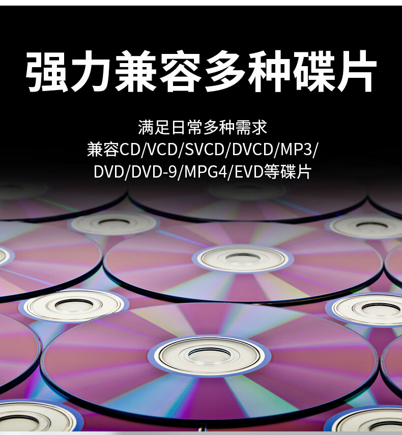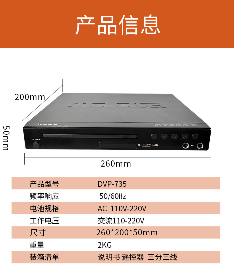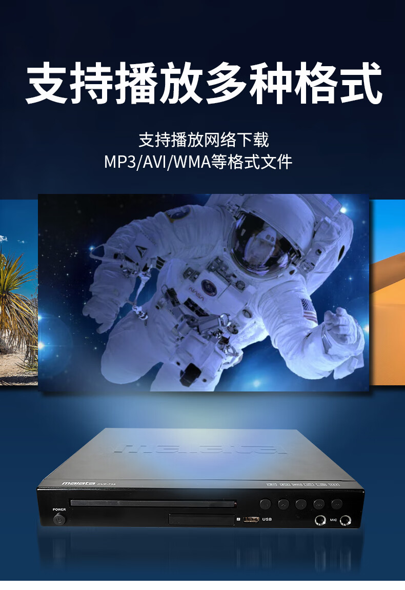 万利达 DVD播放机 光盘播放机CD机VCD DVD光驱播放器 影碟机 USB音乐 黑色DVP-735赠送三色莲花线