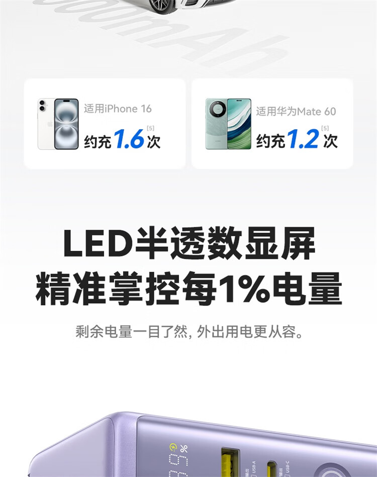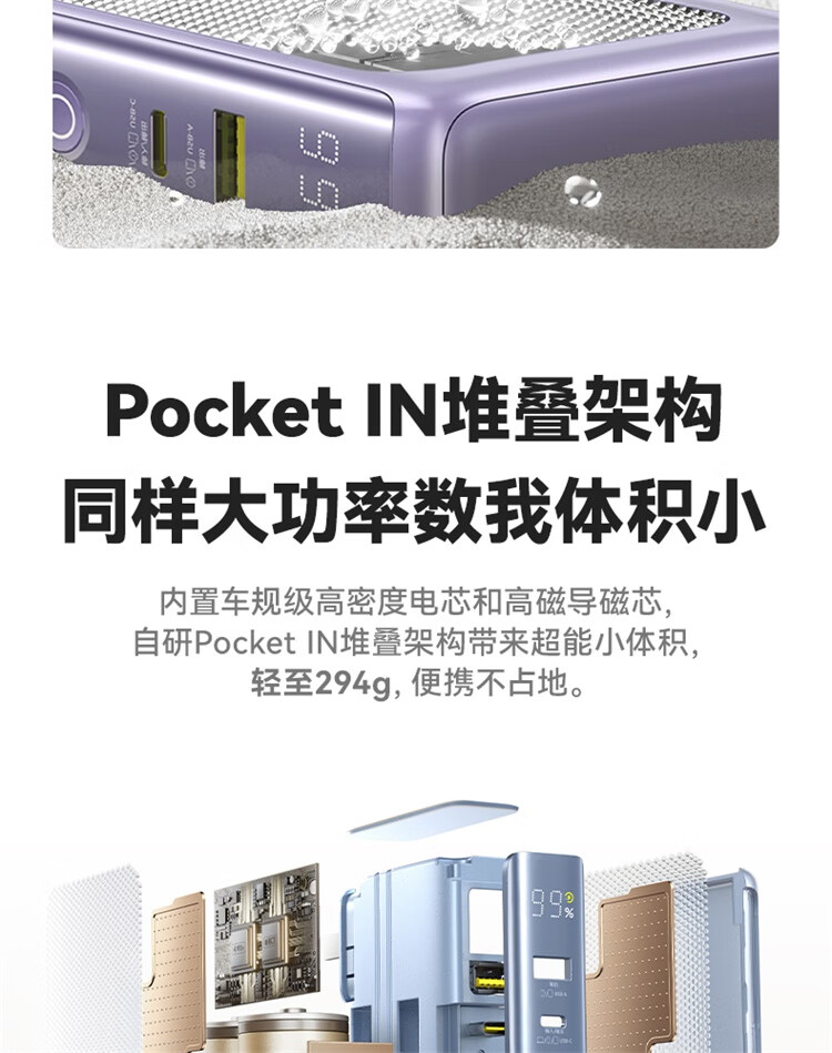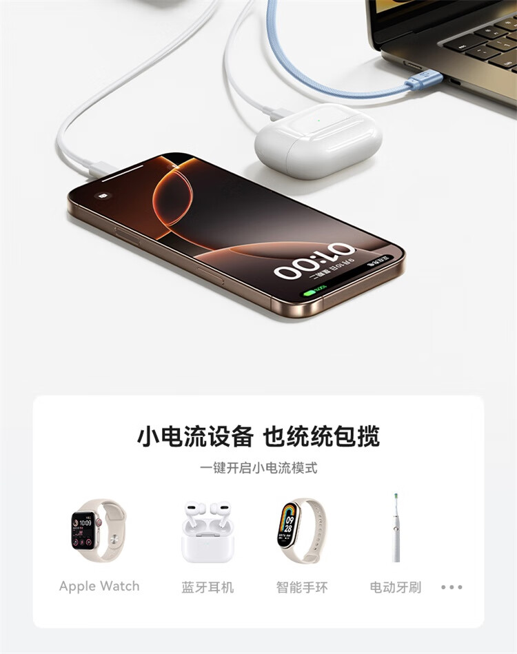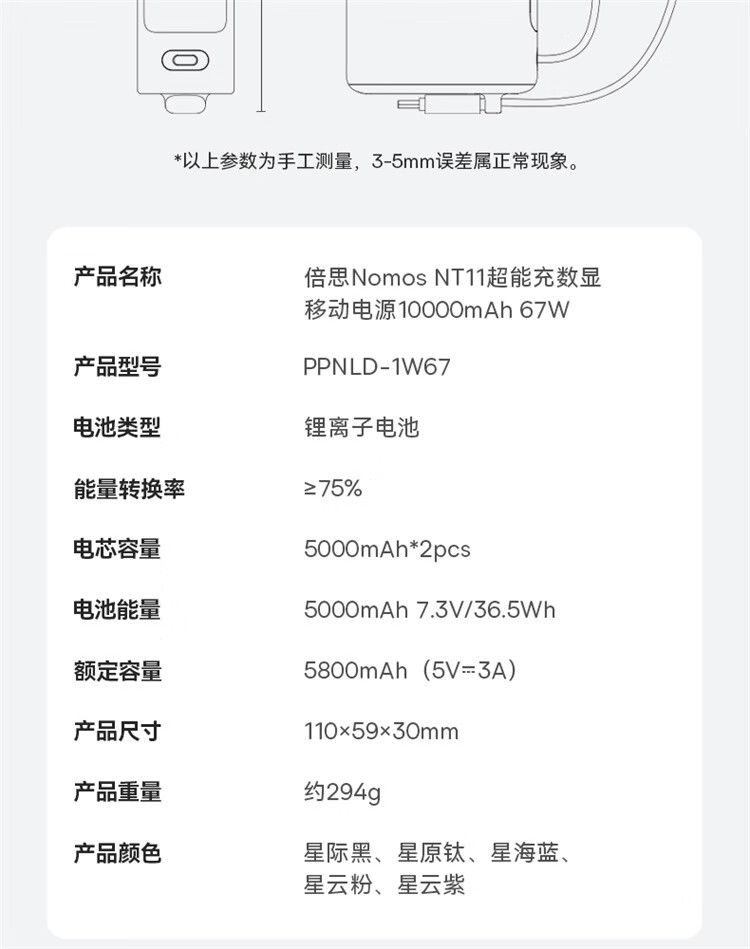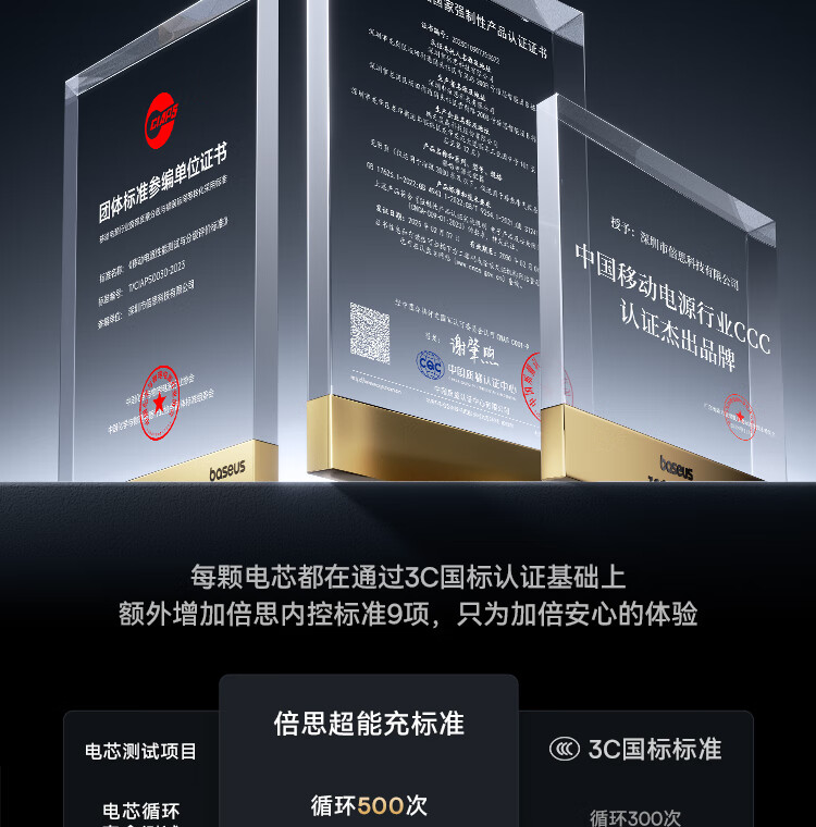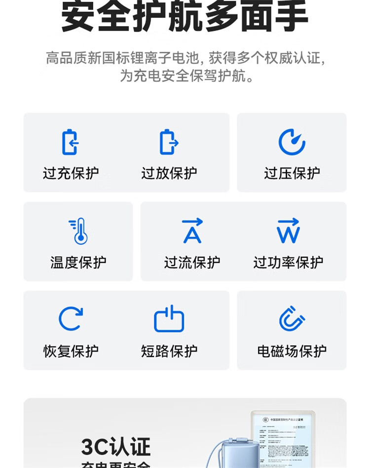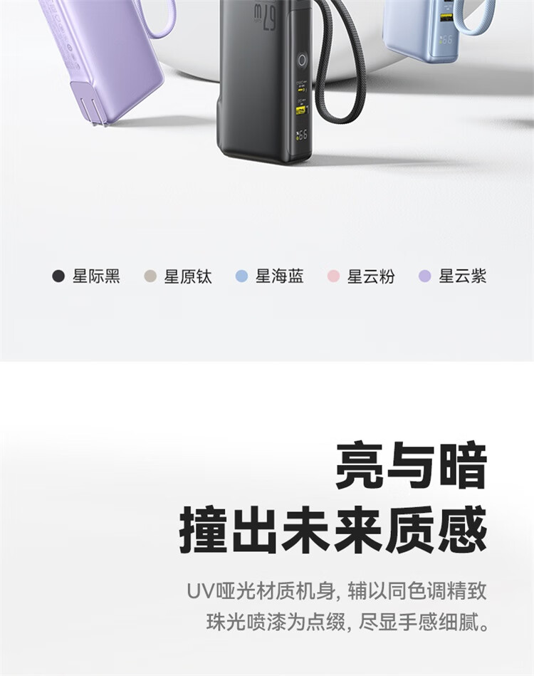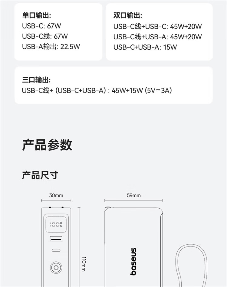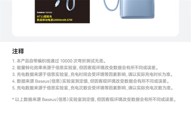 倍思【国标3C认证】超能充三合一充电宝自带插头自带线67W快充可上飞机移动电源充电器iPhone17适用-蓝