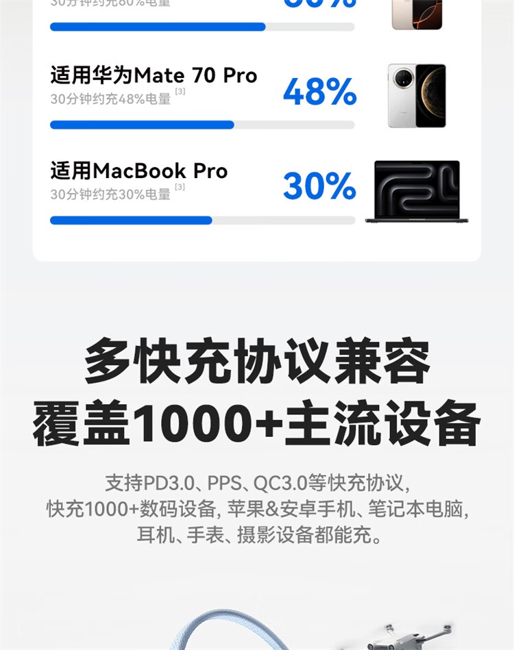 今典66W/100W超级快充套装充电器mate70/60/p50p40p30 nova1170/40插头8/9数据线闪充Type-c数据线 套装【max100W充电器+1米6A线】