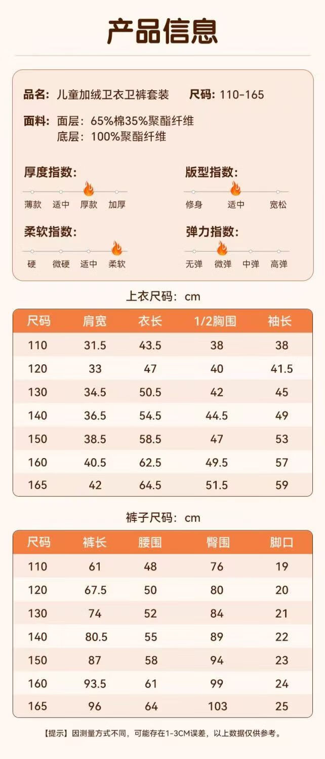 JEANSWEST CLUB真维斯童装卫衣加绒加厚新款2025小众设计款嘻哈潮流儿童上衣卫裤 J半熊焦橙 140