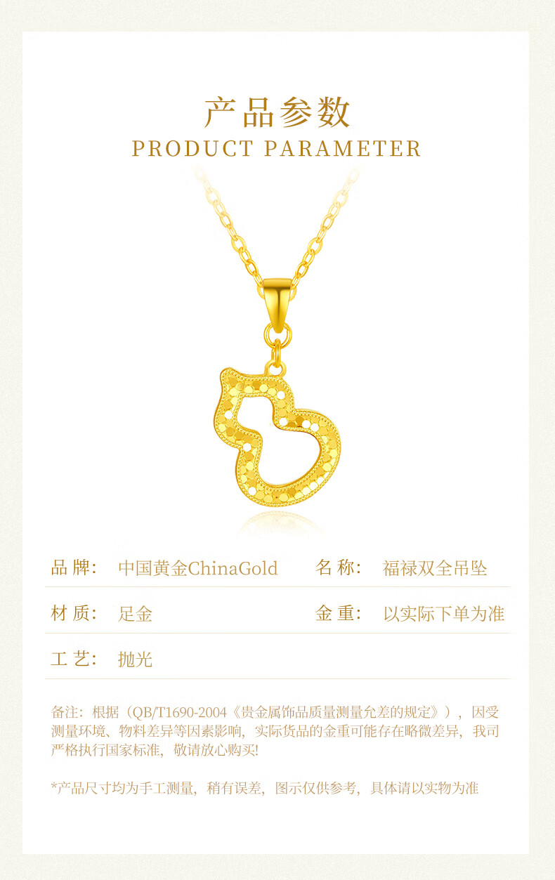 中国黄金(CHINA GOLD)足金碎碎冰葫芦吊坠女2025新款足金福禄项生日礼物马年本命年礼物 足金葫芦吊坠 约2.4g【赠银链】